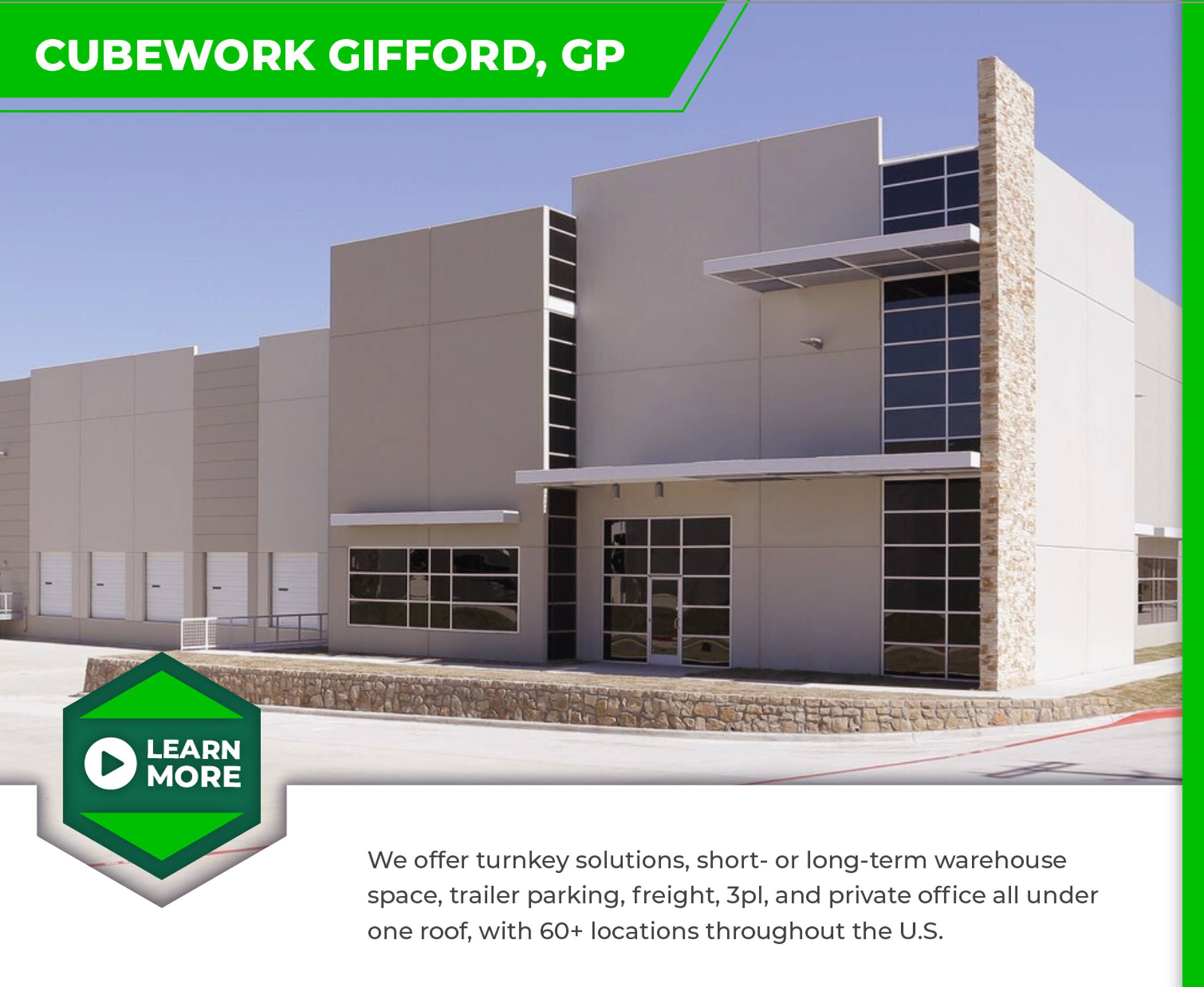 Flex space - Flexible warehouse and office spaces with comprehensive amenities available for rent.