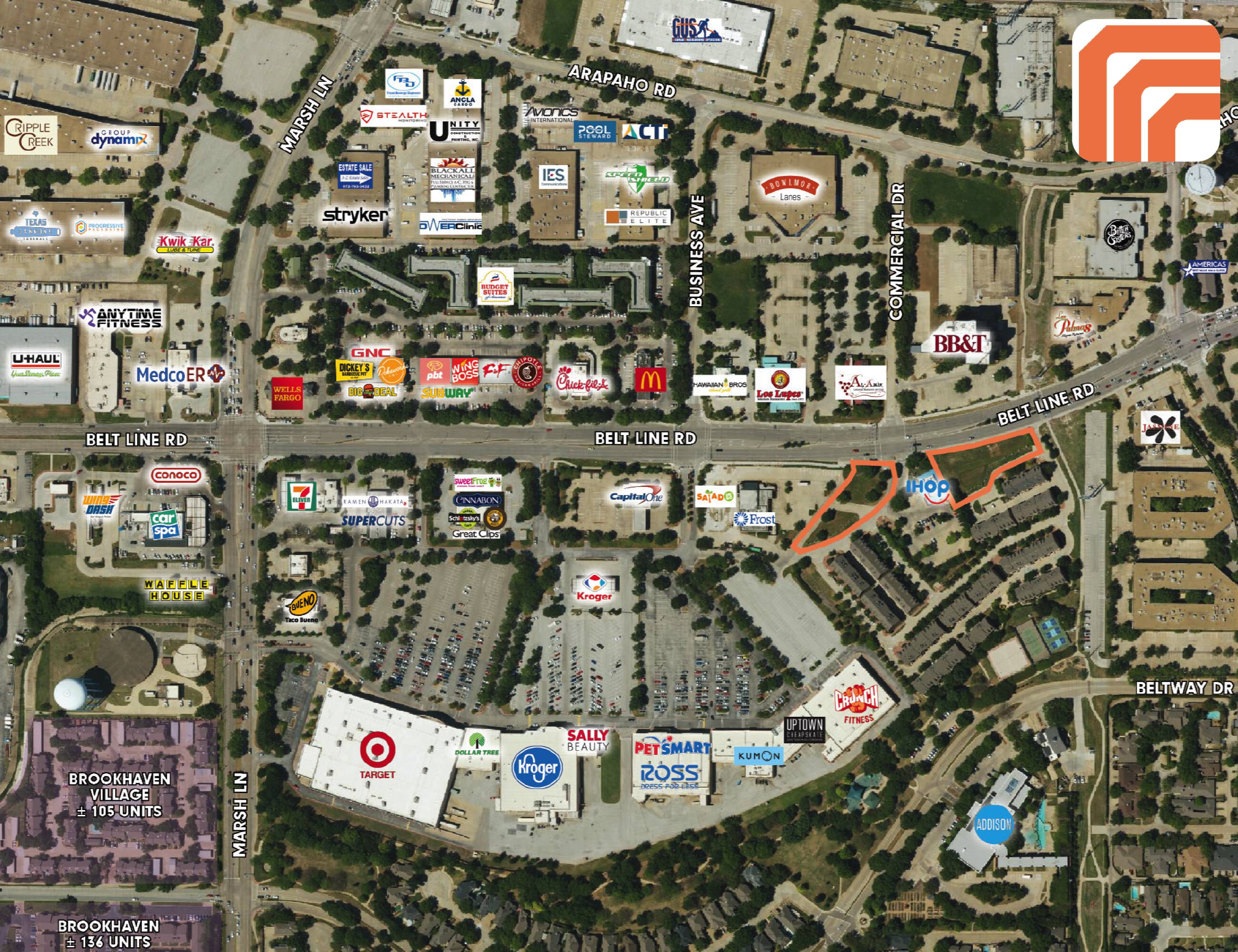 Prime commercial land in Addison, Texas, with high traffic visibility.
