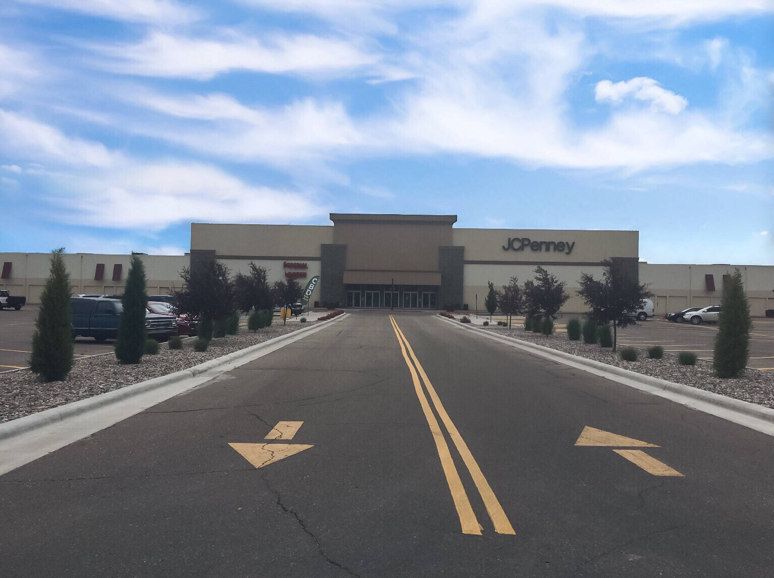 Retail center with high traffic and renovation underway.