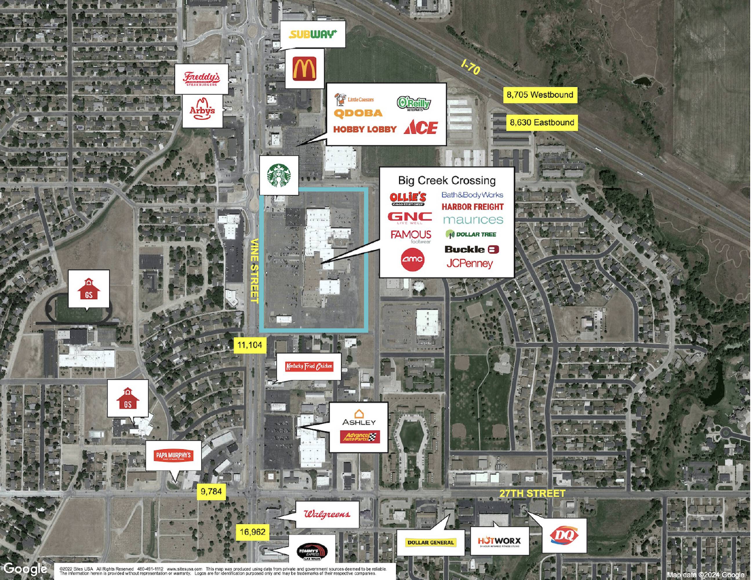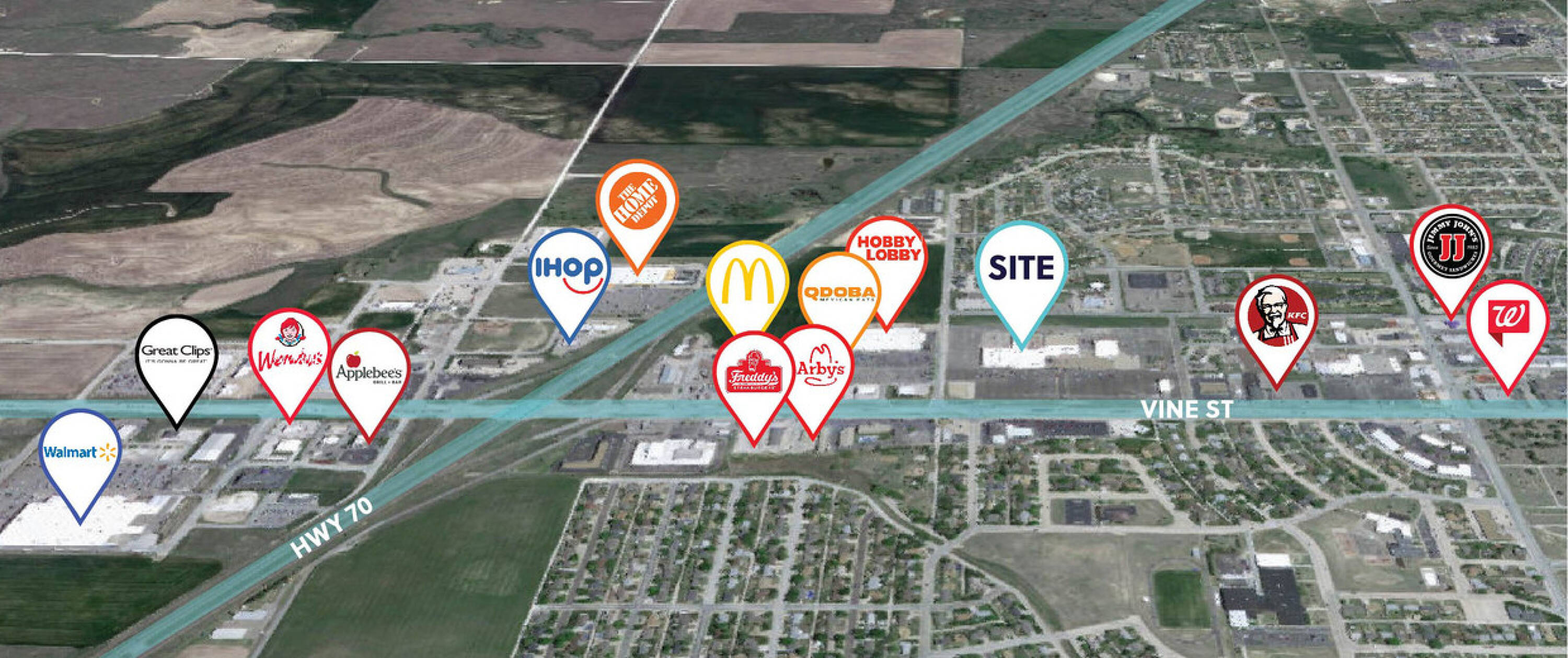 This property features: Best traffic counts in NW Kansas; Great location and visibility from I‑70 and Vine Street; Near Fort Hays State University