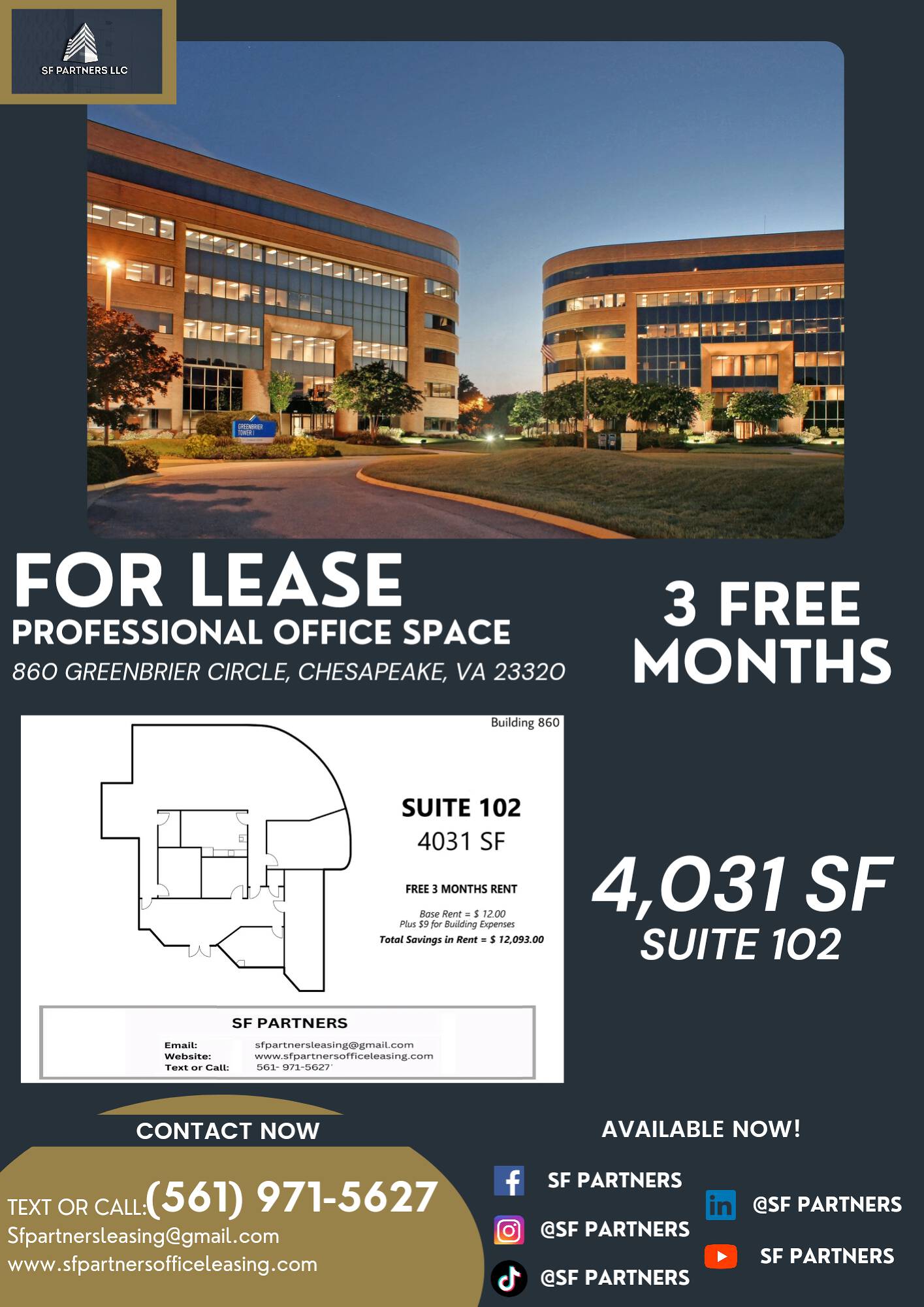 4031 SF 860-Suite 102 $12 /Mo