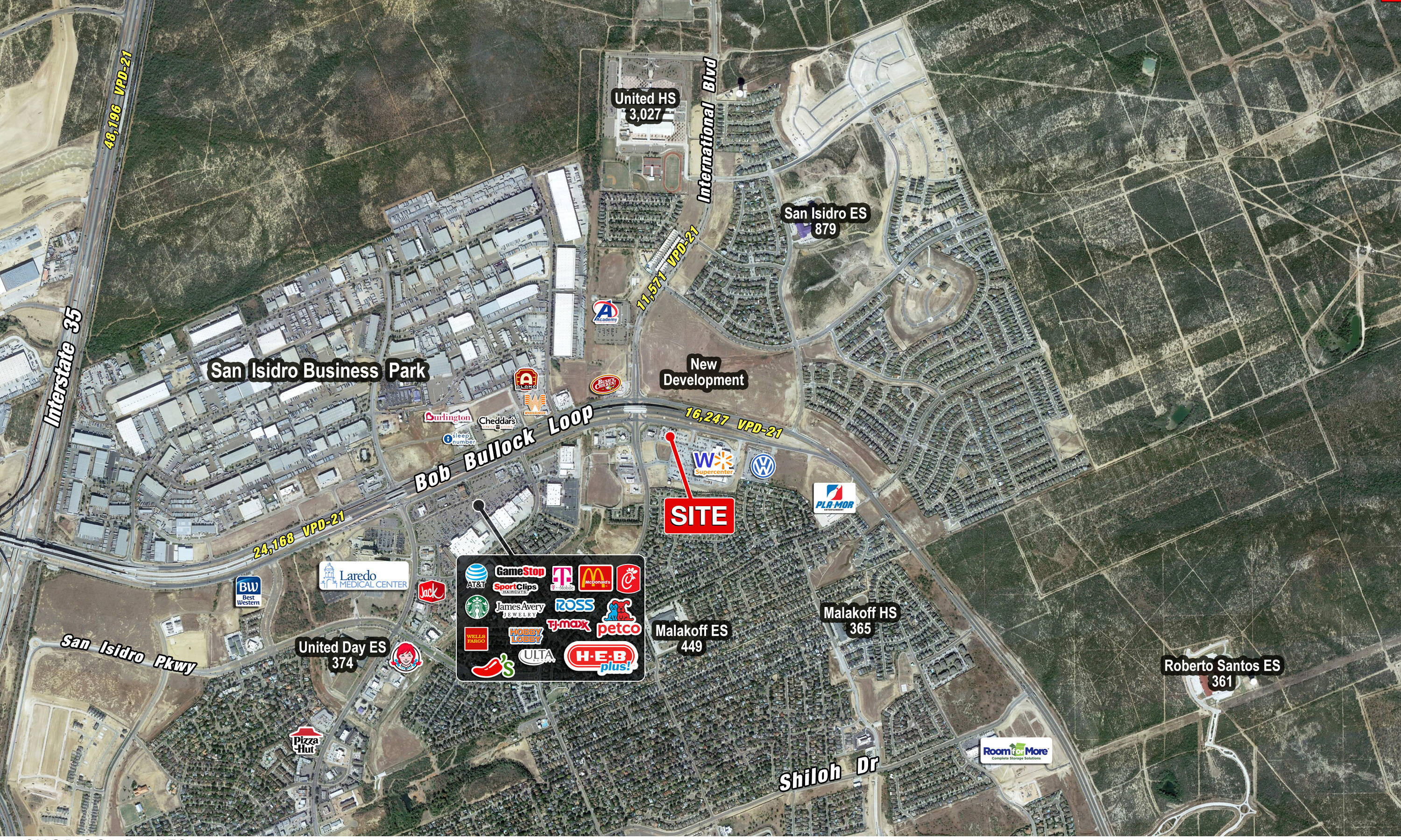 This retail space is located on the outer loop of Laredo in front of Wal Mart, positioning it within a premier retail destination. The location benefits from high traffic and is central to a mix of restaurant, retail, and lifestyle shopping opportunities. The property is oriented toward serving the northern Laredo customer base, as well as commuters using Bob Bullock Loop.