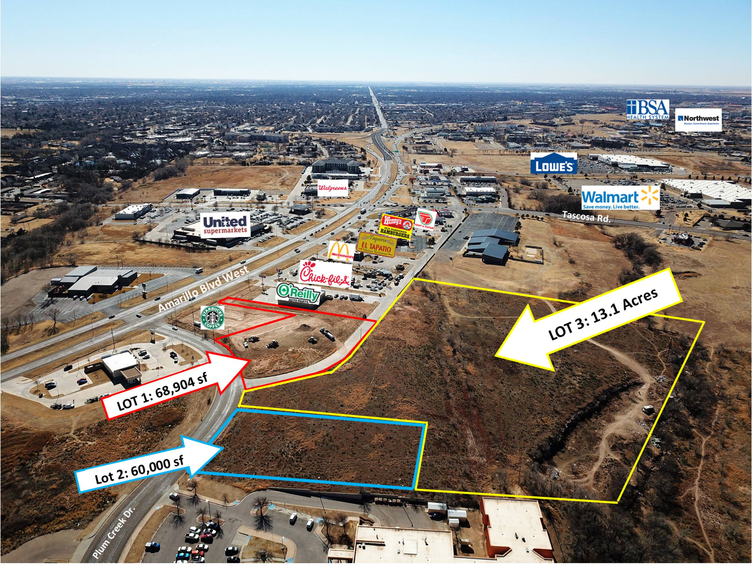 Development land available on Amarillo Blvd in Amarillo, TX.