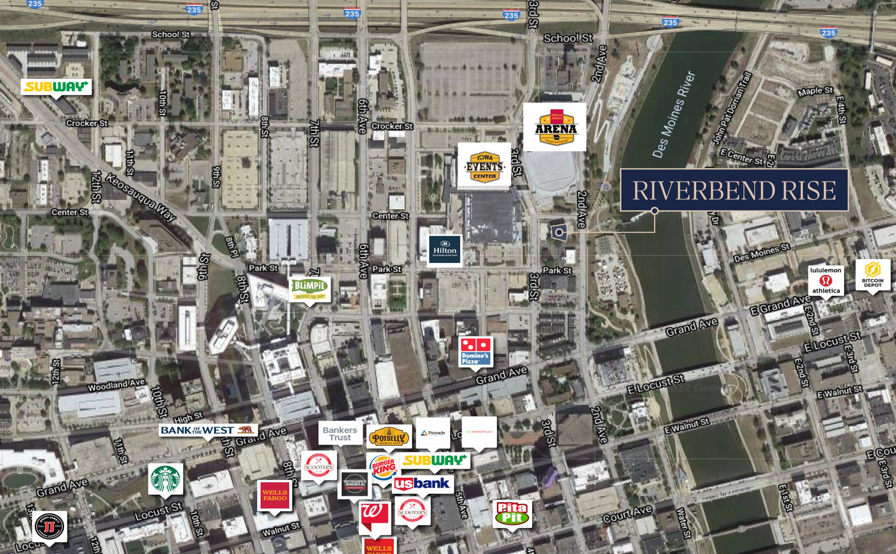 This property features: Enjoy **240‑degree views** of downtown Des Moines, including the state capital and Des Moines River.; Best‑in‑class design and construction.; Downtown location with convenient interstate access.