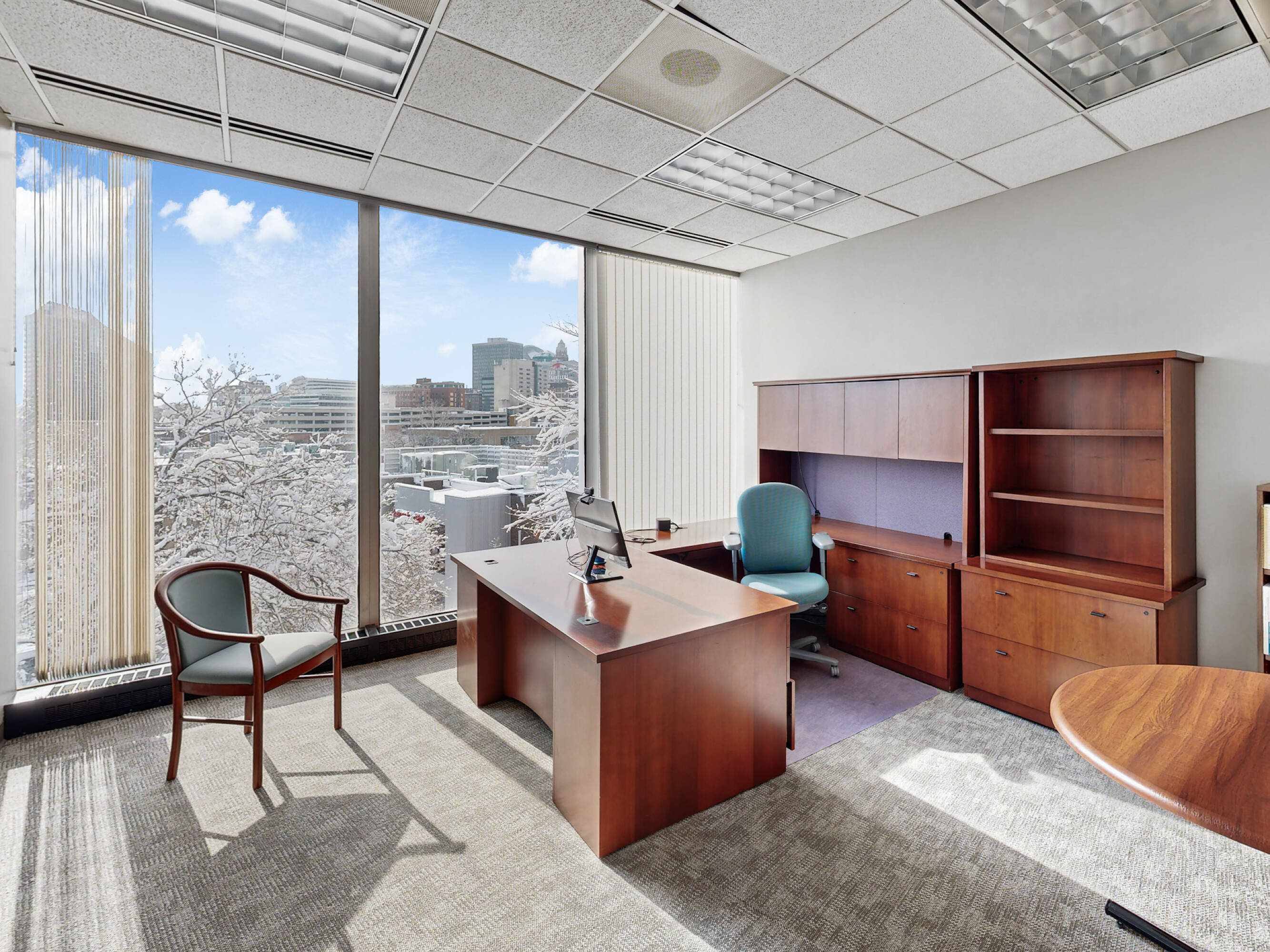 Office building with downtown views and on-site parking.