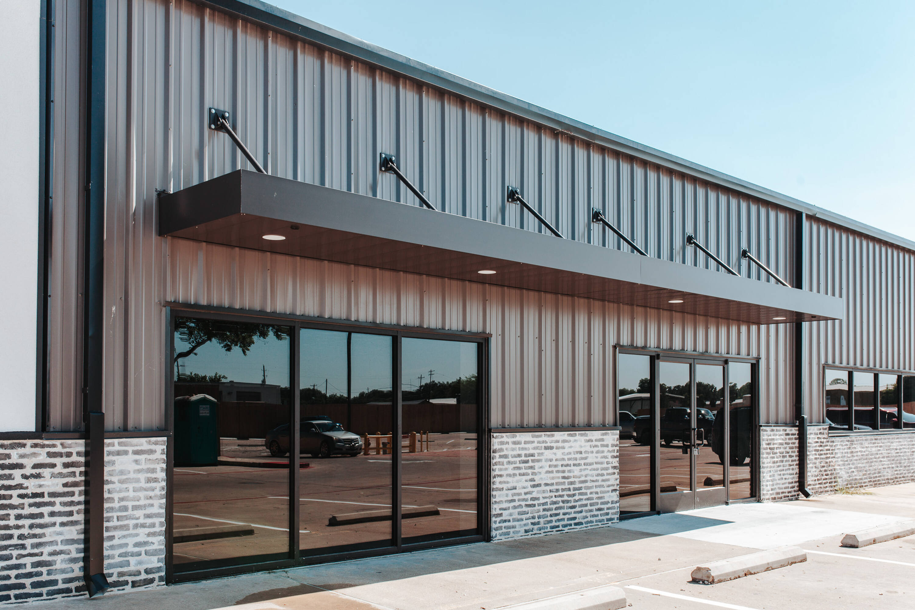 New commercial building with high traffic and modern architecture.