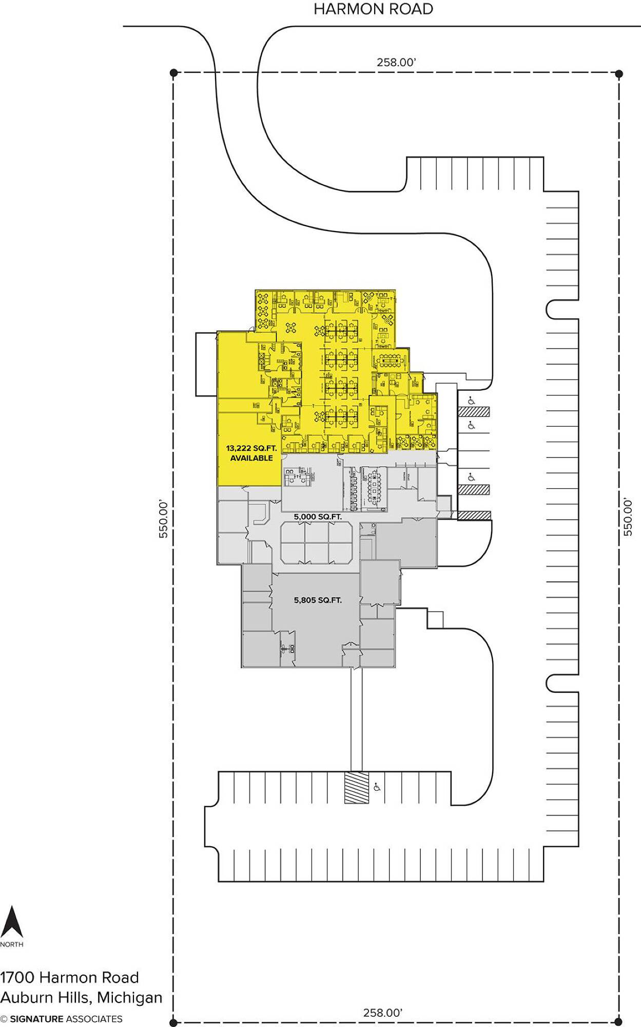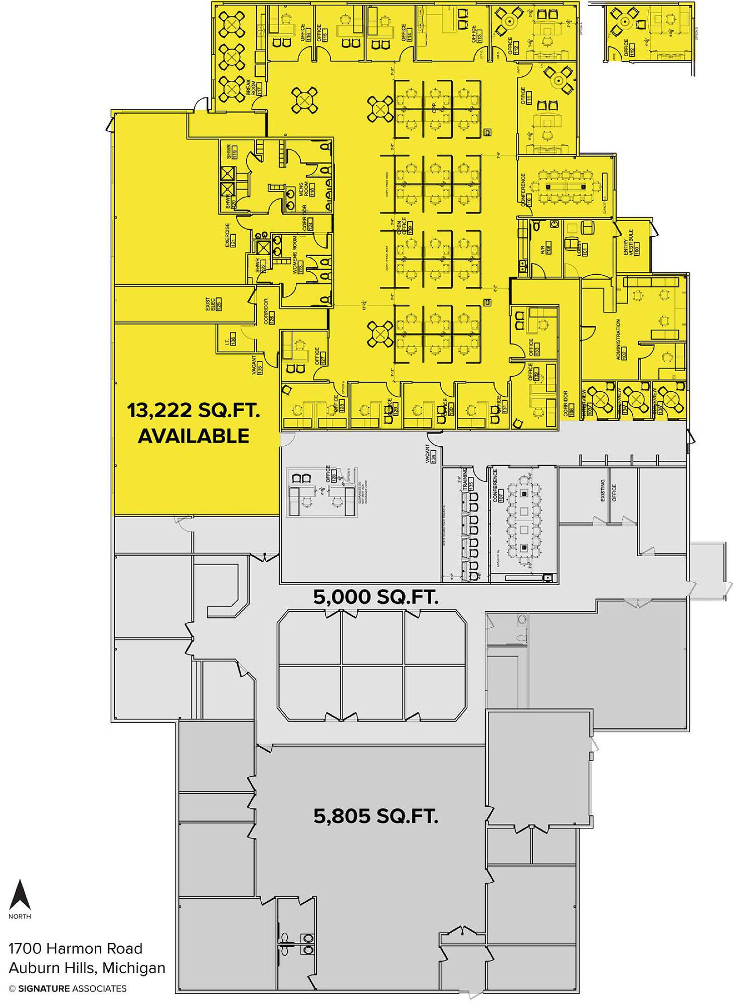This property features: State‑of‑the‑art office finishes and hi‑tech infrastructure.; 13,222 sq. ft. of office space that can be split.; Includes private offices, conference rooms, work‑out facility, and kitchen area.