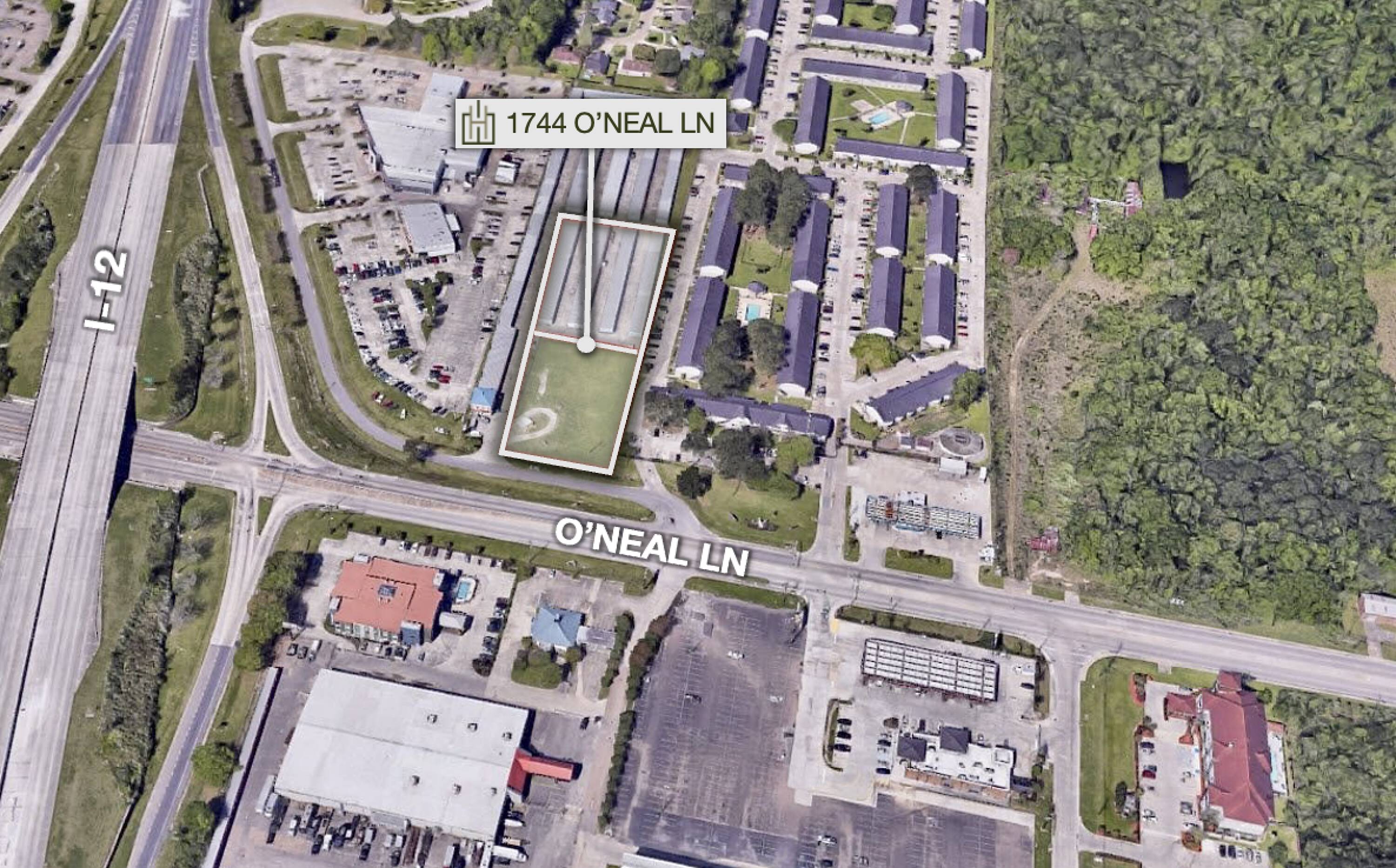 This property features approximately 39,204 square feet (0.9 acres) of vacant land, complemented by an adjacent 69,696 square feet (1.6 acres) storage complex. Situated just off O'Neal Lane, the property benefits from high visibility from I-12 and offers 163 feet of frontage. The site is suitable for a build-to-suit project on the vacant land, with an established storage complex that presents opportunities for expansion. The location provides convenient access to both O'Neal Lane and I-12, ensuring a high traffic count area. The option exists to remove the storage units to expand the available land area.