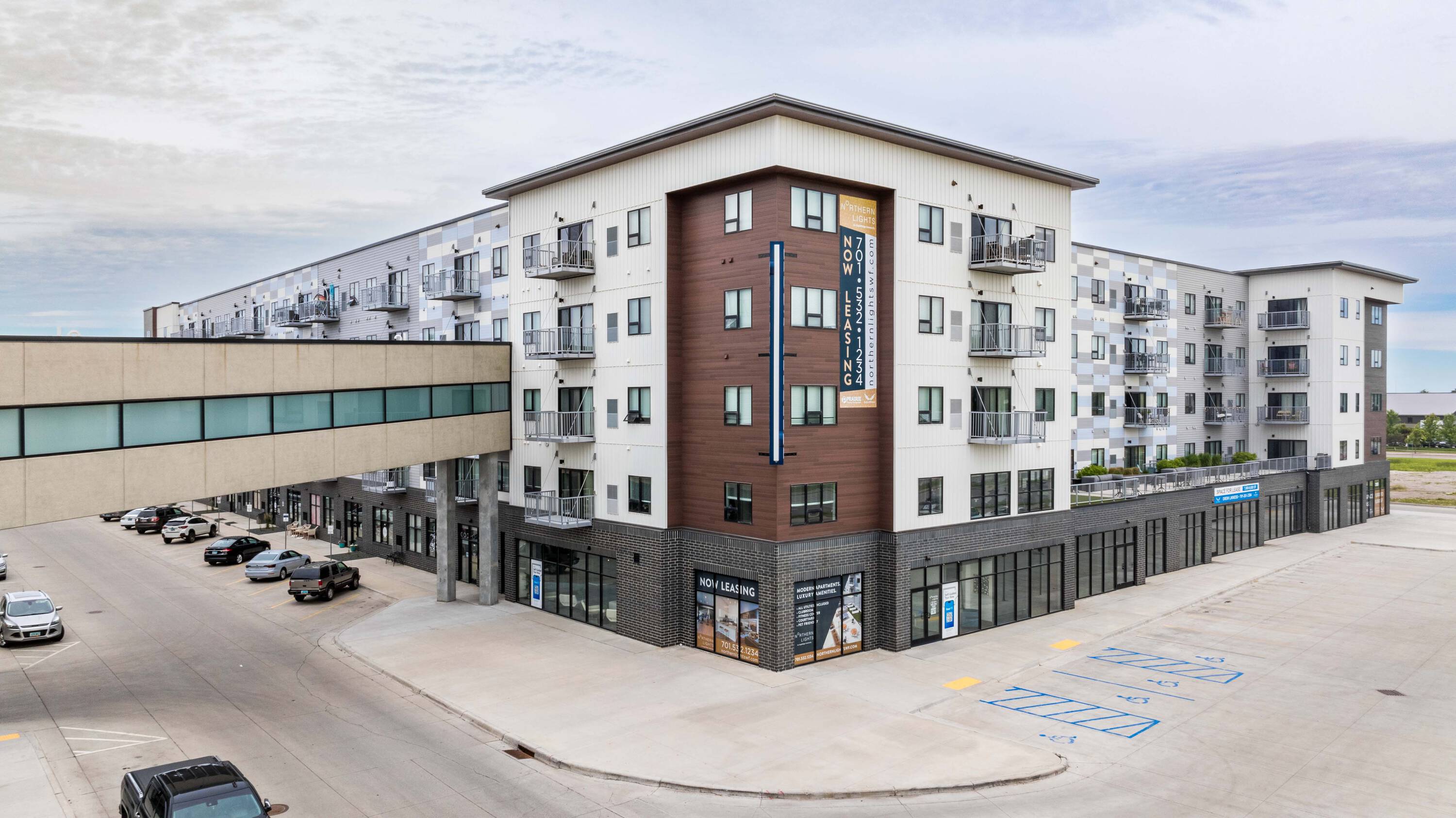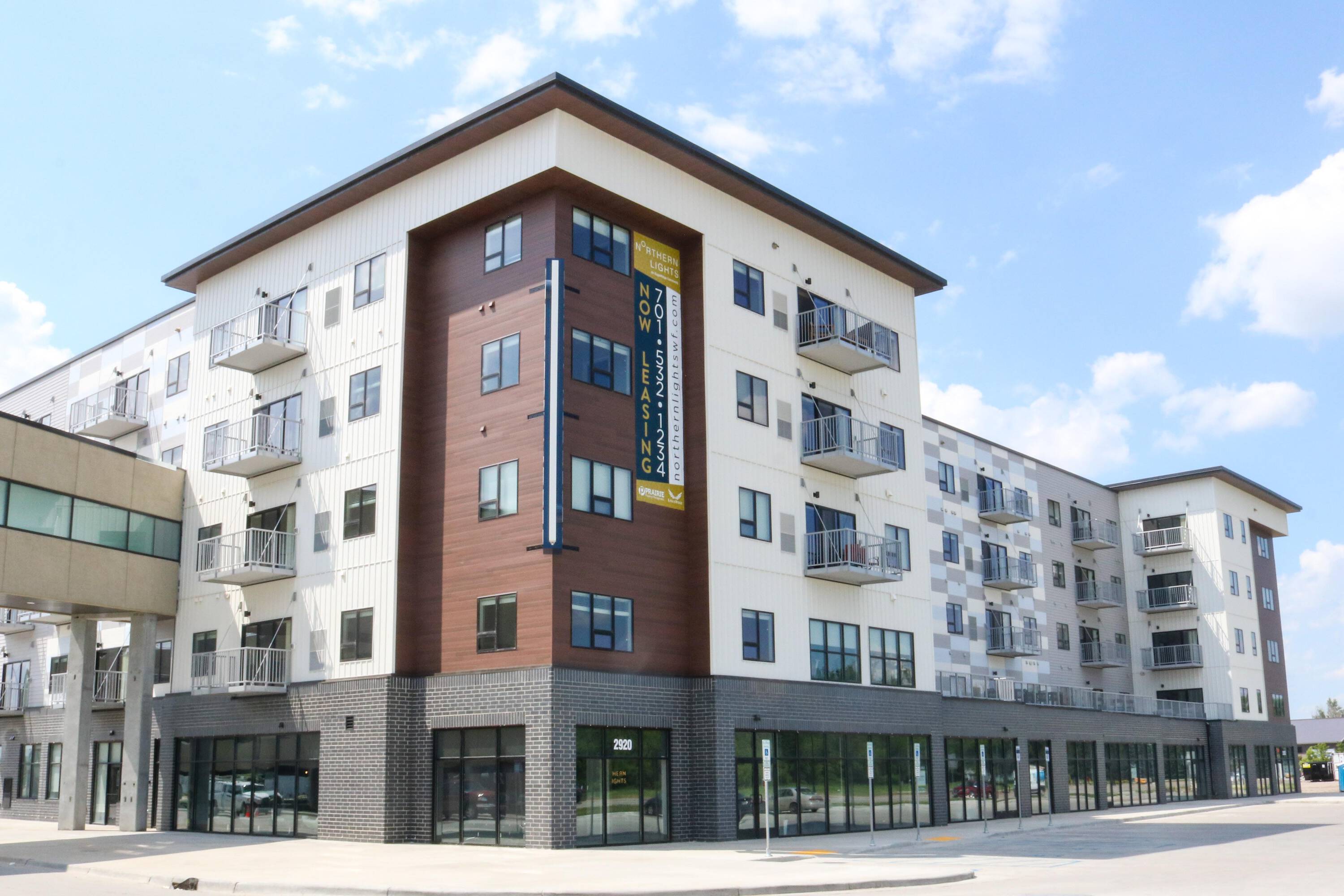The Northern Lights is a 5-story mixed-use project situated in a rapidly developing commercial and residential area of West Fargo. Located on Sheyenne Street, the property features 197 residential apartments along with 13,760 square feet of office and commercial retail space available for rent. A sky bridge is planned to connect Northern Lights to a parking ramp and the broader Lights at Sheyenne 32 entertainment district.
