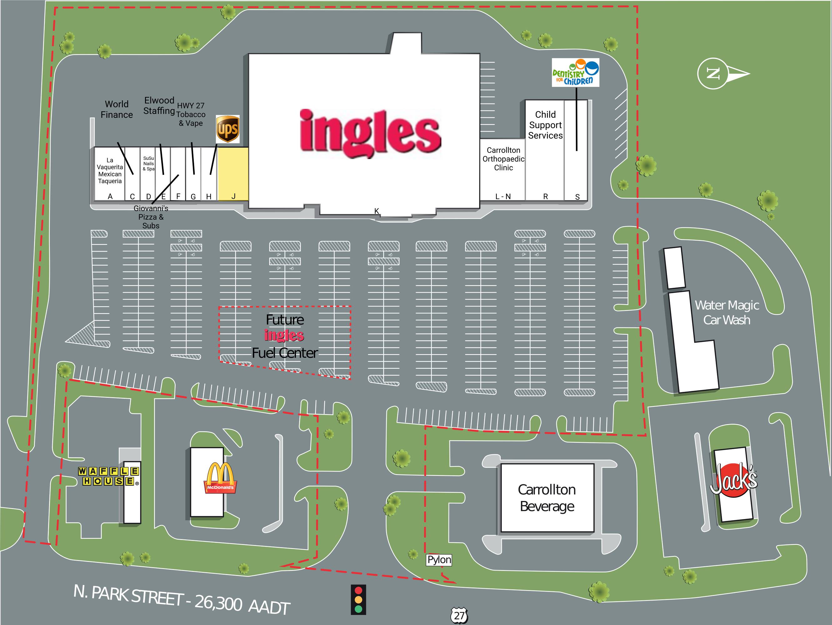 This property features: Anchored by market‑leading Ingles.; Excellent visibility from N. Park Street.; Located at a signalized intersection for easy access.