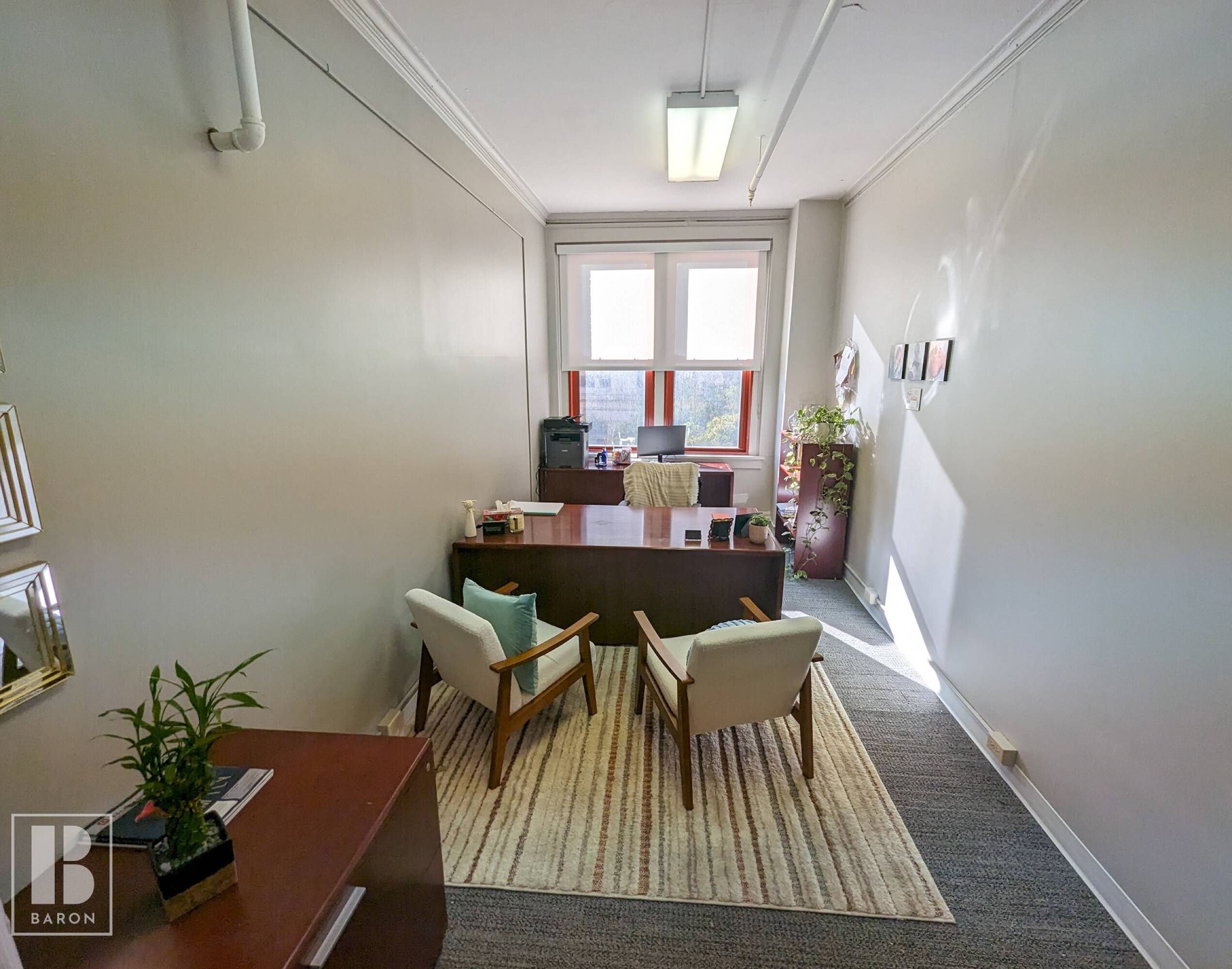Large south-facing office with waiting area and private office space.