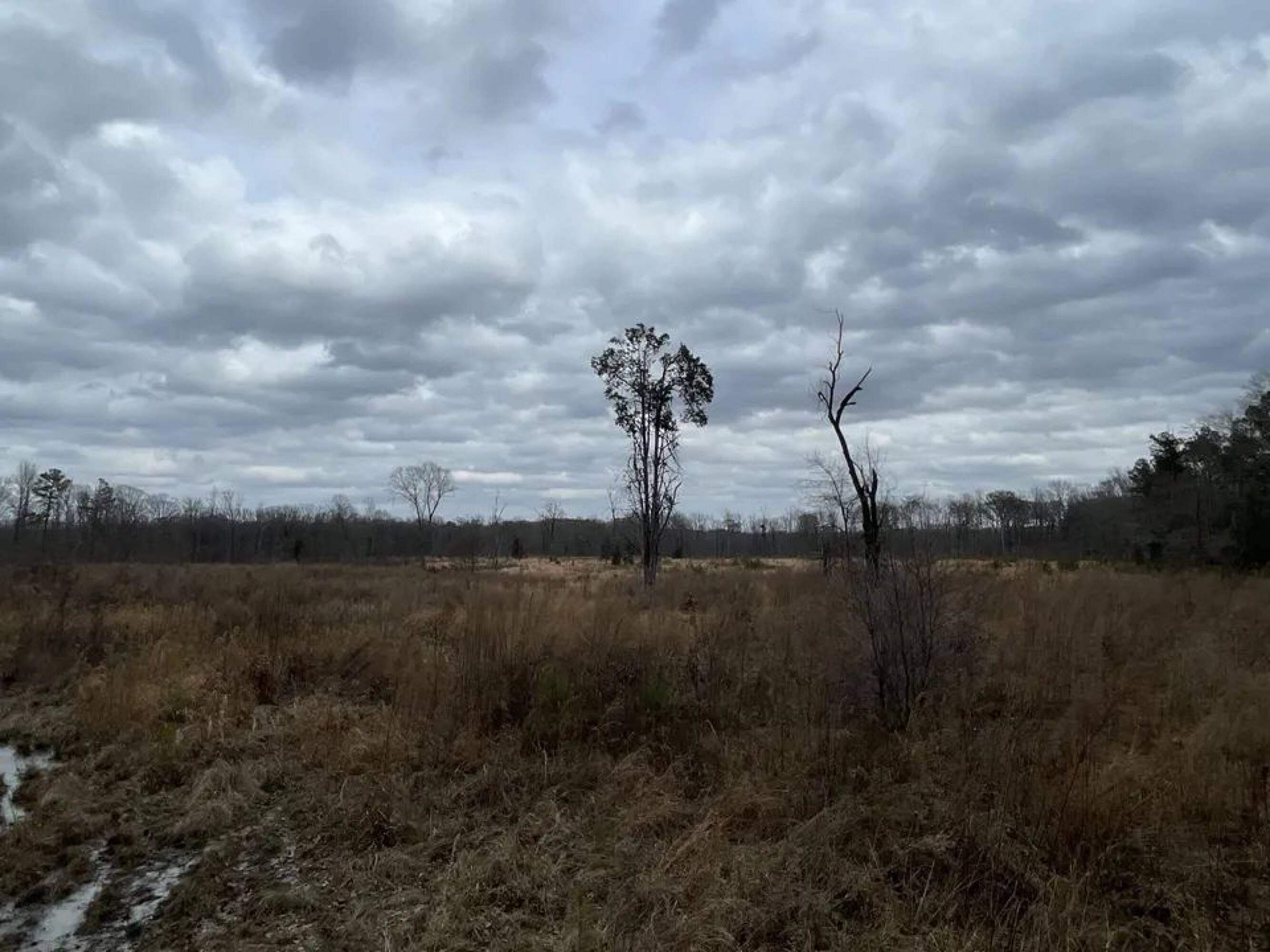 Hunting tract with plantation pines, hardwoods, and marshland.