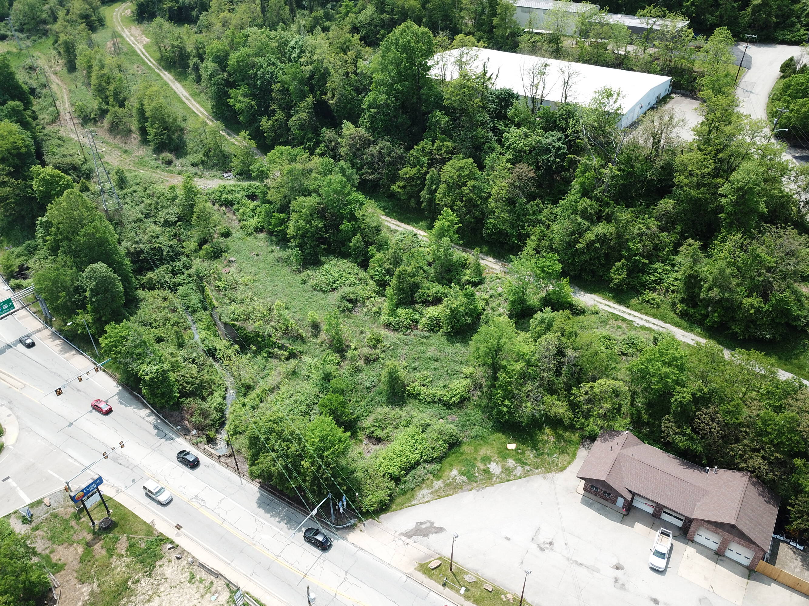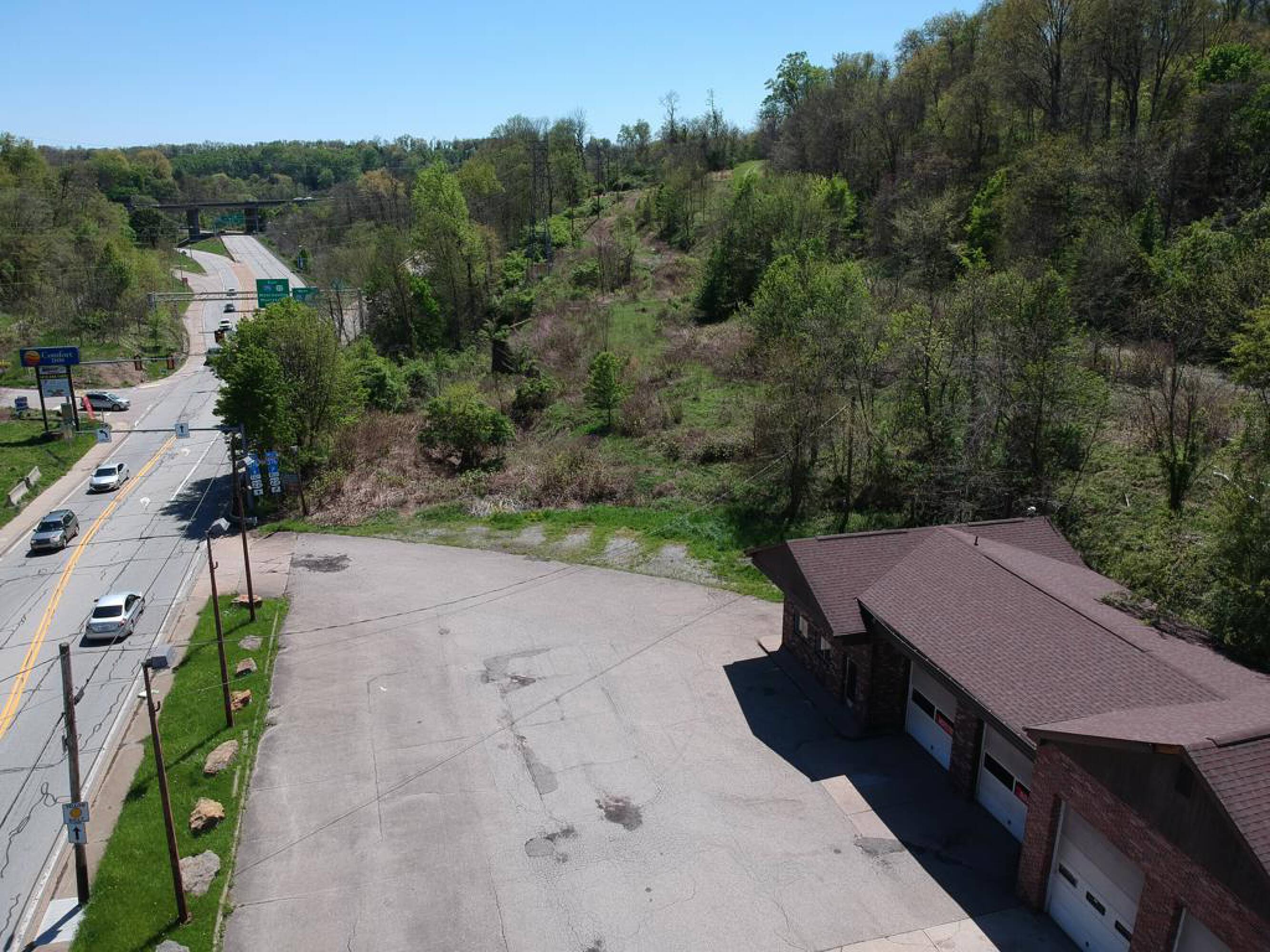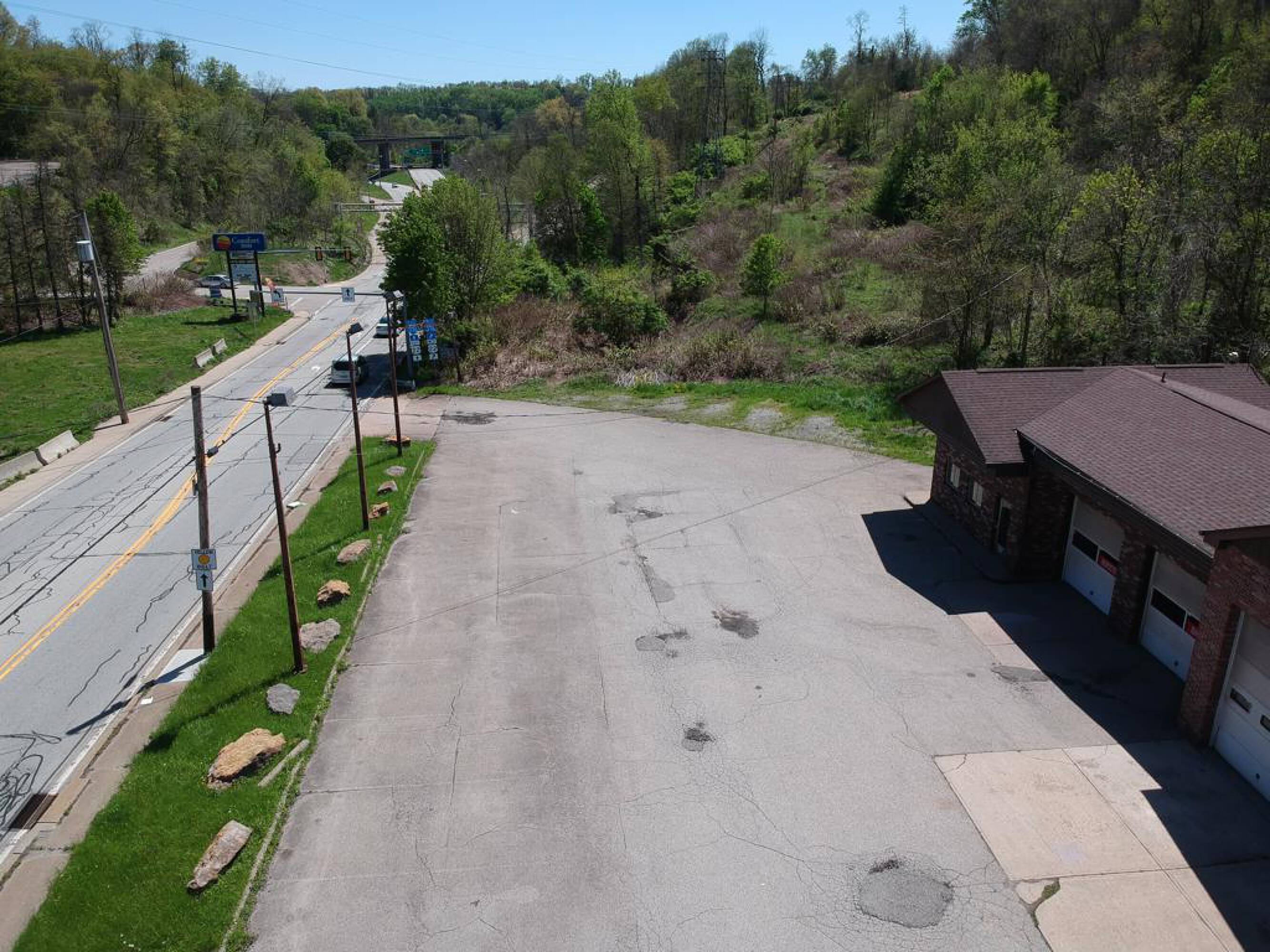 This property features: Prime location with high visibility just off 376 Parkway East and near PA Turnpike.; Four‑bay commercial garage with 2 truck and 2 car bays.; Large parking lot with great ingress and egress due to corner lot with traffic light access.