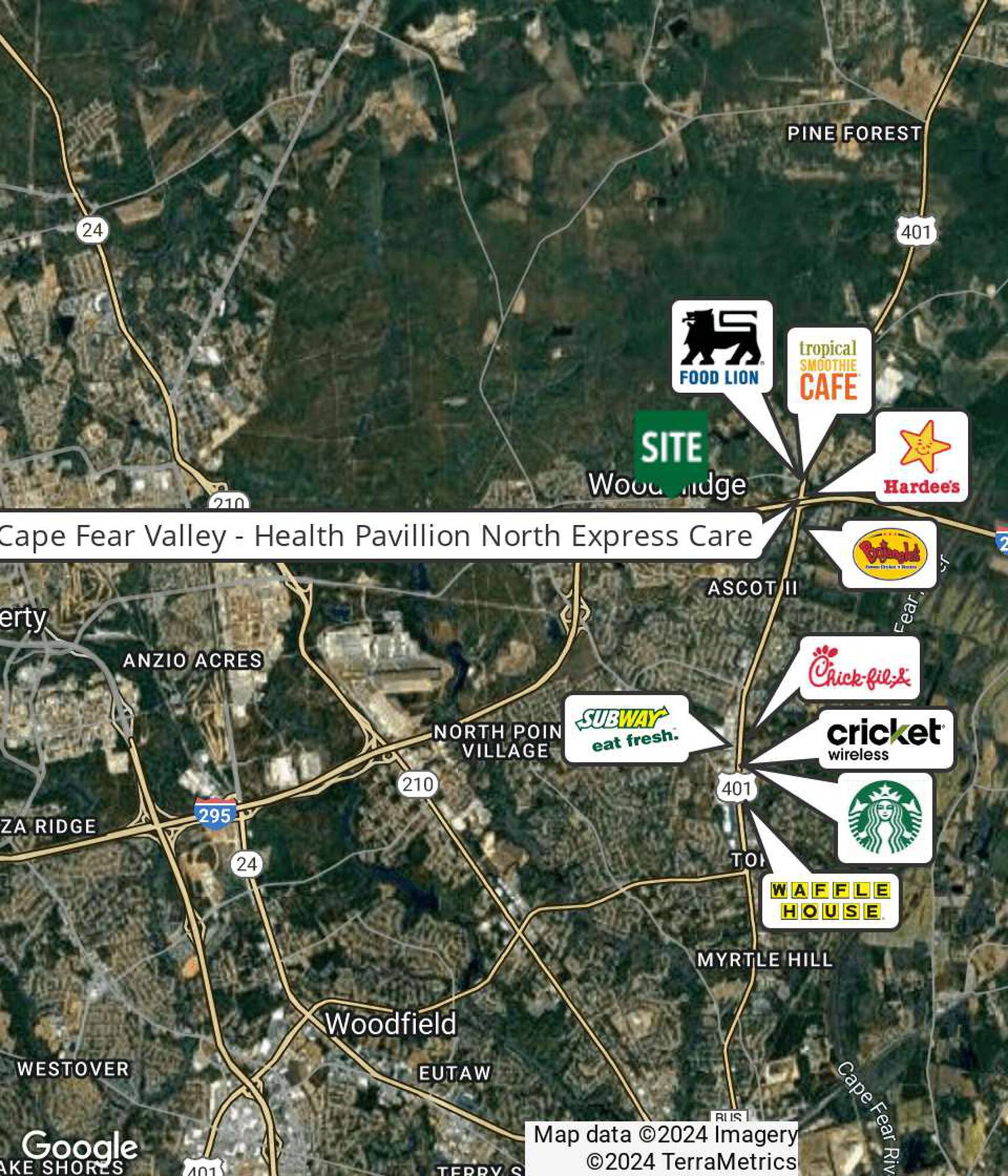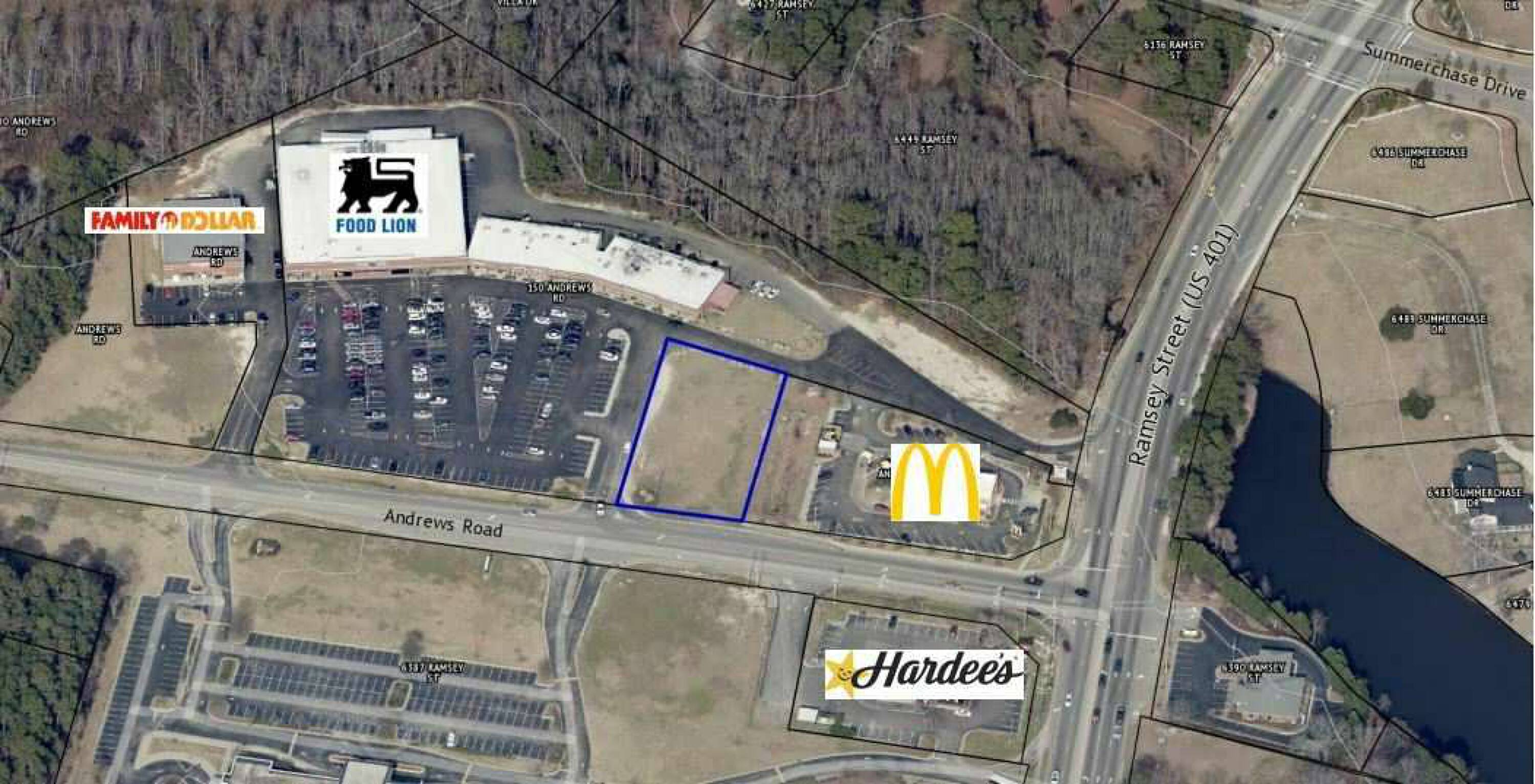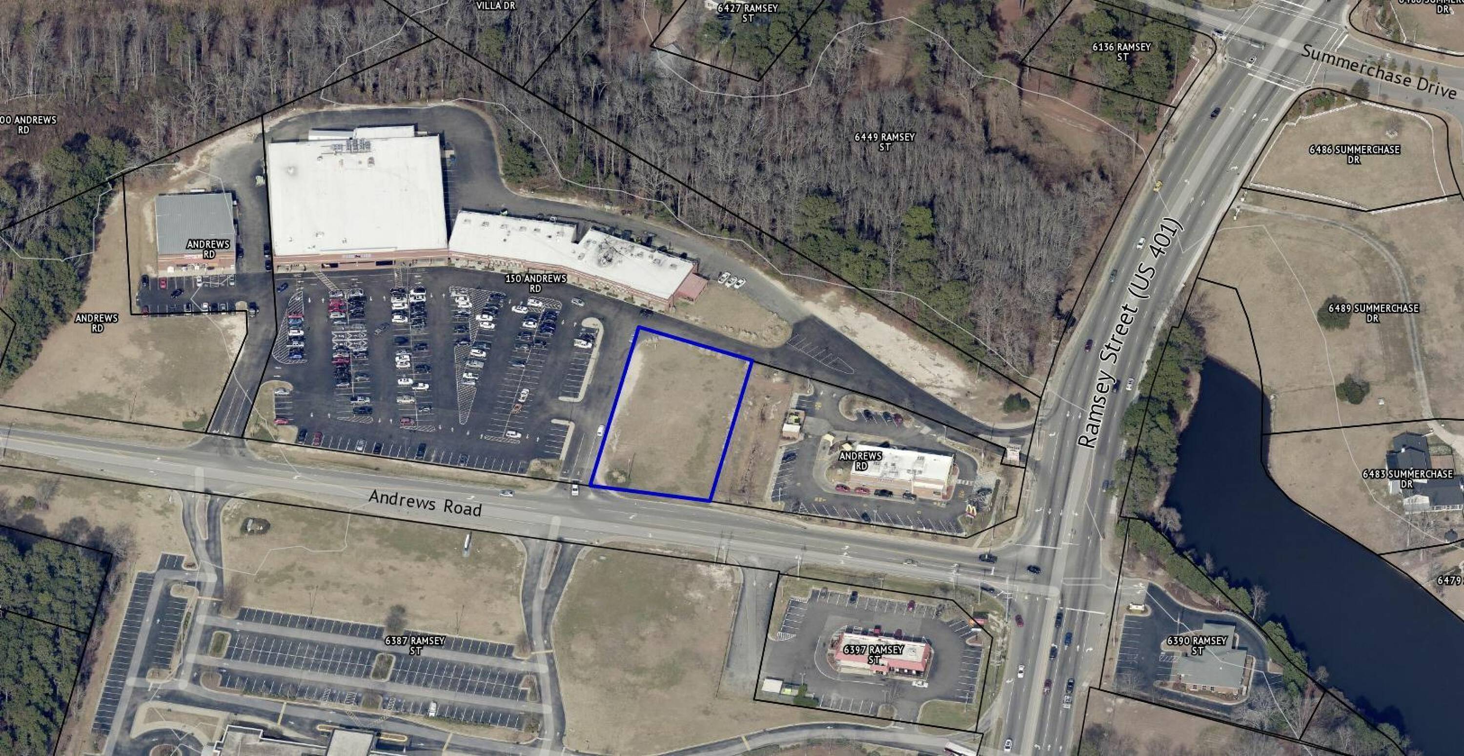 This property features: Prime location at the intersection of Ramsey Street and the 295 Bypass with high visibility.; Part of a bustling shopping center with a new gas station and proximity to Food Lion and other major tenants.; Water and sewer connections are already in place.