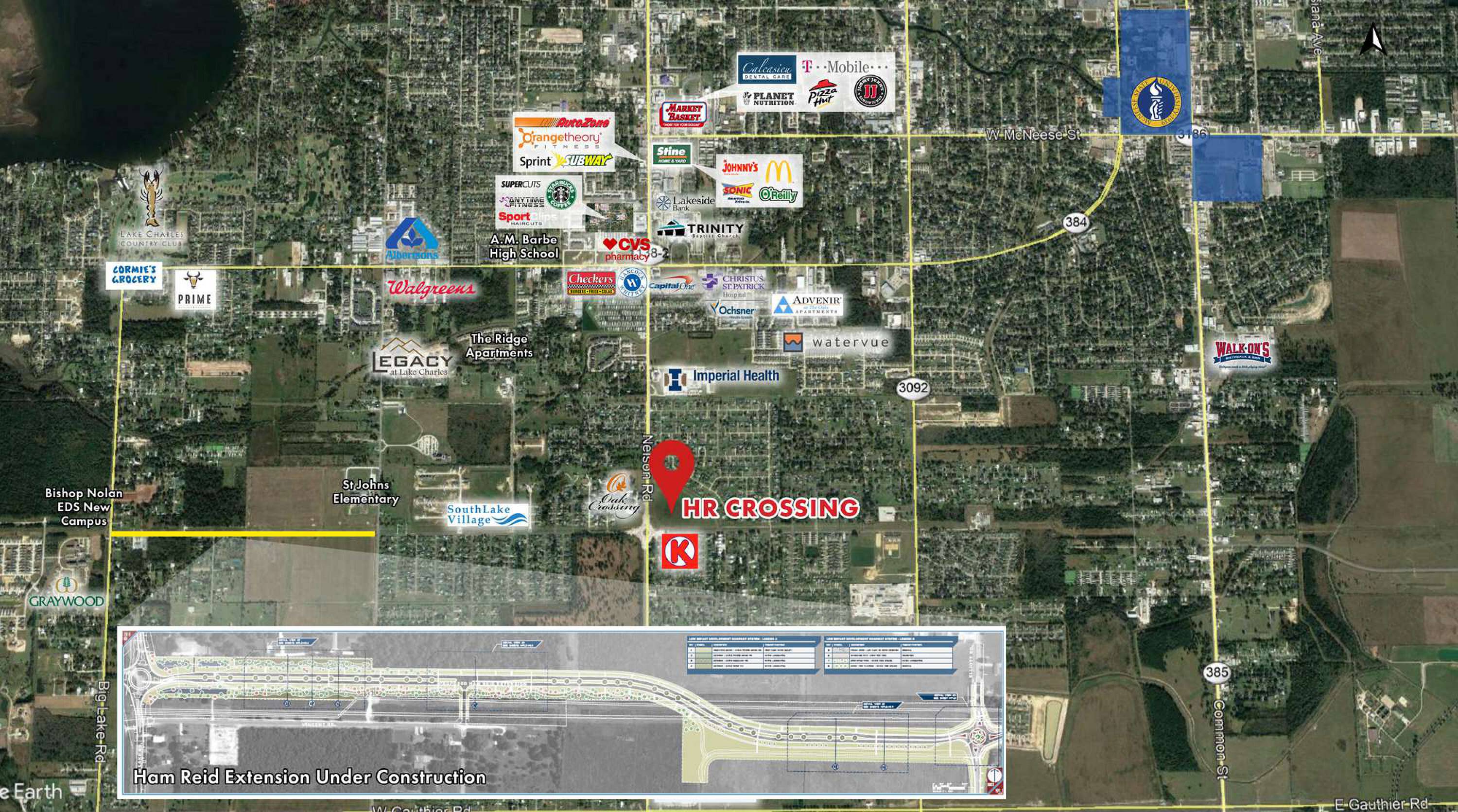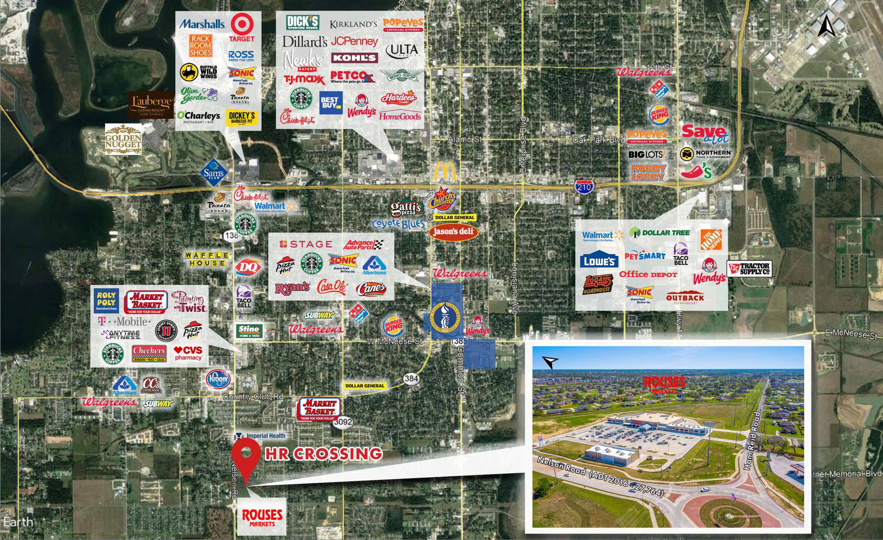 Grocery-anchored development near McNeese State University in Lake Charles, Louisiana.