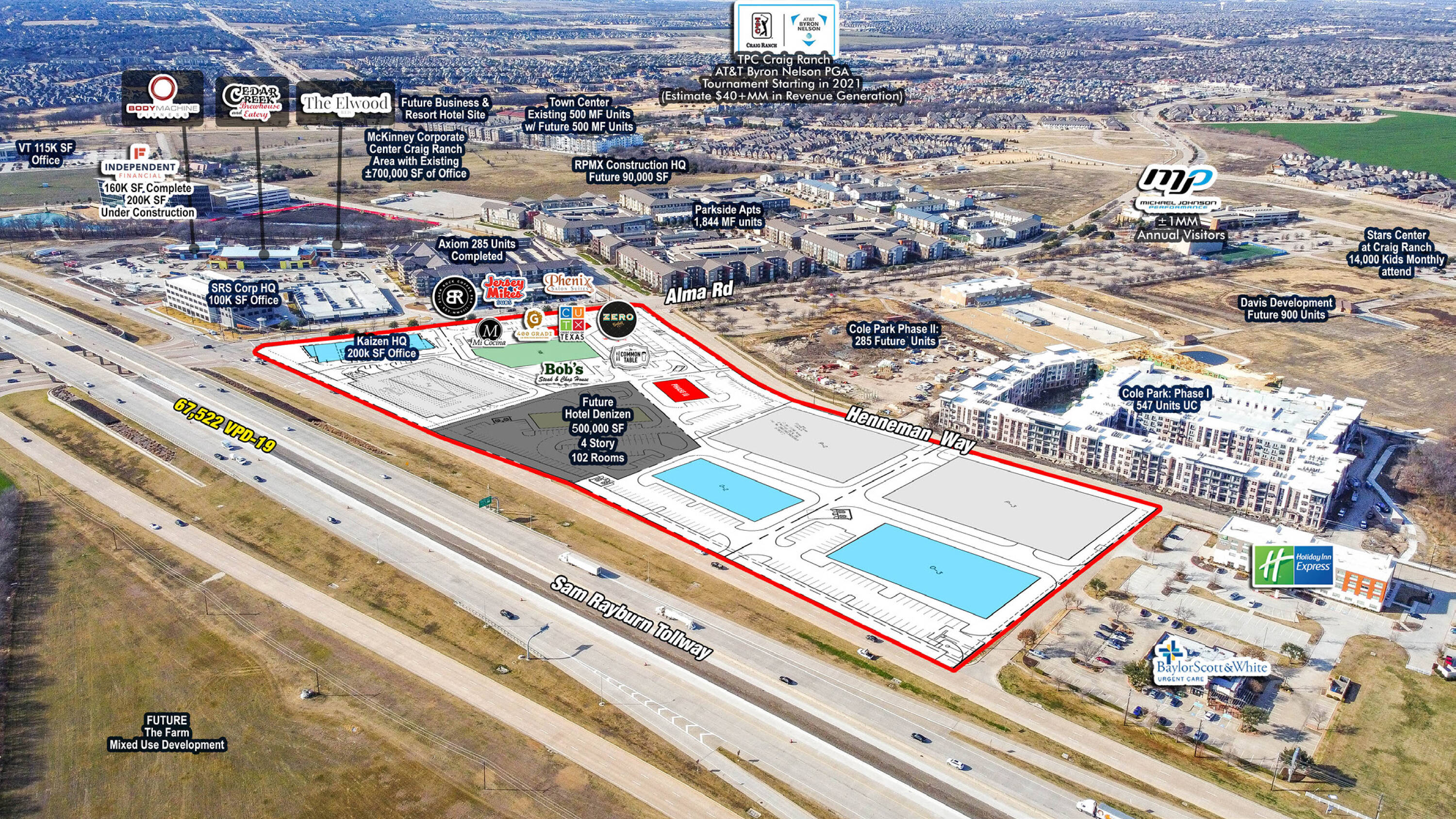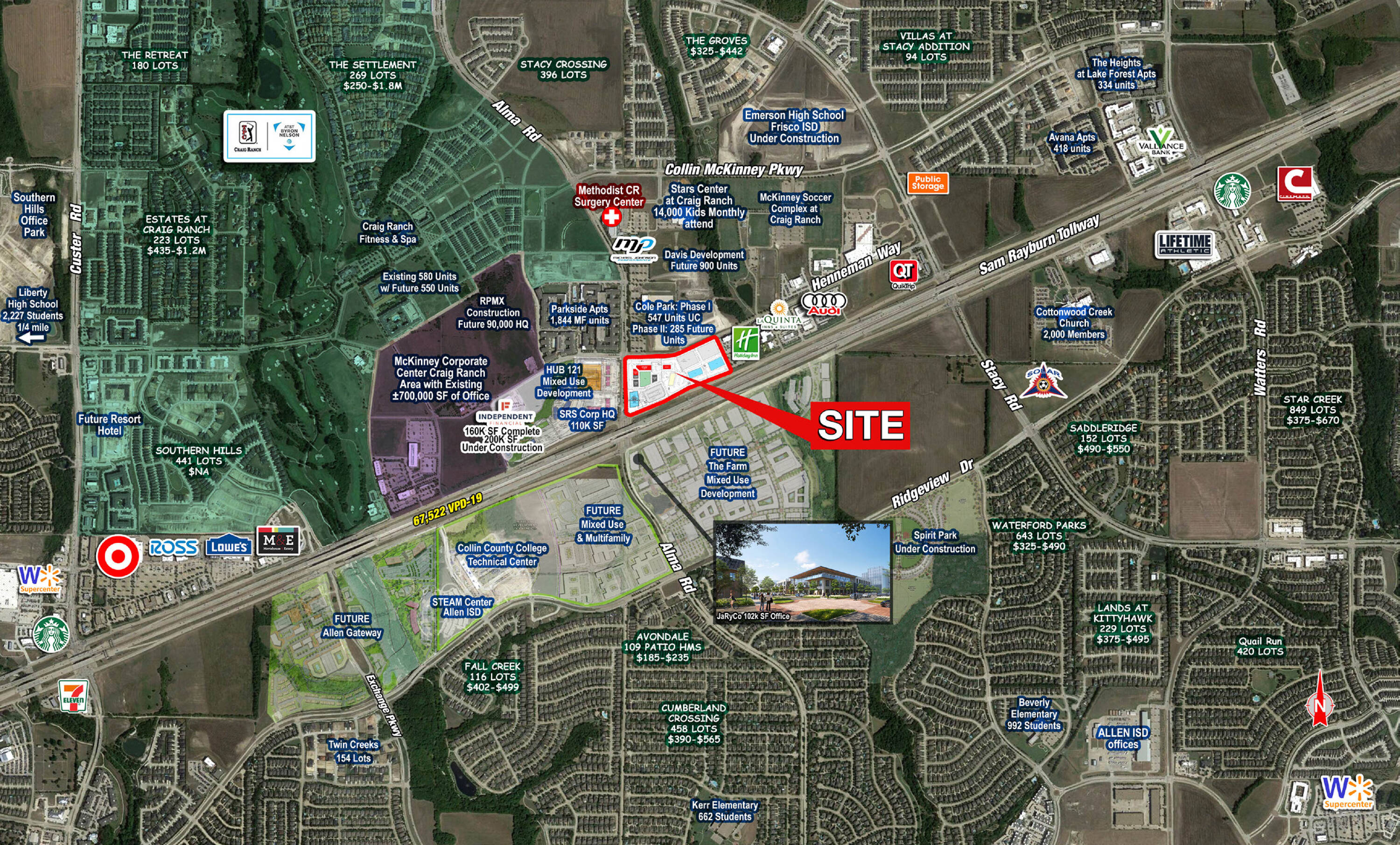 This property features: Located in the rapidly developing "Blue Diamond Corridor", one of the most desirable markets in the metroplex.; Focal destination for dining/entertainment in a robust sector.; Adjacent to the 2,200‑acre Craig Ranch master‑planned development.