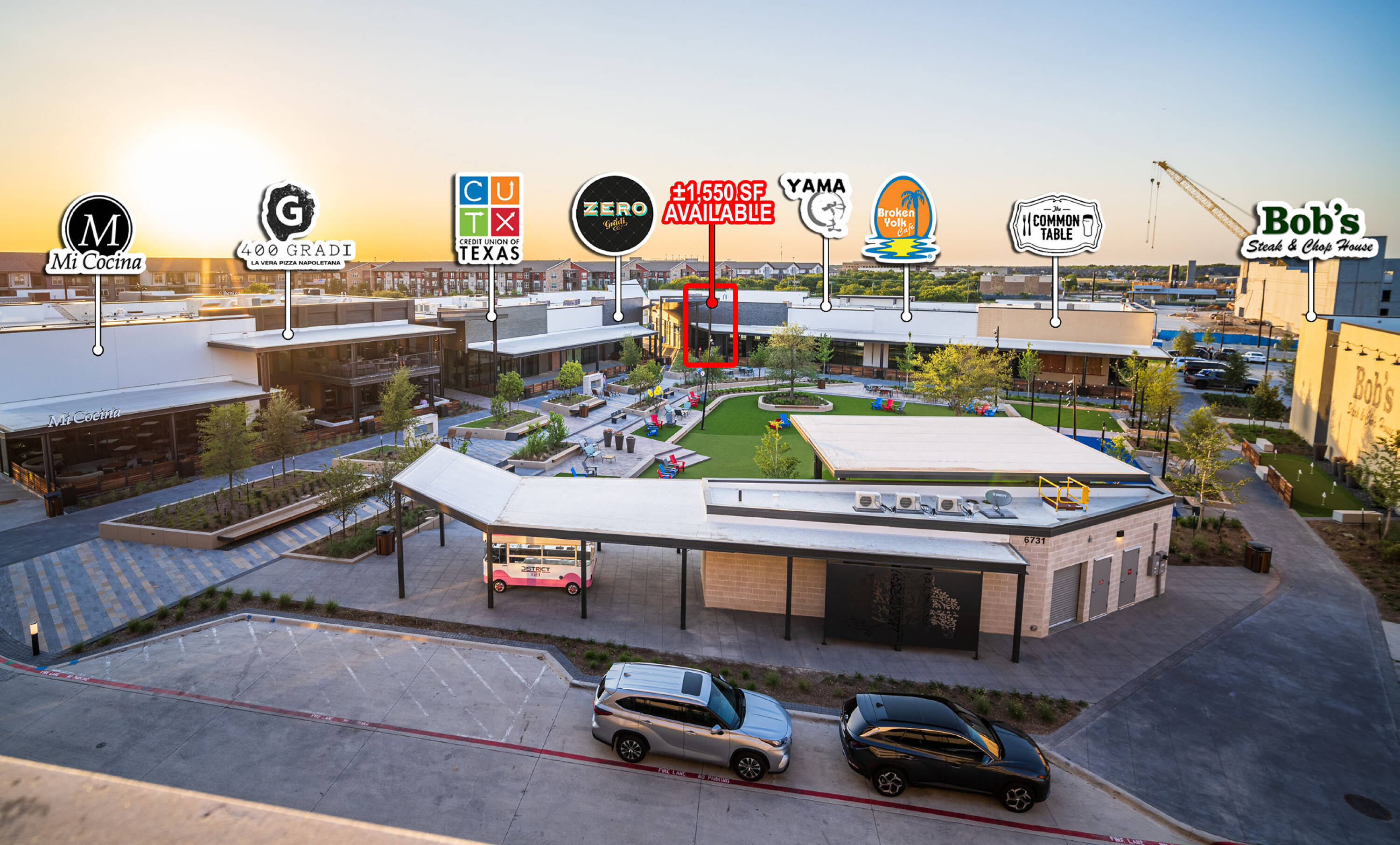 Retail and restaurant spaces in a high-growth area.