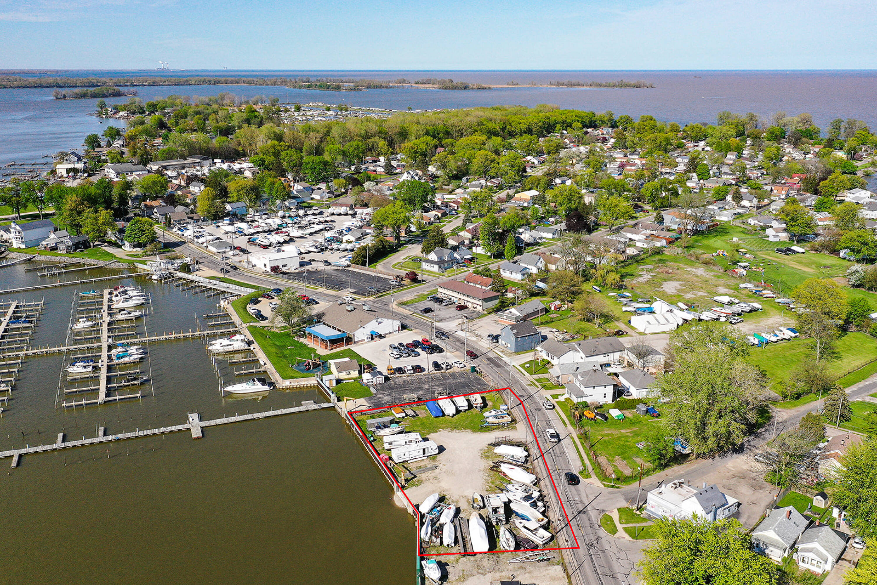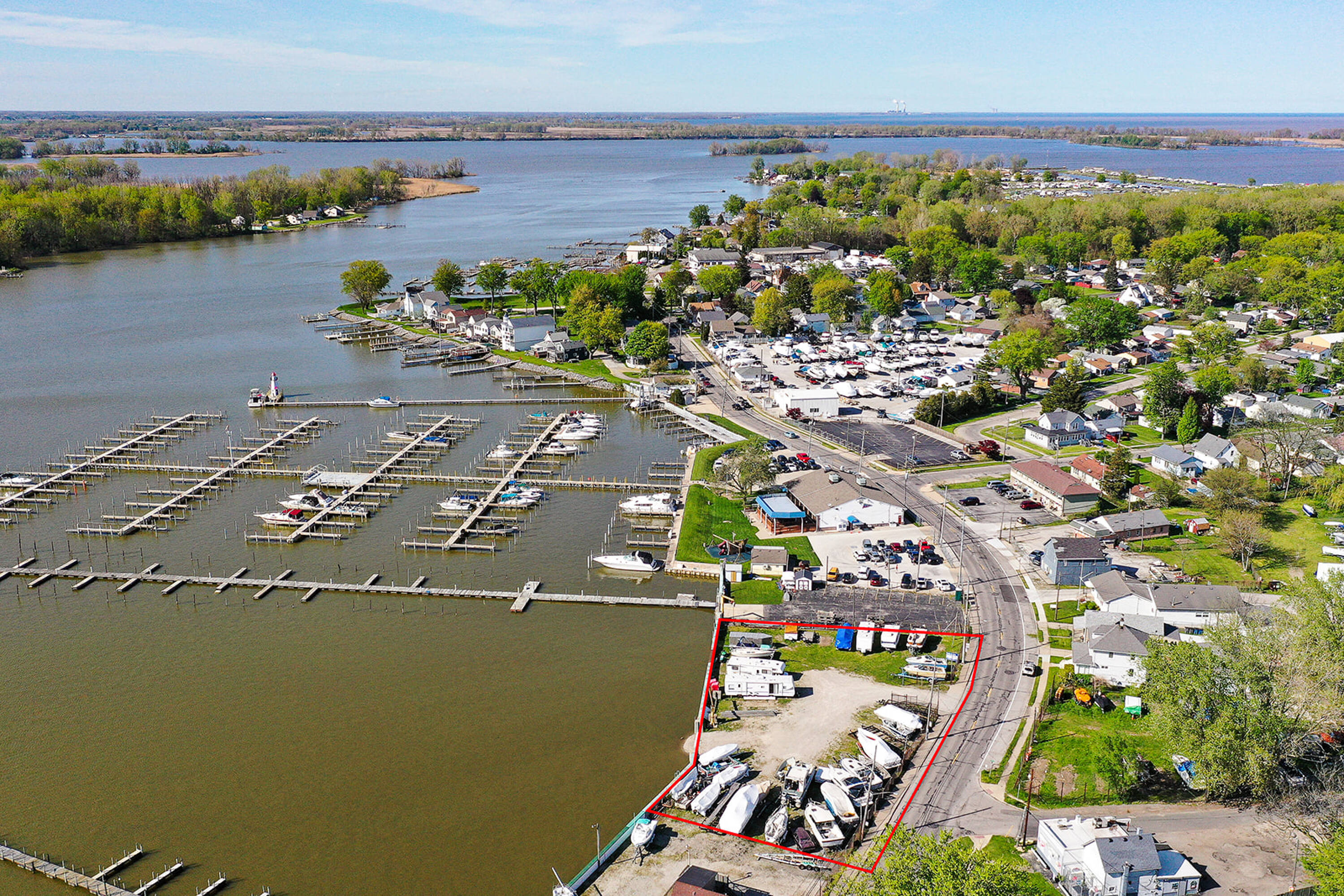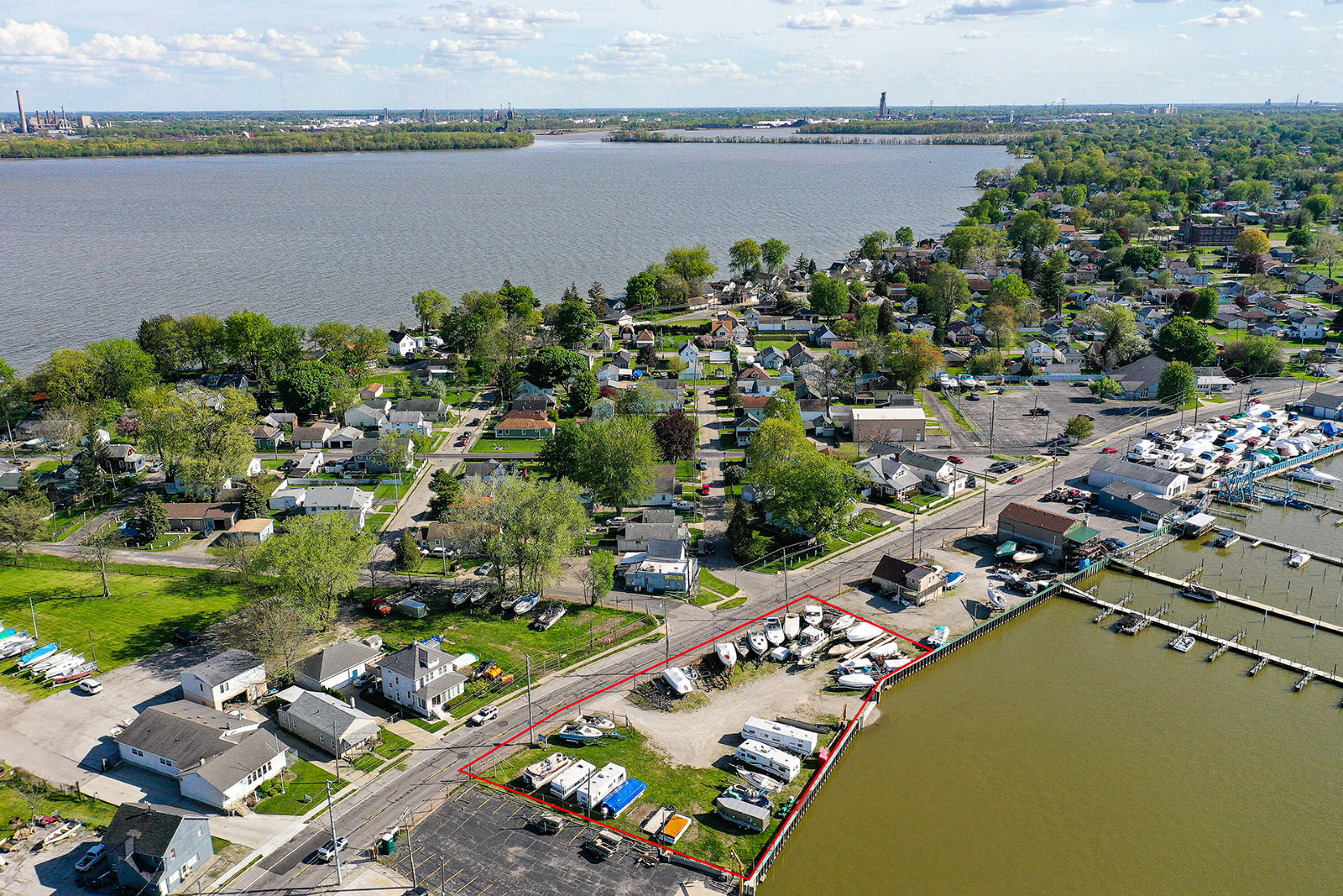 This 0.68-acre land parcel is located directly on the Ottawa River and features 219 feet of river frontage. A seawall with a gate has been installed by the Corps of Engineers. The property may be suitable for a boat club with multiple docks or a private riverfront gathering place.