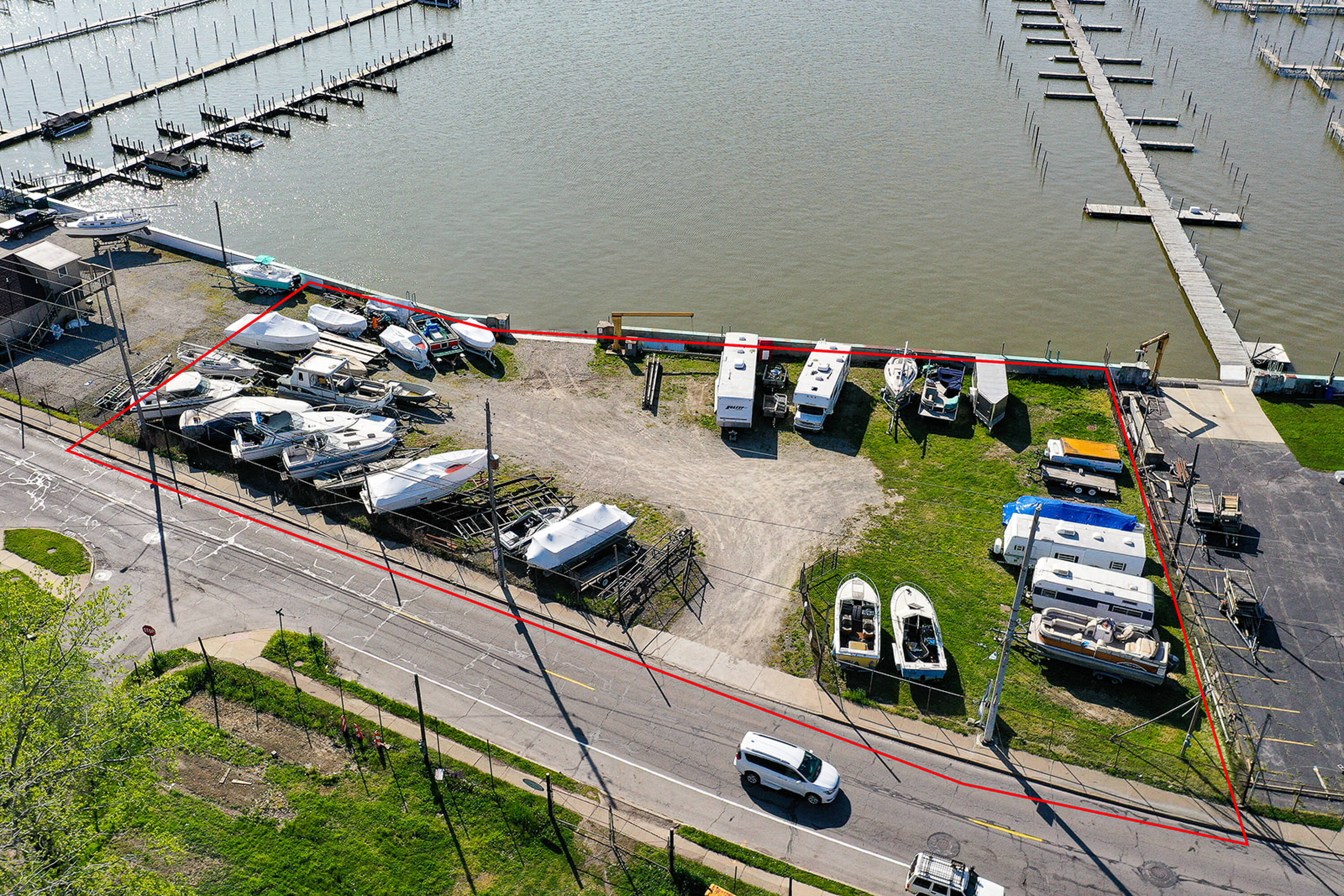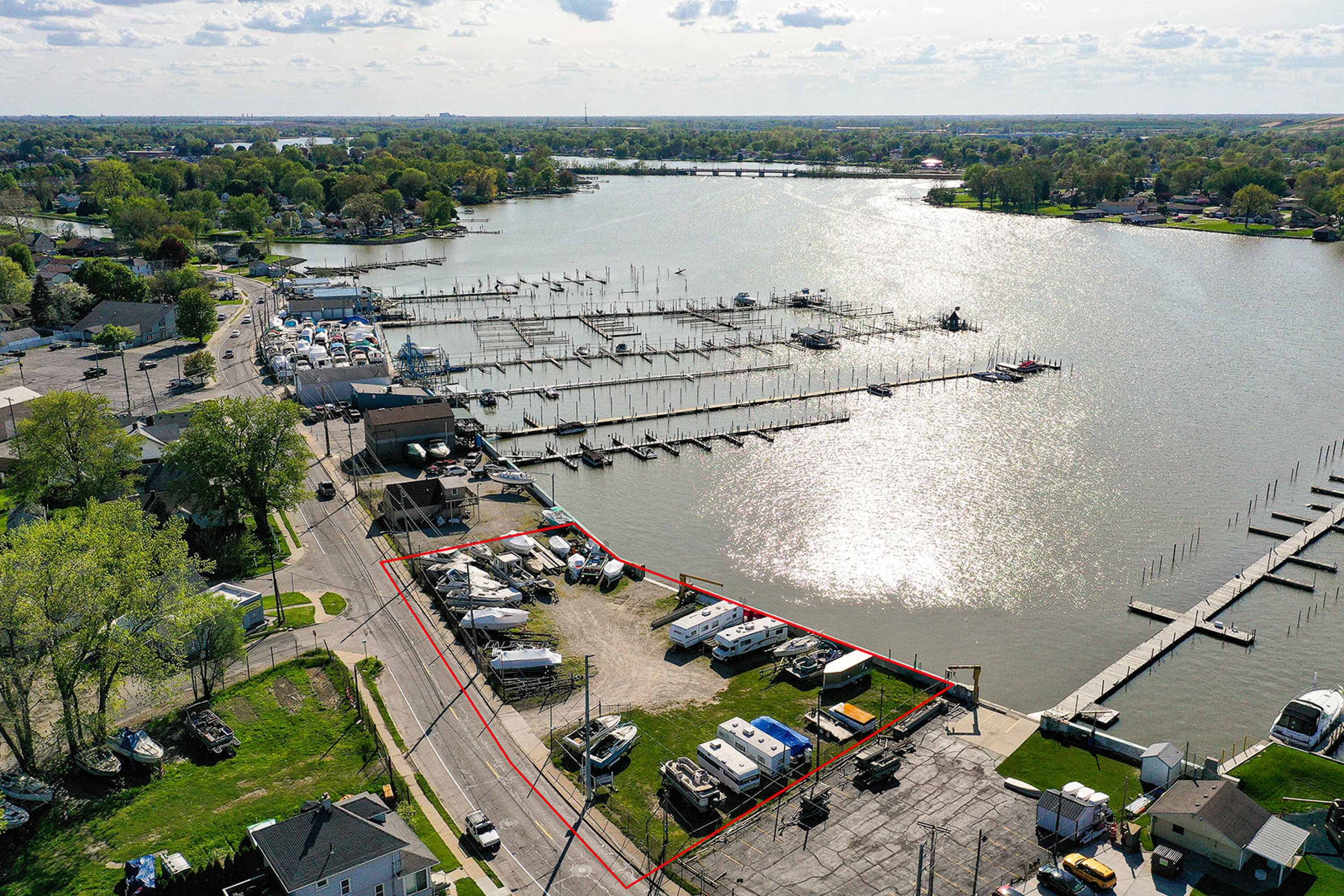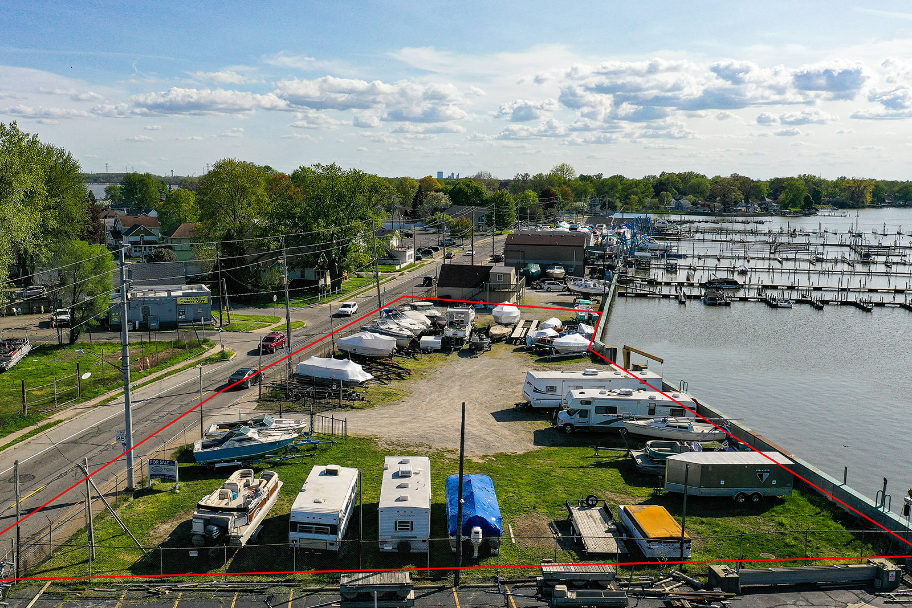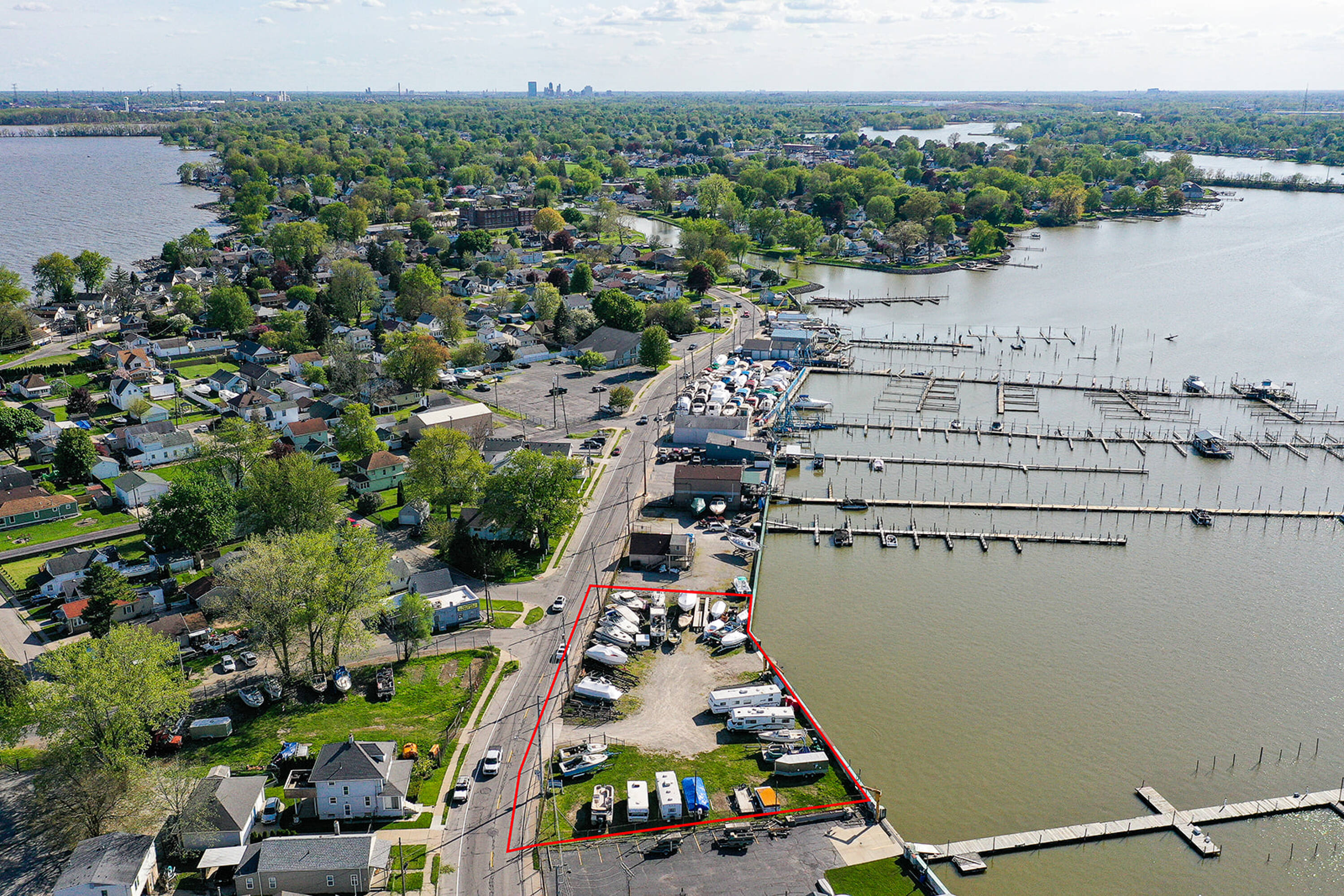This 0.68-acre land parcel is located directly on the Ottawa River and features 219 feet of river frontage. A seawall with a gate has been installed by the Corps of Engineers. The property may be suitable for a boat club with multiple docks or a private riverfront gathering place.