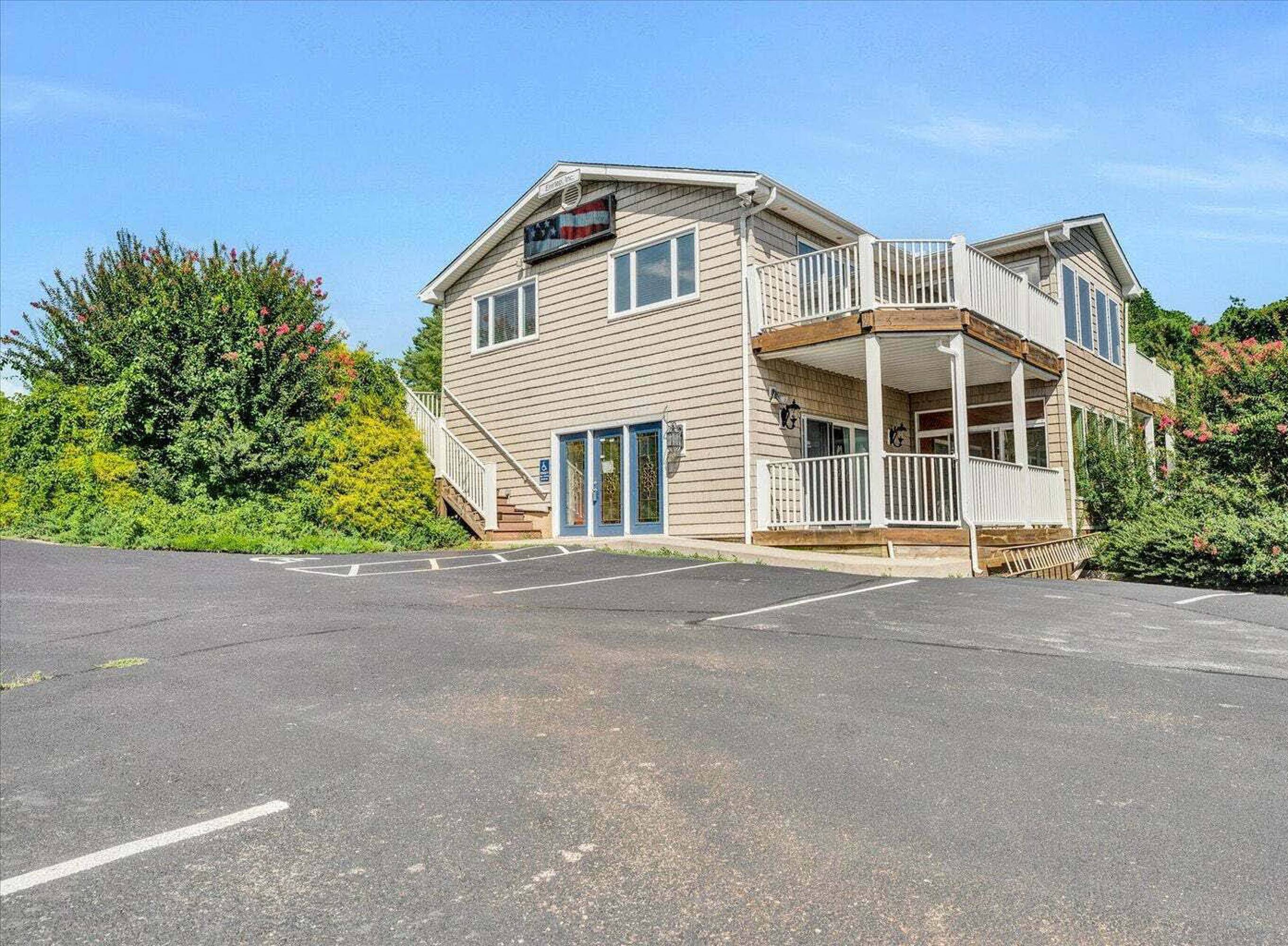 The property at 1027 Waterwheel Drive is a 0.64-acre lakefront property situated on Smith Mountain Lake's primary commercial corridor. It features a 3,232 square foot two-story building and includes a boat dock equipped with four covered dock slips. The building provides ground-level access on both floors and offers 14 parking spaces, a ratio of 4.6 spaces per 1,000 square feet. Its zoning permits various uses, including short-term rentals. Located just off Route 122, also known as Booker T Washington/Moneta Road, at the Hales Ford Bridge, the property provides access to both Bedford and Franklin Counties, as well as boat access to the main channel of Smith Mountain Lake. The location offers views of Smith Mountain Lake and the surrounding mountains, with proximity to grocery stores, retail establishments, and restaurants. The property is suitable for commercial real estate, office buildings, office properties and spaces, short term rental properties, multifamily properties, and residential income properties.