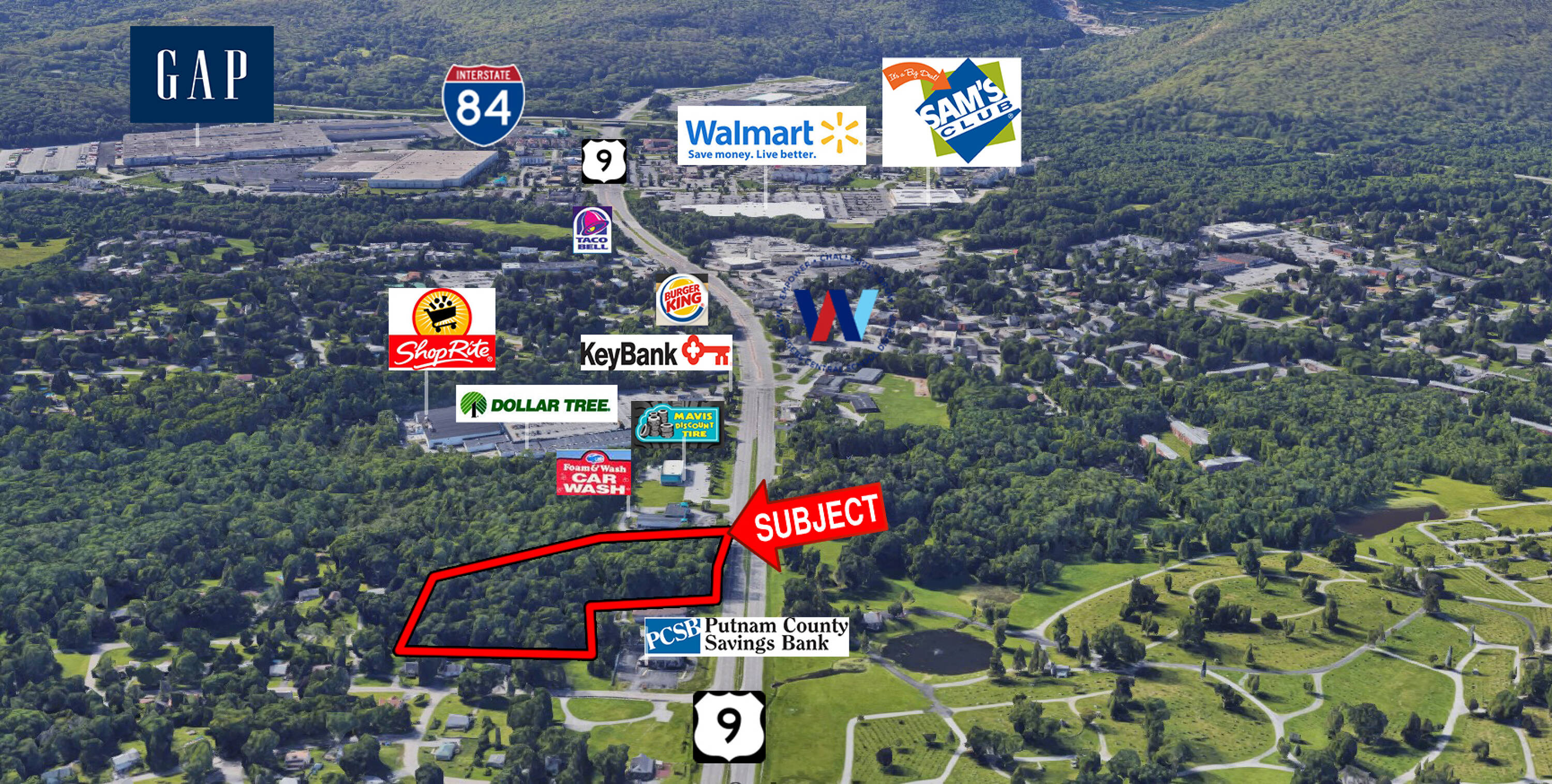 This property features a 7.2 +/- acre development parcel situated directly on U.S. Route 9 in Fishkill, New York.