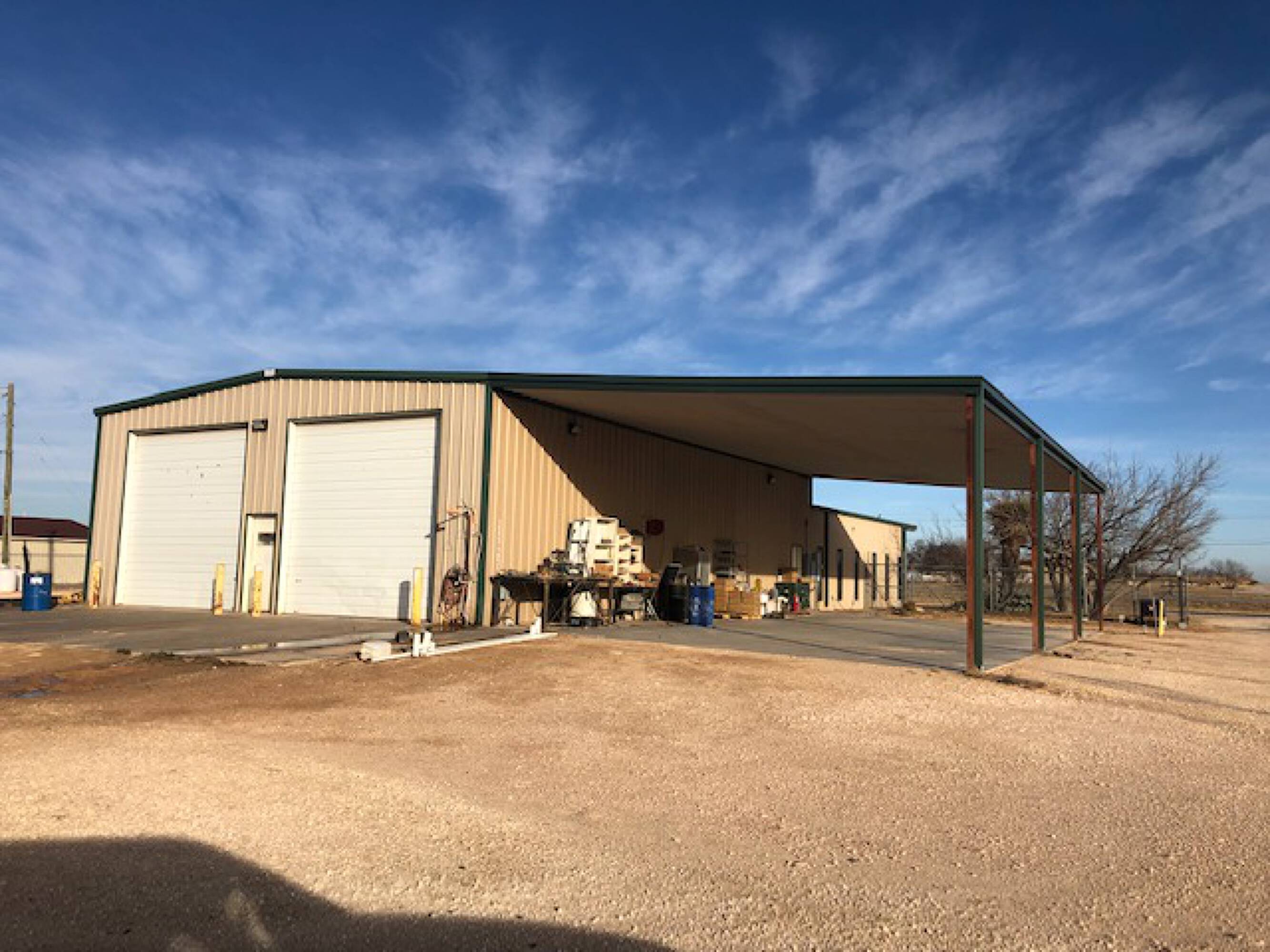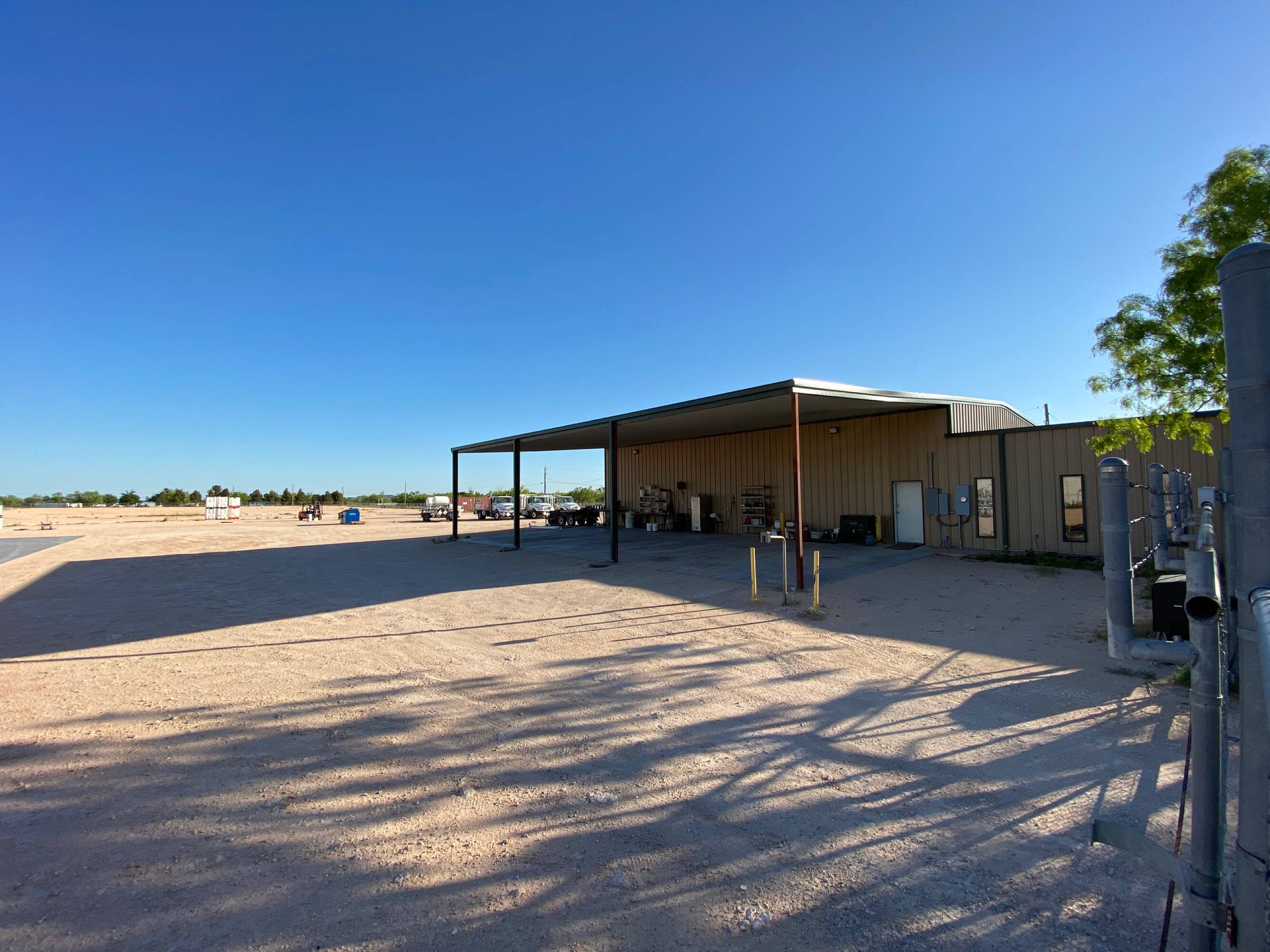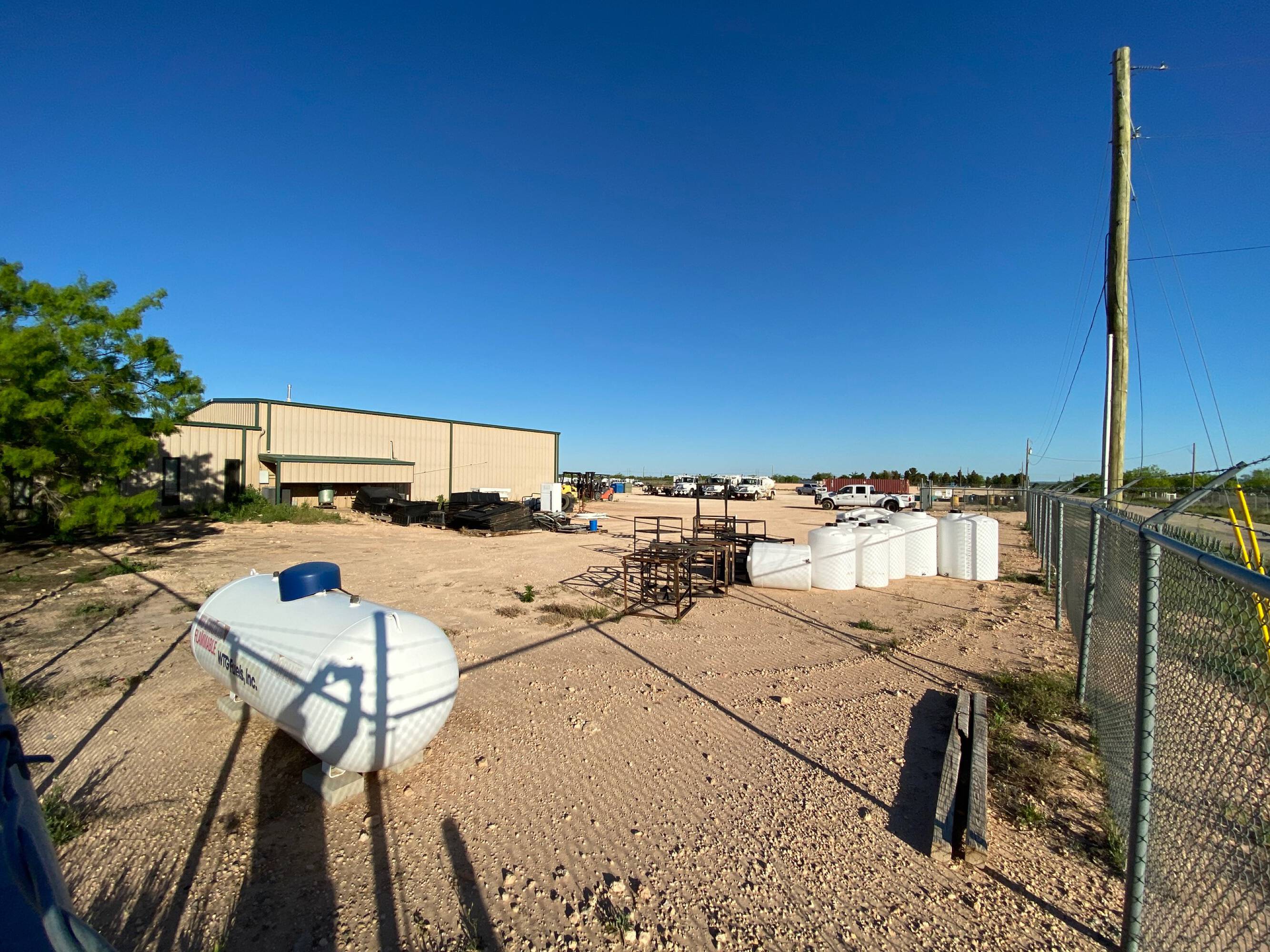 This recently vacated oil and gas service facility is located at 9500 S I-20 Service Rd in Big Spring, Texas. The property includes a 5,000-square-foot main office and shop with a 2,400-square-foot covered wash area and storage space. Additionally, there is a 1,050-square-foot shop/office with an attached 4,130-square-foot covered equipment storage area. The property sits on 3.7 acres under fence and includes a curbed-in tank farm. An additional 6-acre surfaced and fenced area with a remote access gate is also included. The property is fully accessible and visible from the I-20 service road. Combined, the facility offers 10 offices, 3 bathrooms, 1 conference room, and 2 kitchens, along with 2 shops, a small tank farm, covered storage, and a yard. The total building size is 10,180 square feet.