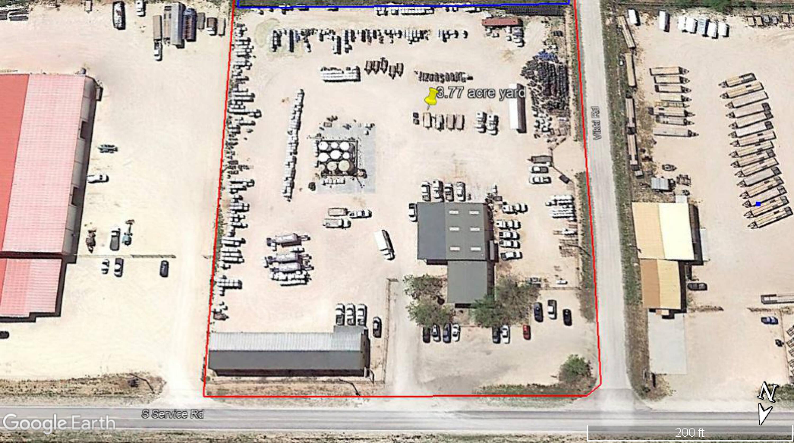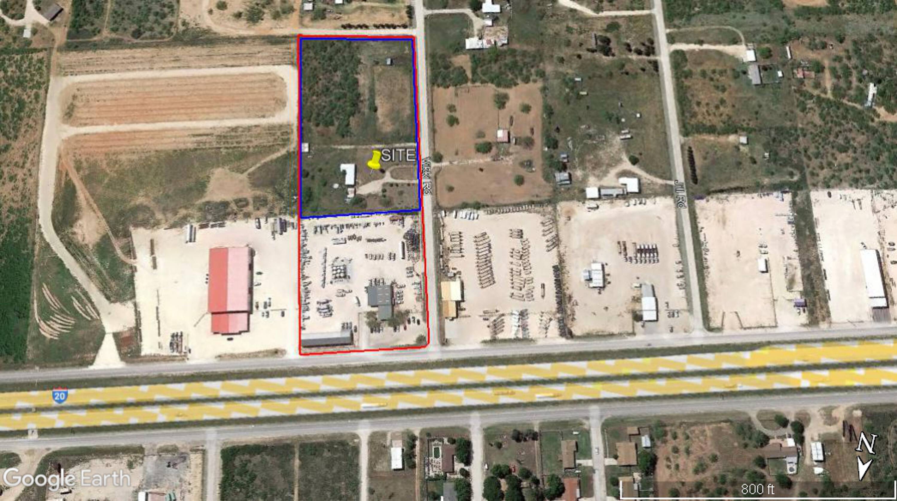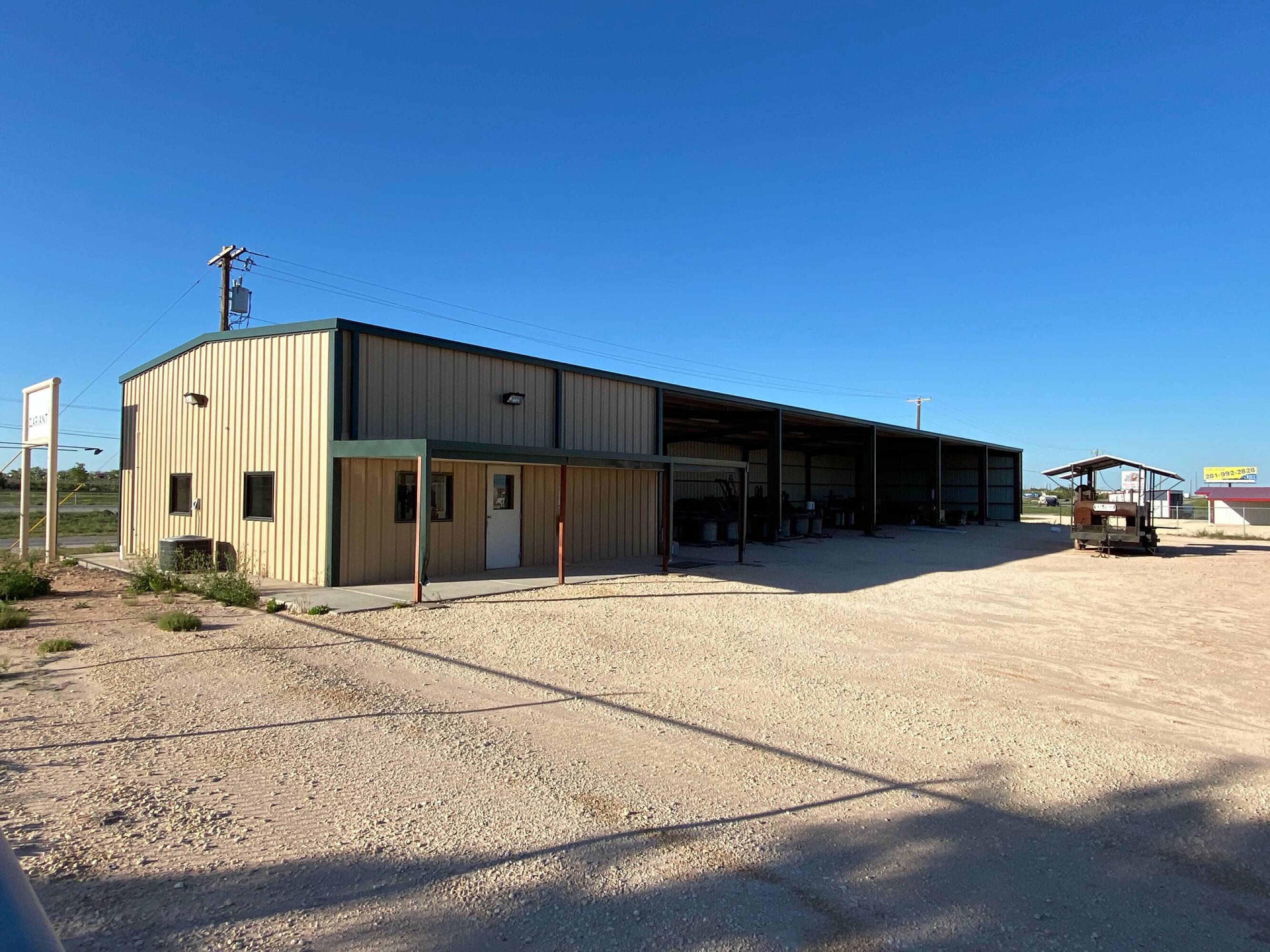 This property features: High visibility and direct access from I‑20 Service Rd.; Large 9.7‑acre property fully fenced with remote access gate.; Two buildings: a 5,000 SF main office/shop with 2,400 SF covered wash area/storage and a 1,050 SF shop/office with 4,130 SF covered equipment storage.