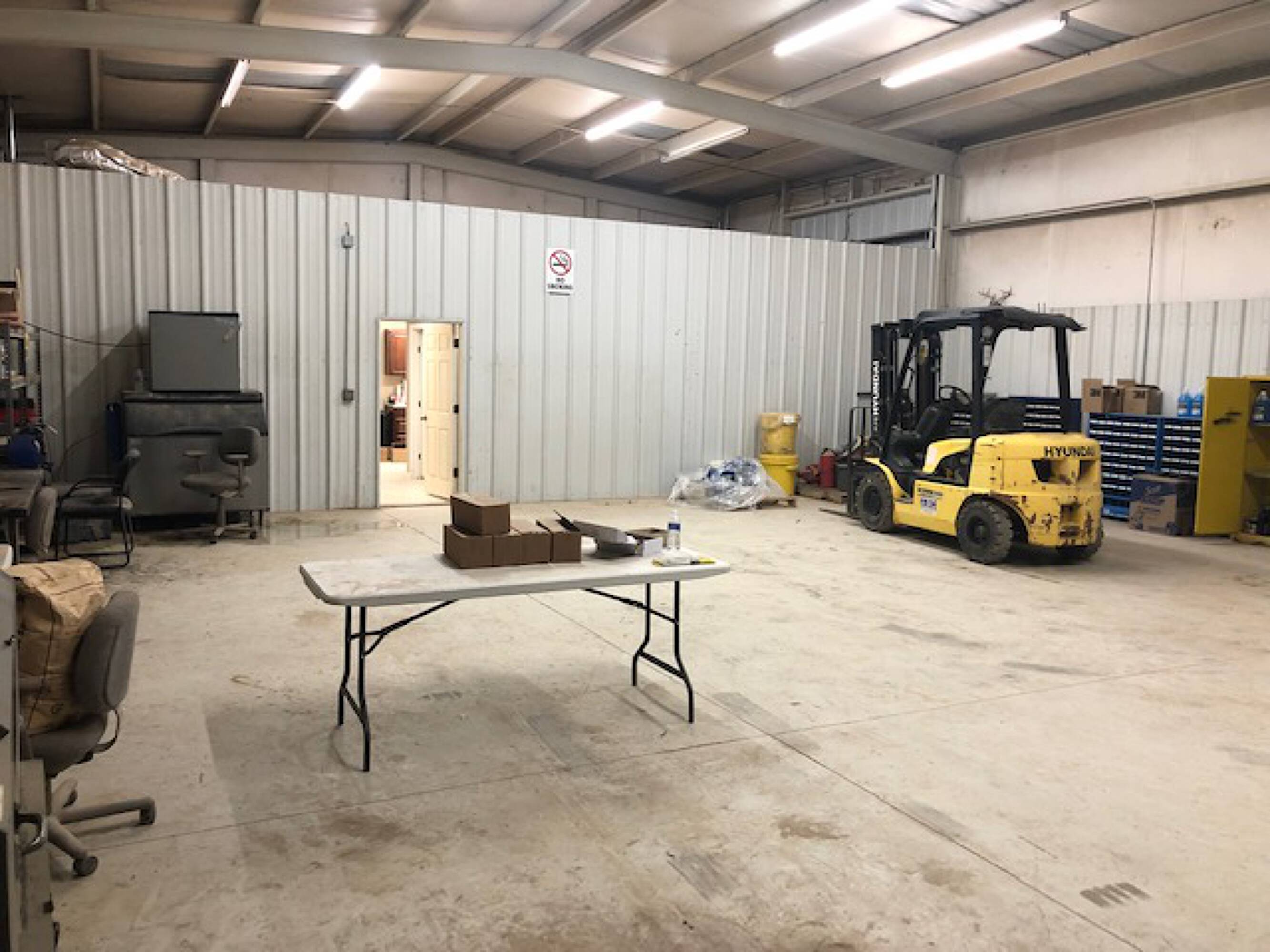 Industrial facility with offices, shops, storage, and fenced yard.