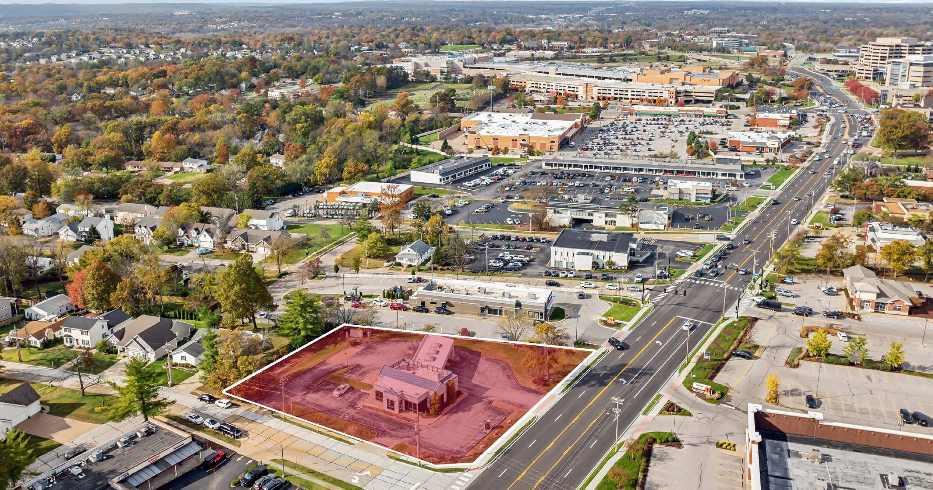 Retail space available for lease in Des Peres, Missouri.