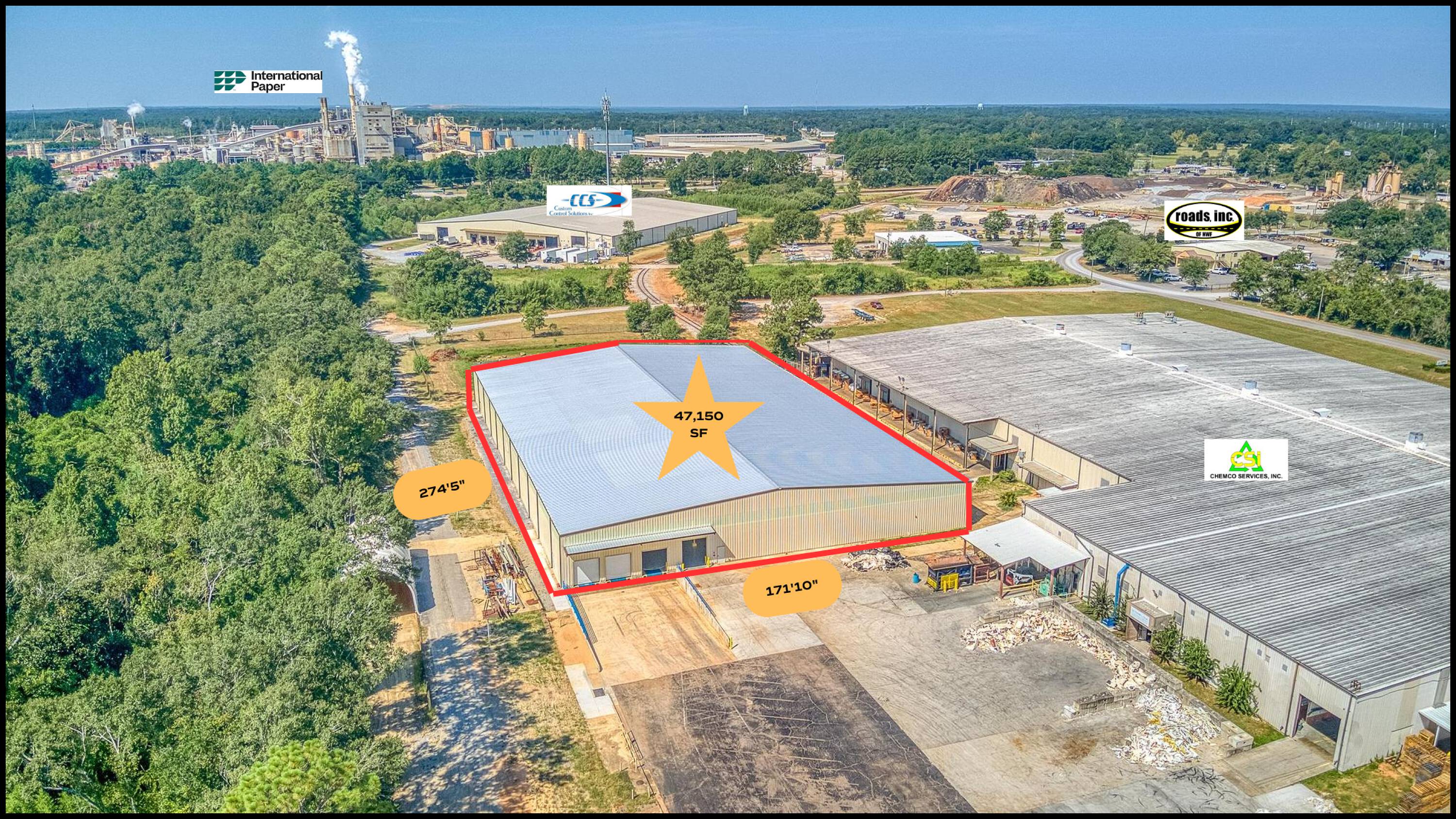 Newly constructed warehouse with lay-down yard and distribution potential.
