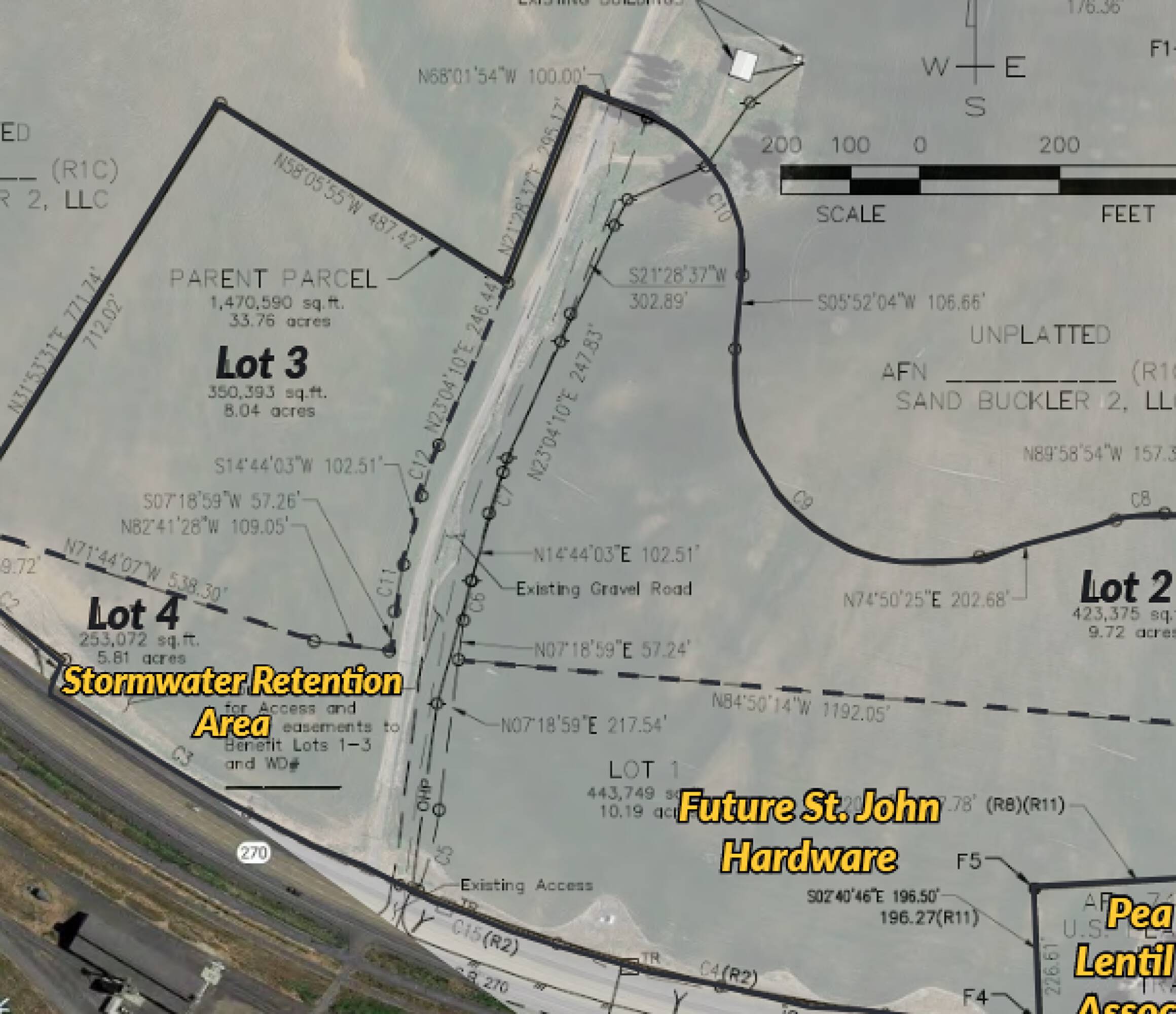 Commercial land with highway frontage and development potential.