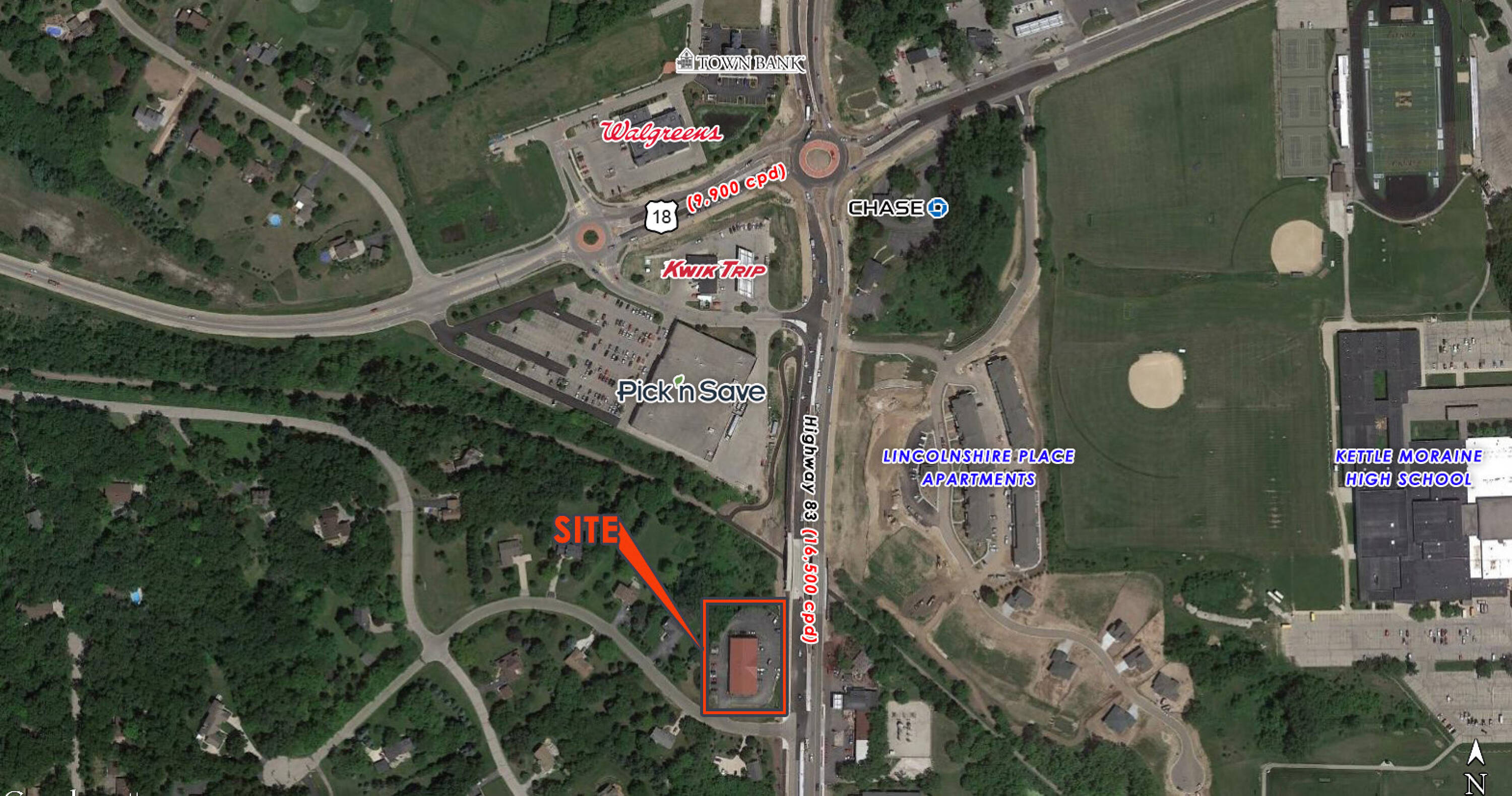Retail space available for lease in Wales, Wisconsin.