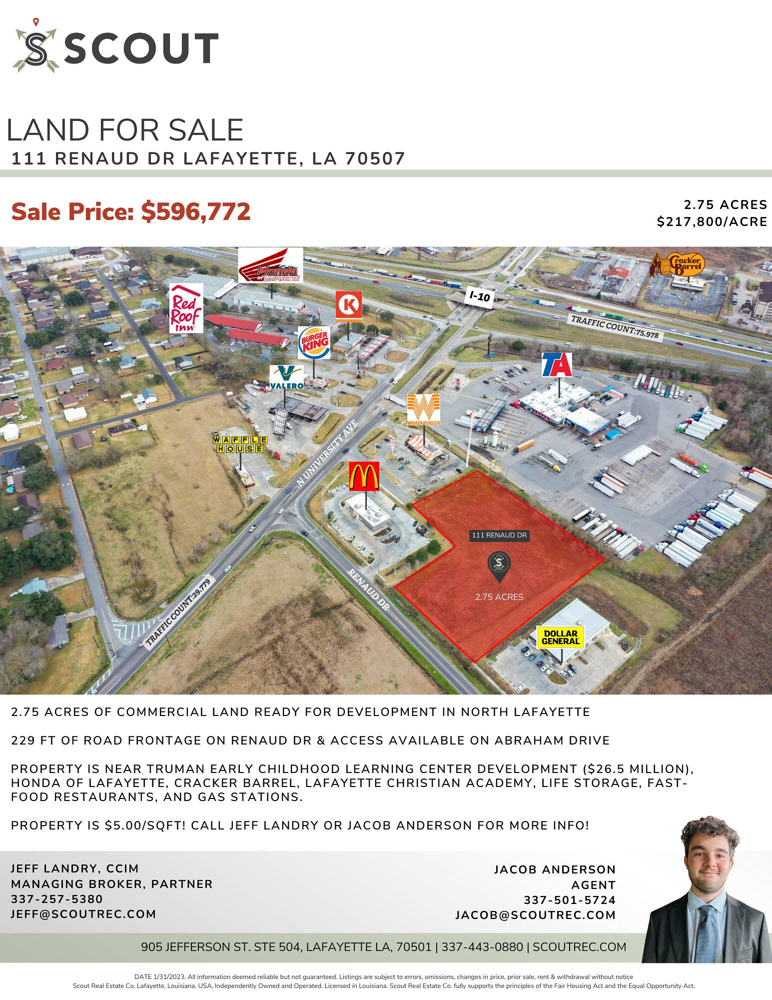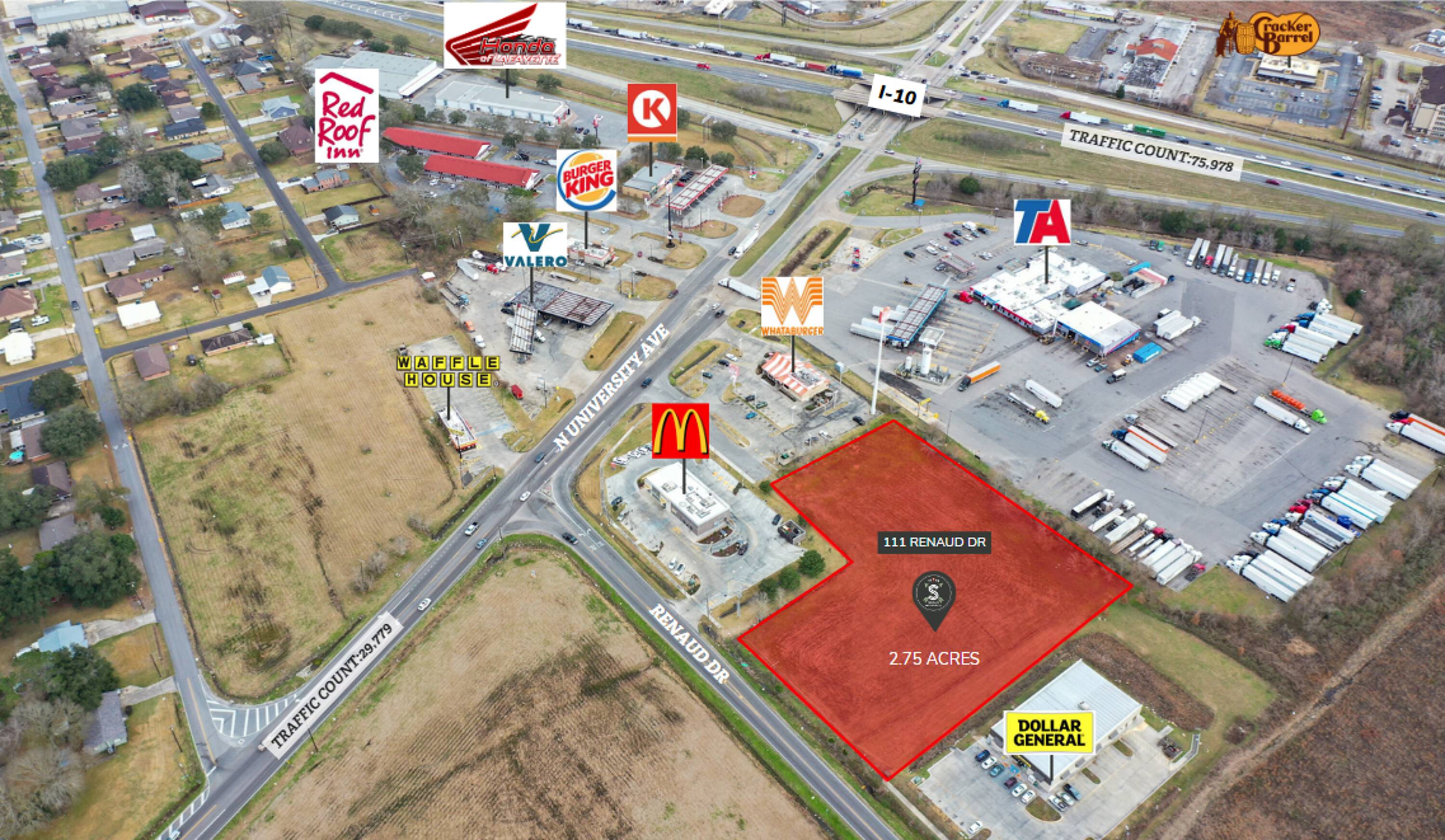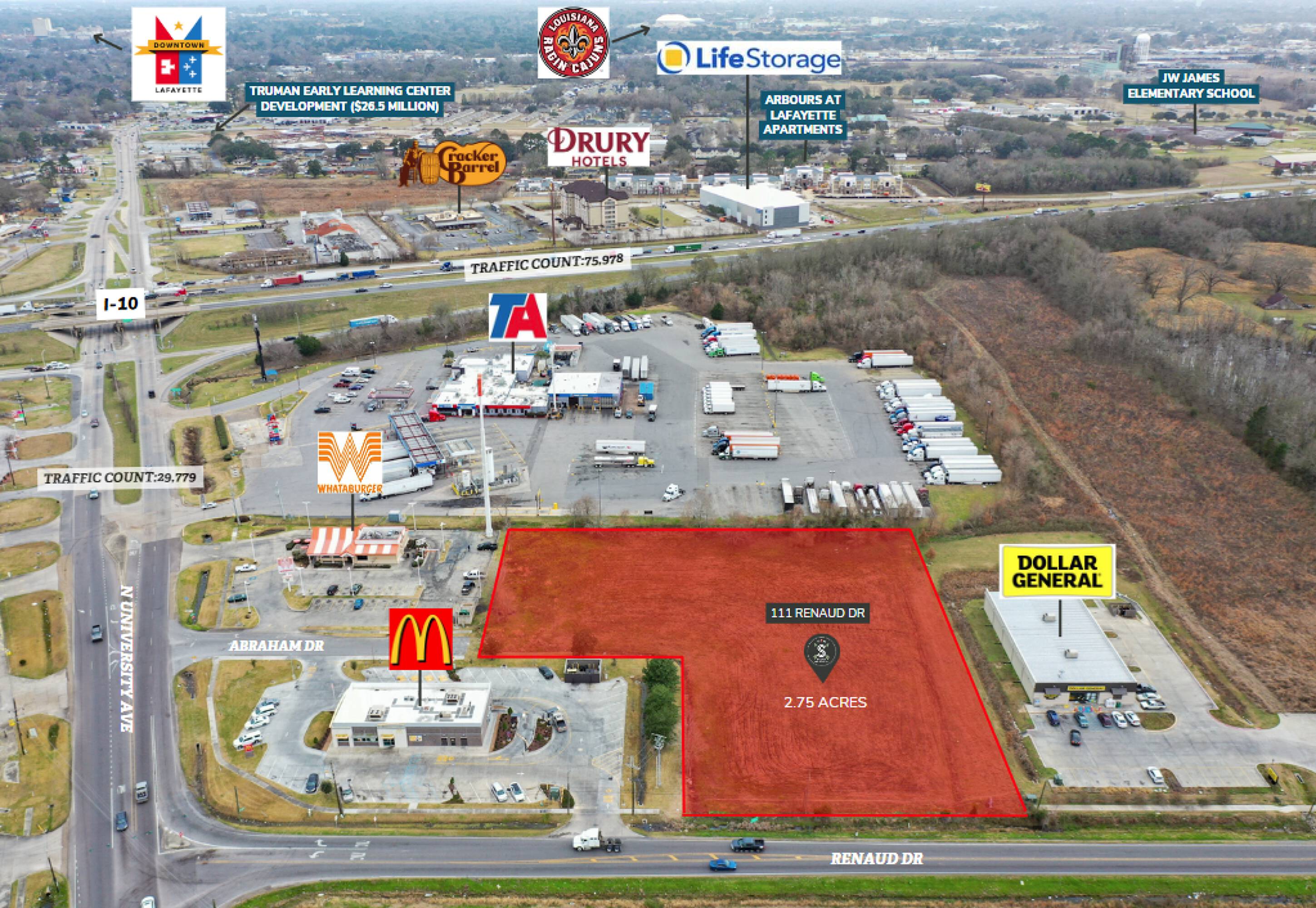 This property features: 2.75 Acres of Commercial Land ready for development.; Boasts 229 ft of road frontage on Renaud Dr.; Access available on Abraham Drive.