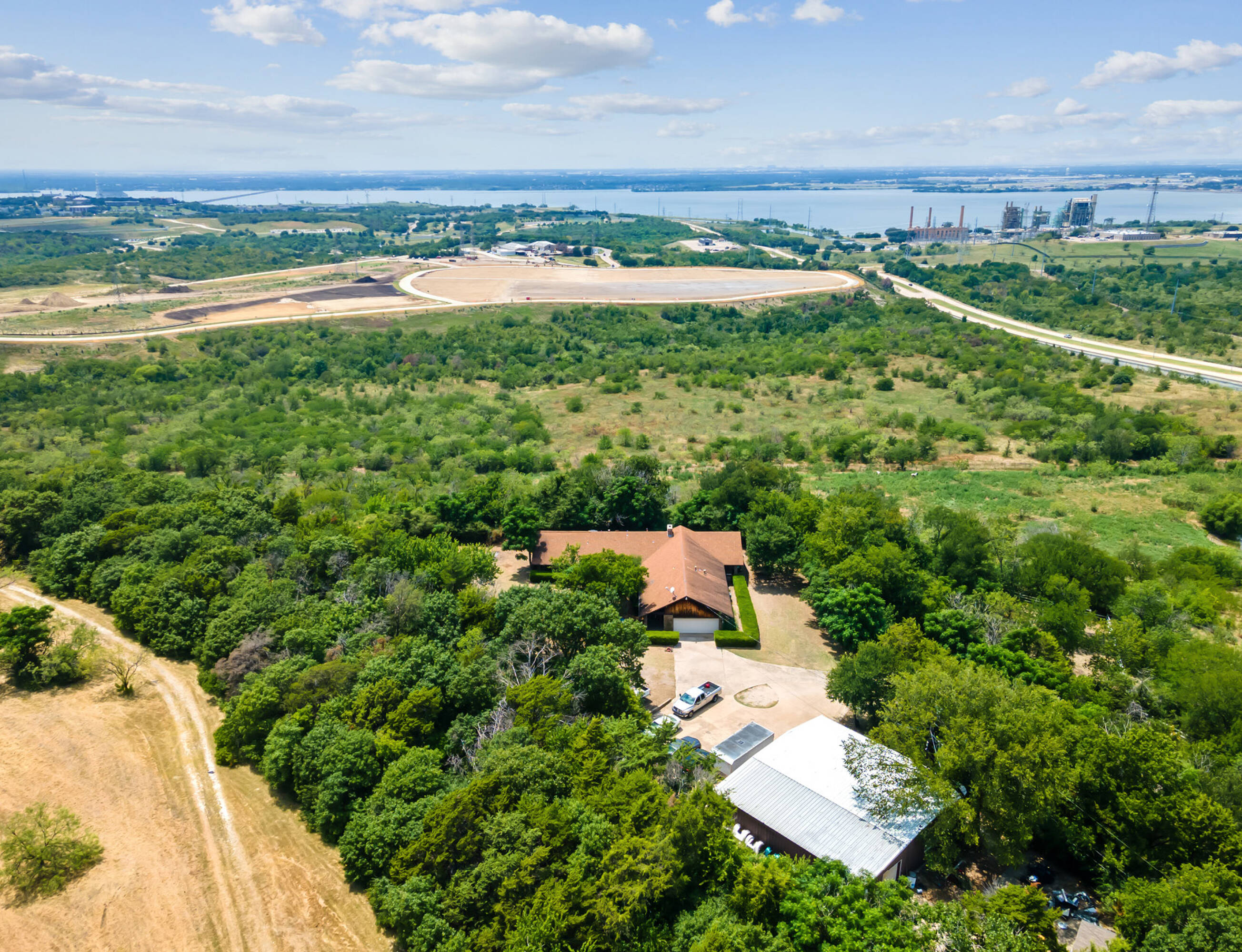 This 19-acre property features natural beauty and overlooks Mountain Creek Lake, the Dallas Fort Worth National Cemetery, and Dallas Baptist University. It is located one mile from the Dallas National Golf Club, sharing similar topography. The property is strategically positioned at the signalized intersection of Mountain Creek Parkway and Spur 408 in Southwest Dallas, offering access to I-20, I-30, Loop 12, and I-35E. It is also located near the Mountain Creek Business Park and residential neighborhoods. The land is perched on a hilltop.