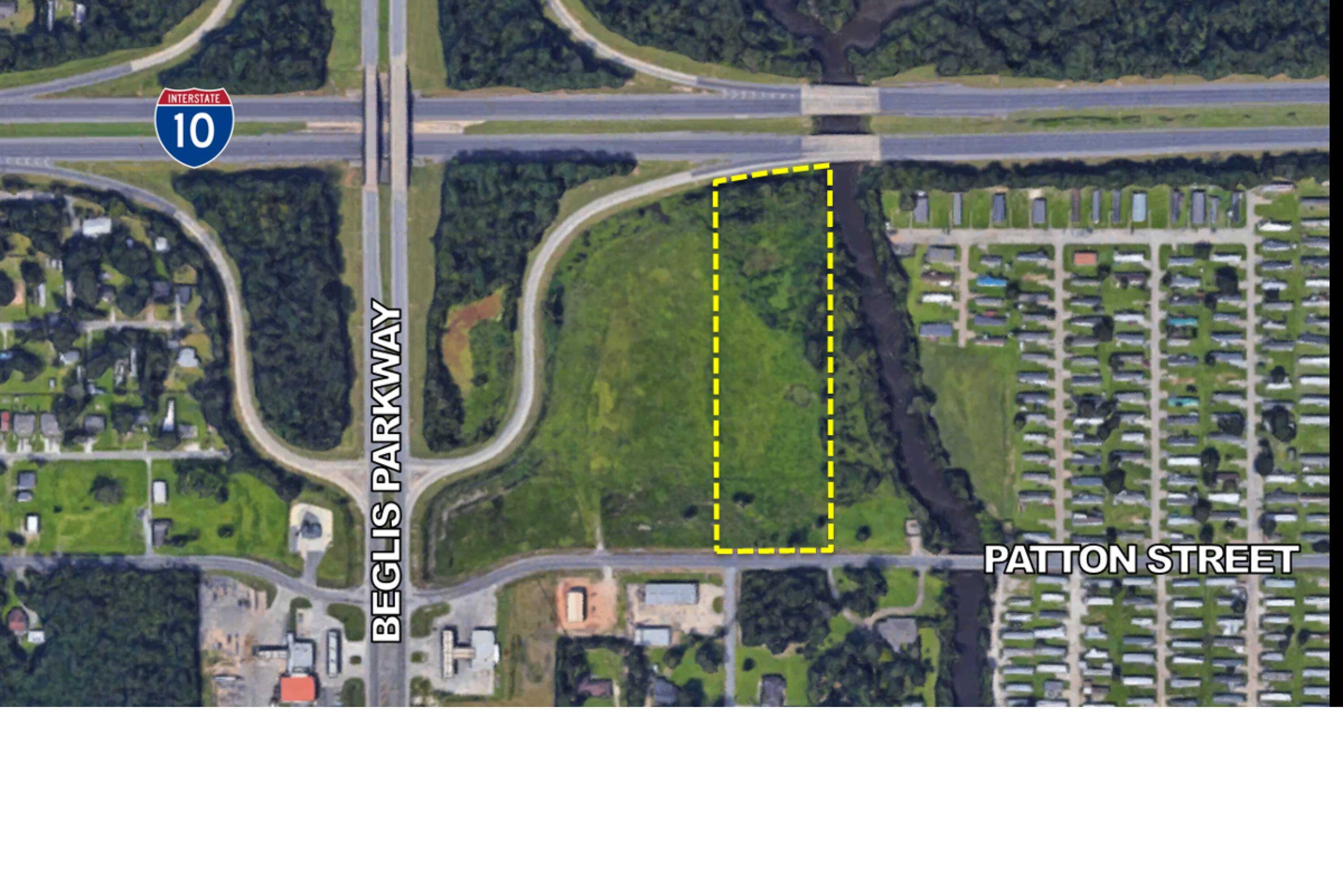 This +/- 5.85-acre commercial land parcel is available for sale at the corner of Beglis Parkway and Interstate 10. The property features approximately 260 feet of frontage on Interstate 10. The land has been cleared and has high elevations. No wetlands mitigation is required. A portion of the property bordering a draining canal is in flood zone AE, while the property along Patton Street is not located in a flood zone. Zoned Commercial and located within Sulphur City Limits, the site has public utilities available. Sewer is available, but not on site. Access to the property is via Patton Street. A geotechnical engineering report is available. The property is a highly visible location.