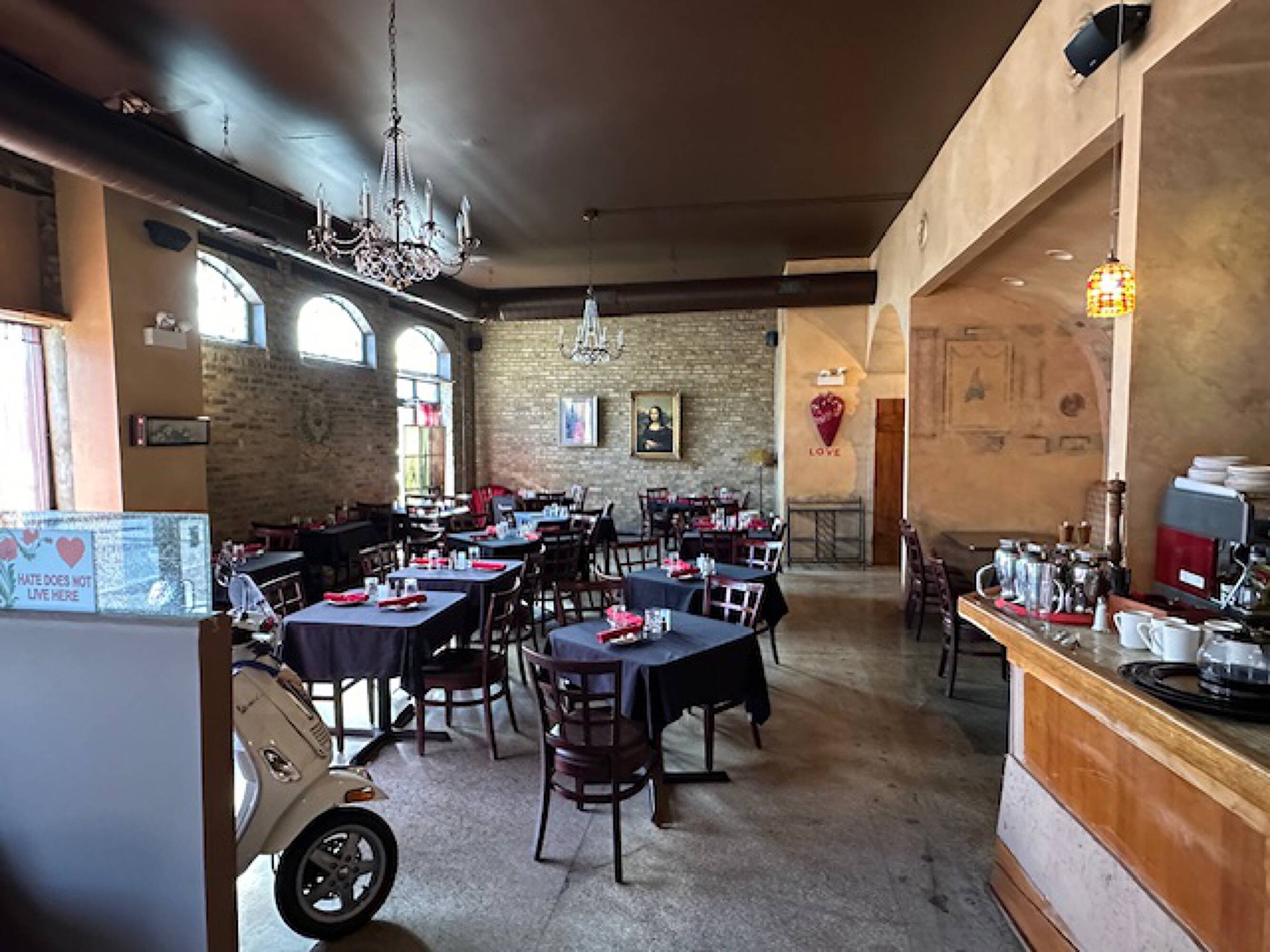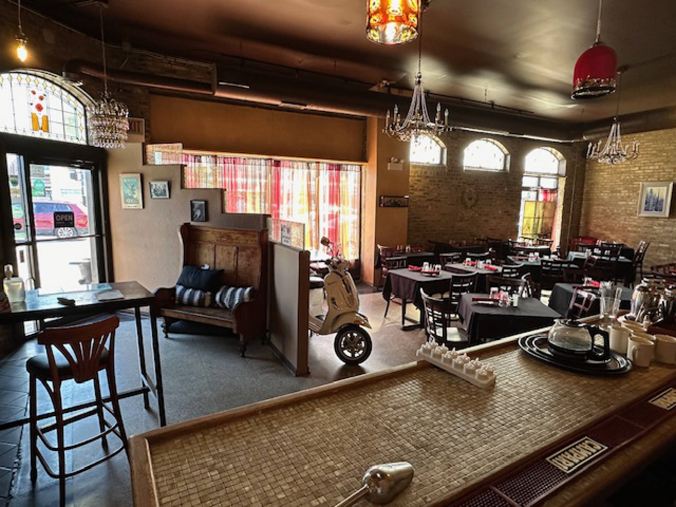 Second-generation restaurant space with fixtures and full basement for rent.