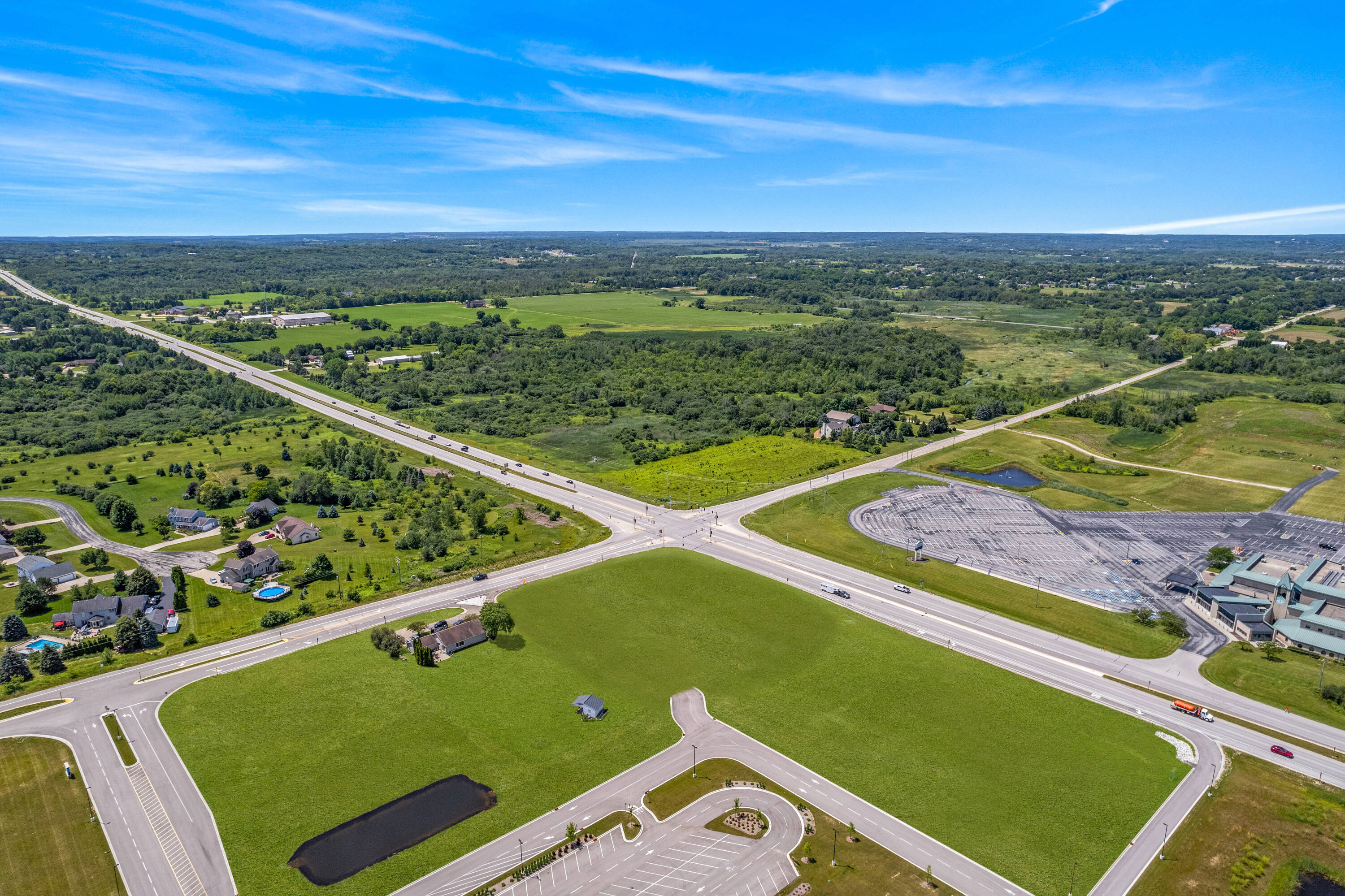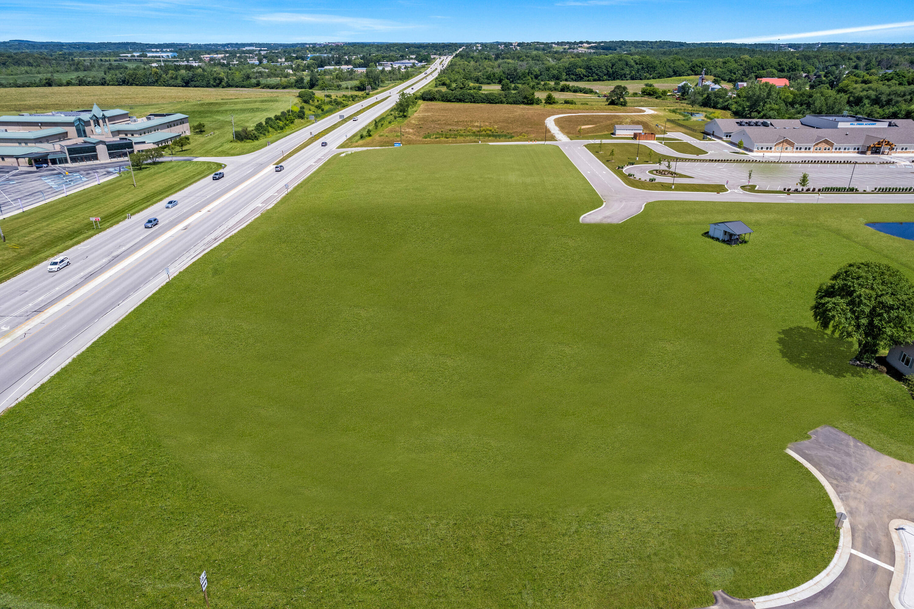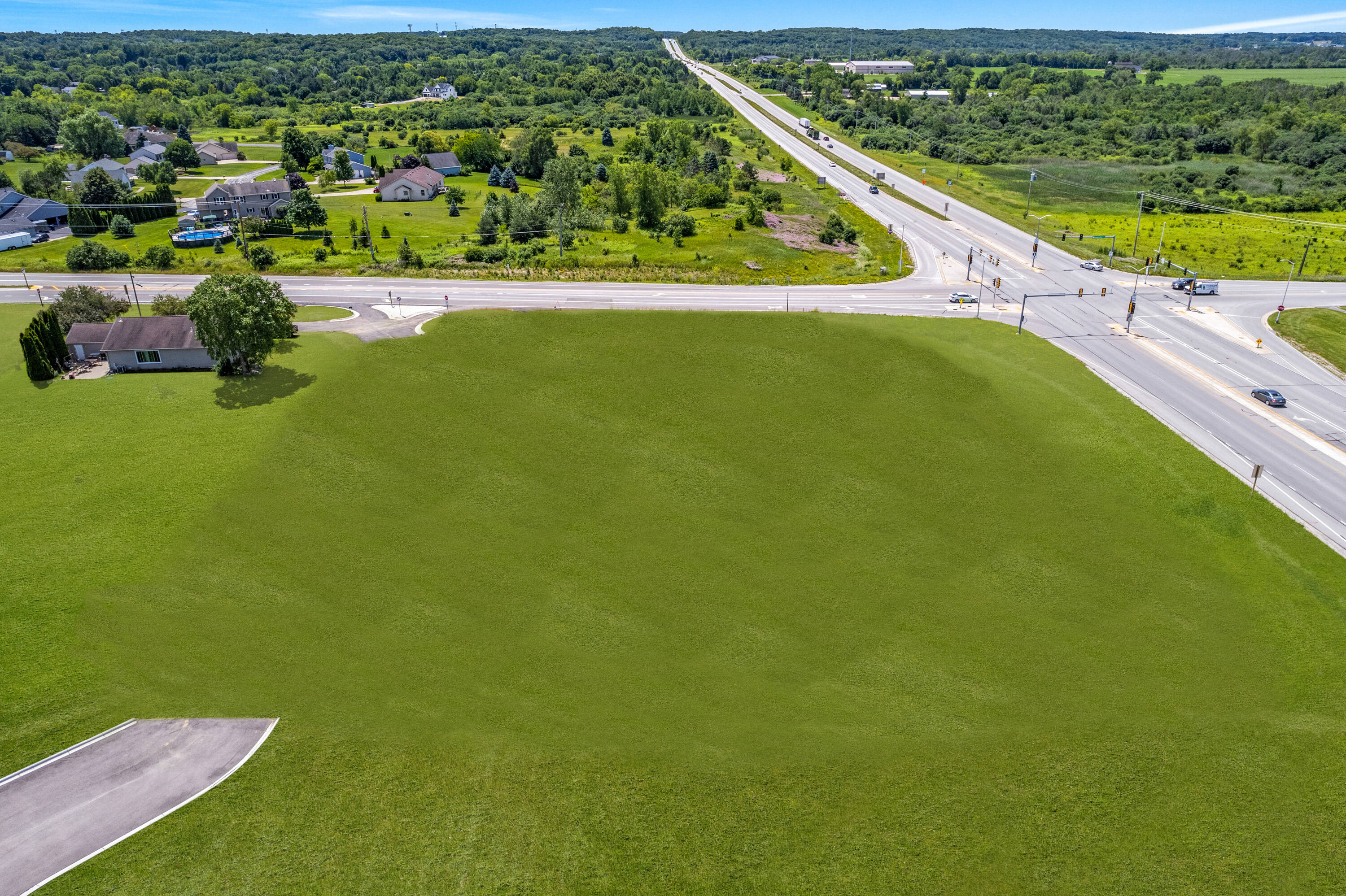 This commercial land offers a development opportunity in a favorable location. The property is zoned B2 and benefits from a high-traffic location with approximately 22,000 cars per day, according to DOT data. Situated on a corner lot at a traffic light intersection, the site provides high visibility and is in close proximity to I-43. Various amenities are nearby, including a new charter grade school and surrounding neighborhoods.