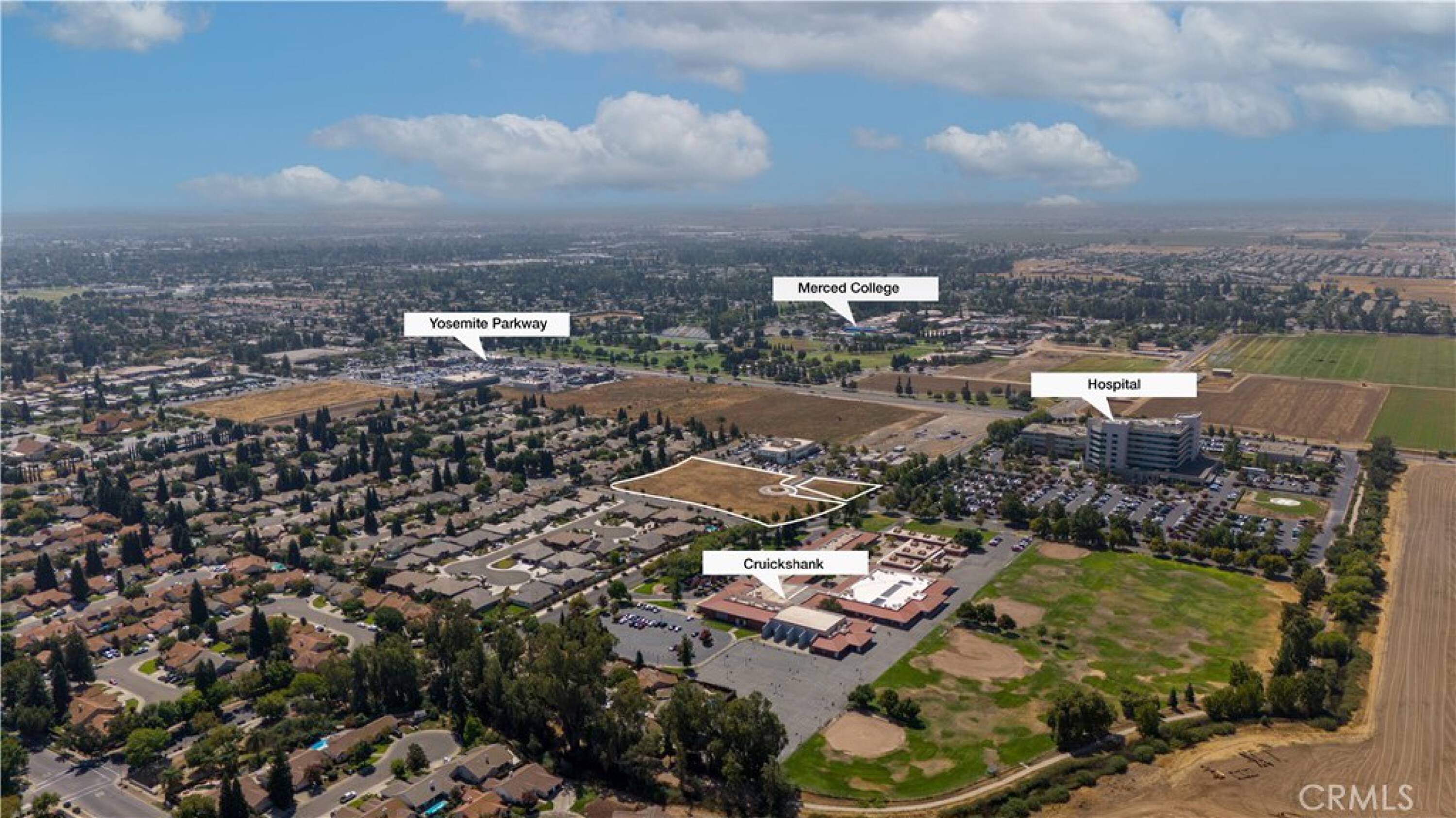 Development-ready commercial land near Mercy Hospital, Merced College, UC Merced.