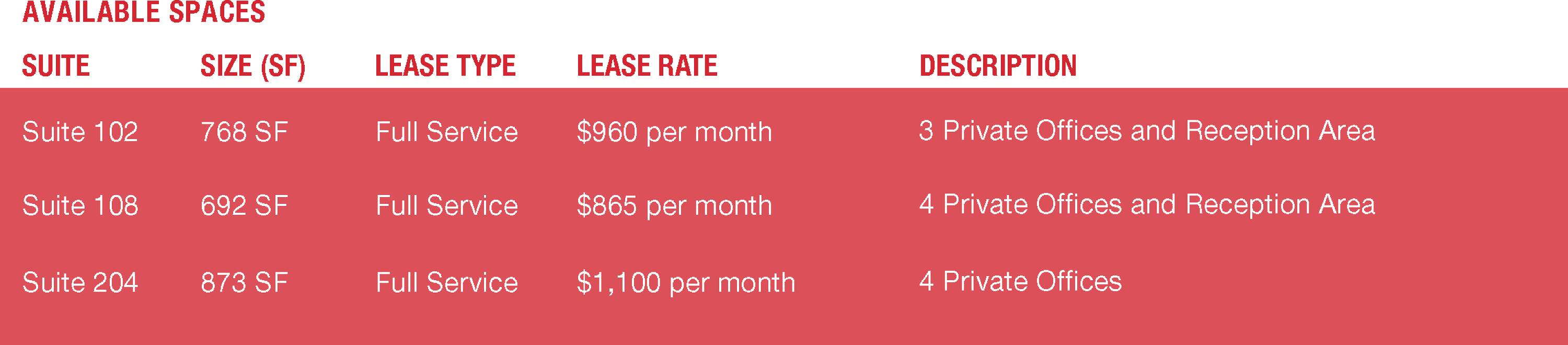 Suite 102 $15 /Mo