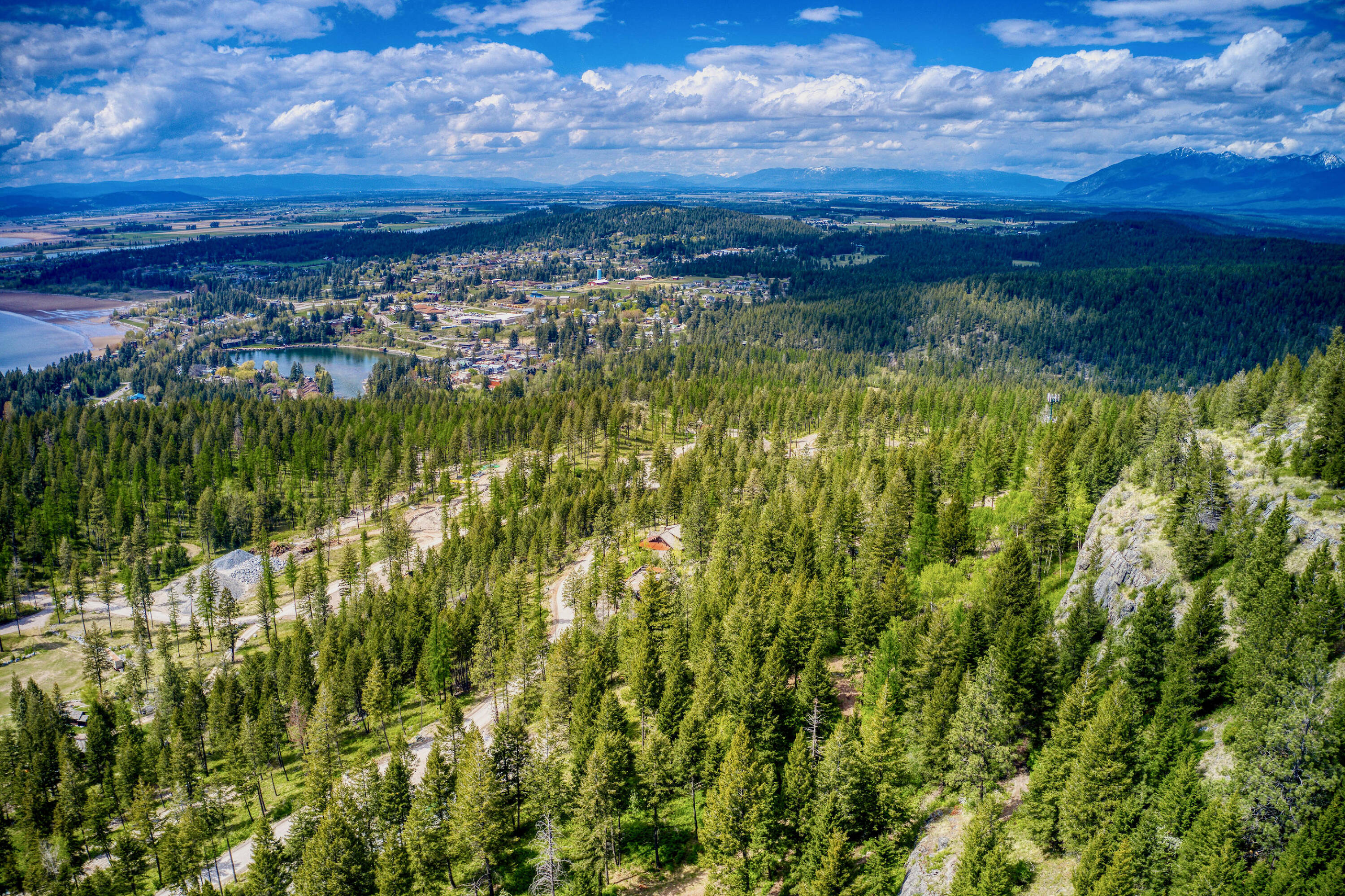 This Trading Post lot features a level building site and offers partial views of the lake and Bigfork village. As part of the Saddlehorn community, the lot is bordered by permanent open space. Residents have access to HOA amenities, including the Chief Cliff overlook pavilion with views of Flathead Lake and Blacktail Mountain. The Clubhouse provides a swimming pool and lounging area. Additionally, owners have private Flathead Lake access via the owner's lakefront boathouse and member's lounge in Woods Bay. Boat slips are available for lease or purchase at the adjacent Hidden Harbor Marina. The Saddlehorn Bar & Grill, operated by Mackenzie River Pizza, offers dining options.