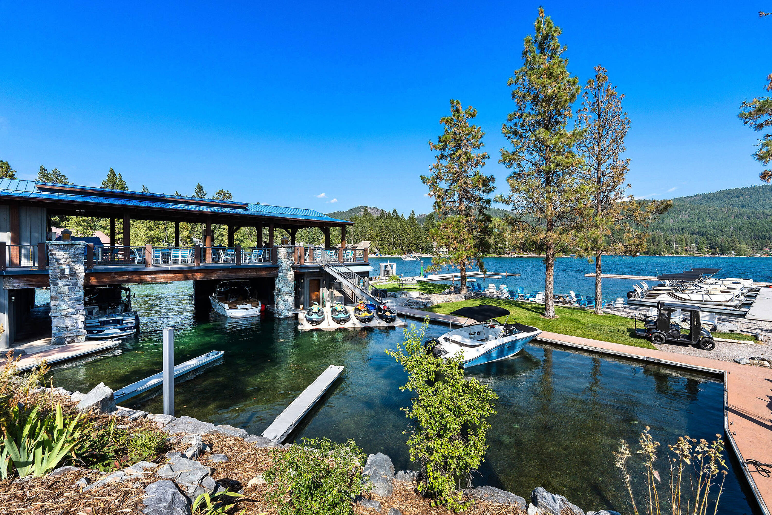 This property features: Private Flathead Lake access via owner's lakefront boathouse and member's lounge.; Enjoy HOA amenities including a Clubhouse with swimming pool and the Chief Cliff overlook pavilion with Flathead Lake views.; Saddlehorn Bar & Grill operated by Mackenzie River Pizza for on‑site dining.