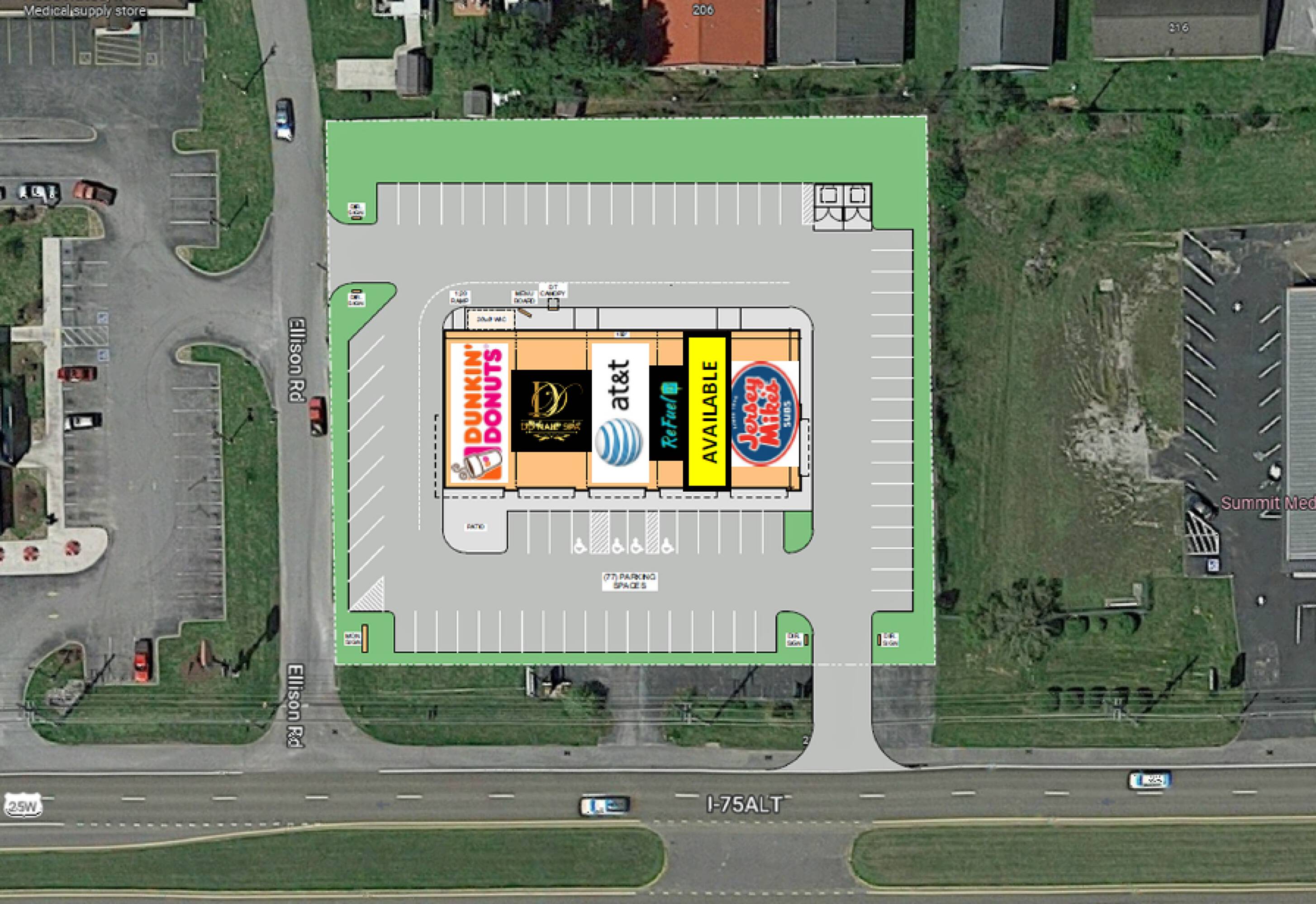 This property features: High traffic counts of 32,917 on Jacksboro Pike.; Lease rate is $25 per sq. ft. with NNN expenses at $5 per sq. ft.; Strong co‑tenants include Dunkin Donuts Drive Thru, AT&T, DD Nail Spa, Refuel IV, and Jersey Mike’s.