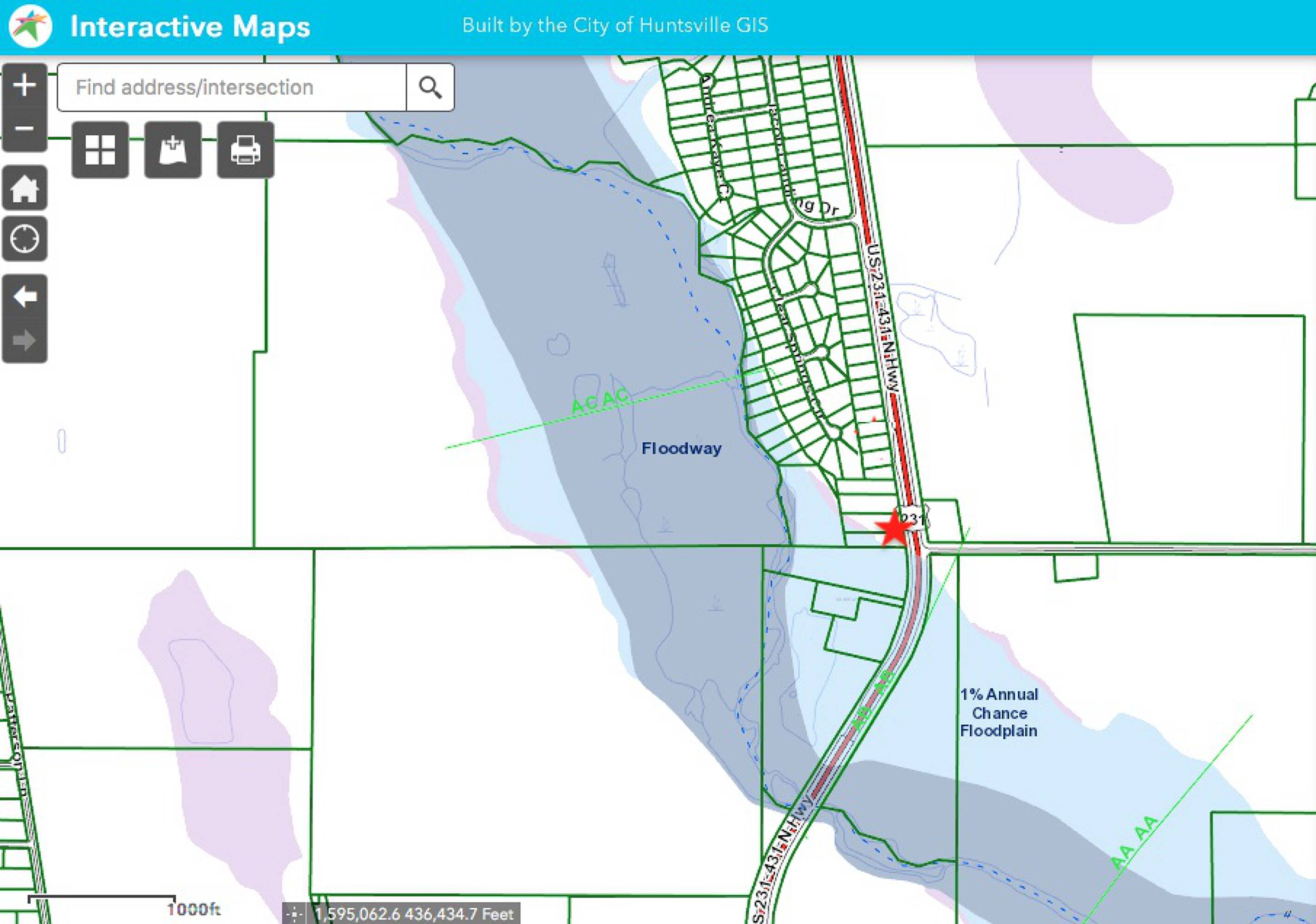 This 2.1-acre commercial land parcel features 230 feet of frontage on Highway 231/431. Sewer access is available. The property is unzoned, offering flexibility in its potential use. Traffic count is approximately 28,070 vehicles per day, providing significant visibility. The back corner of the parcel is located within a flood zone. The owner is willing to consider dividing the property.