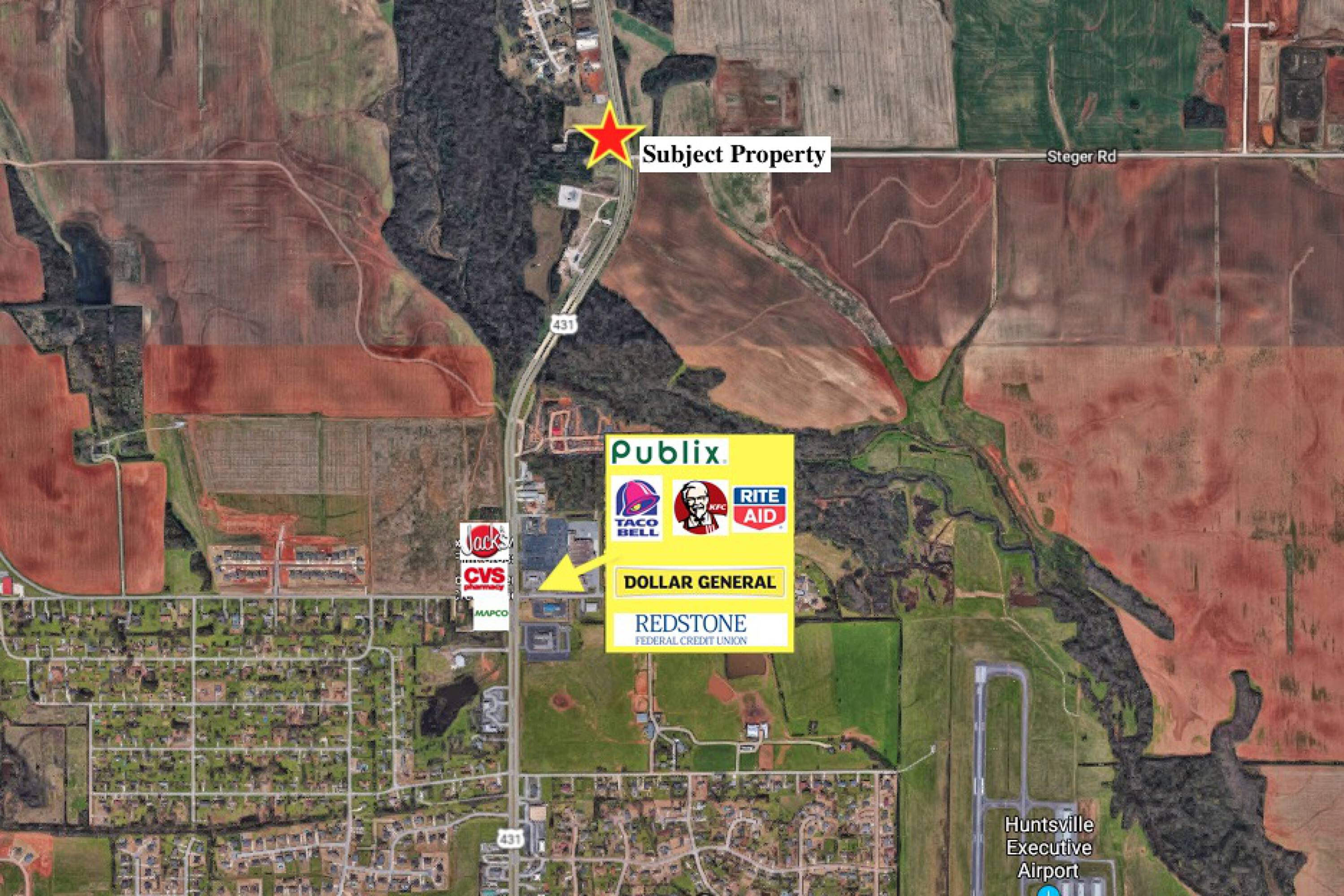 This property features: Great visibility with 230ft of frontage on Hwy 231/431; High traffic count of 28,070 VPD.; 2.1 Acres of land.