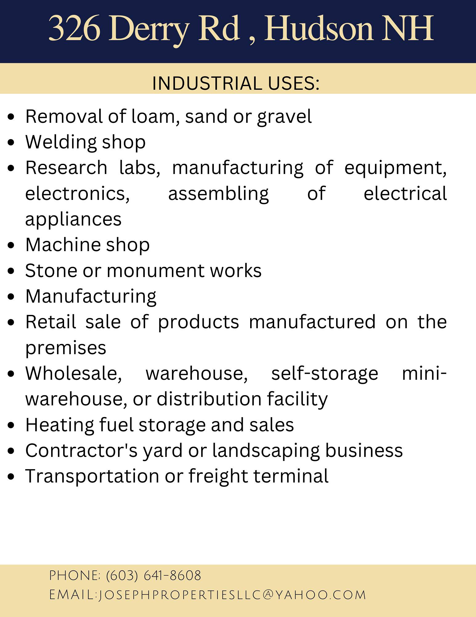 This 33.4-acre commercial property features both paved and unpaved parking areas, suitable for heavy equipment or use as a lay-down space. The gated property is almost entirely level and graveled, offering multiple private curb cuts. Situated on a heavy traffic route, the location is near Bobcat of New Hampshire, Ahearn Sany Dealership, and Continental Paving.
