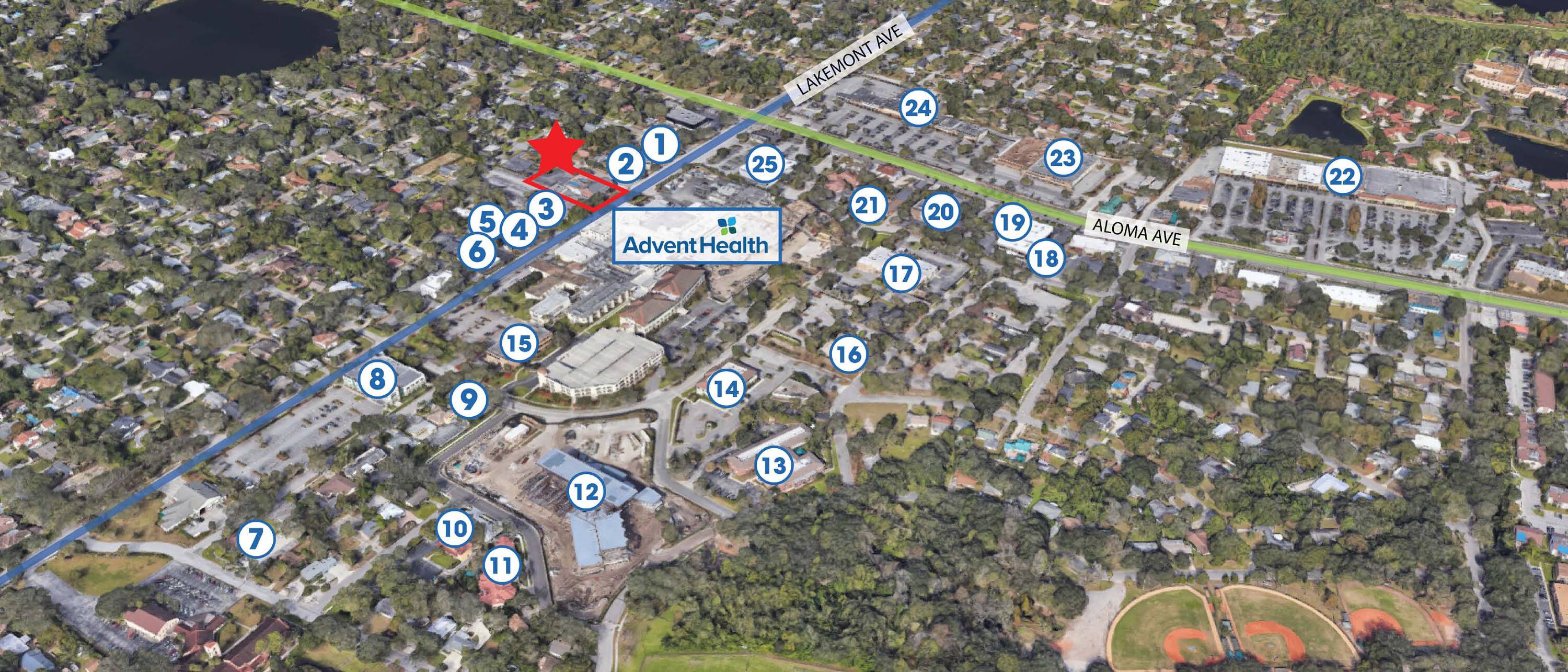 This property features: Directly across from Advent Health Winter Park (422‑bed Acute Care Facility); First‑floor 2nd‑generation medical build out; Co‑tenancy includes Labcorp & Rothman Orthopaedic