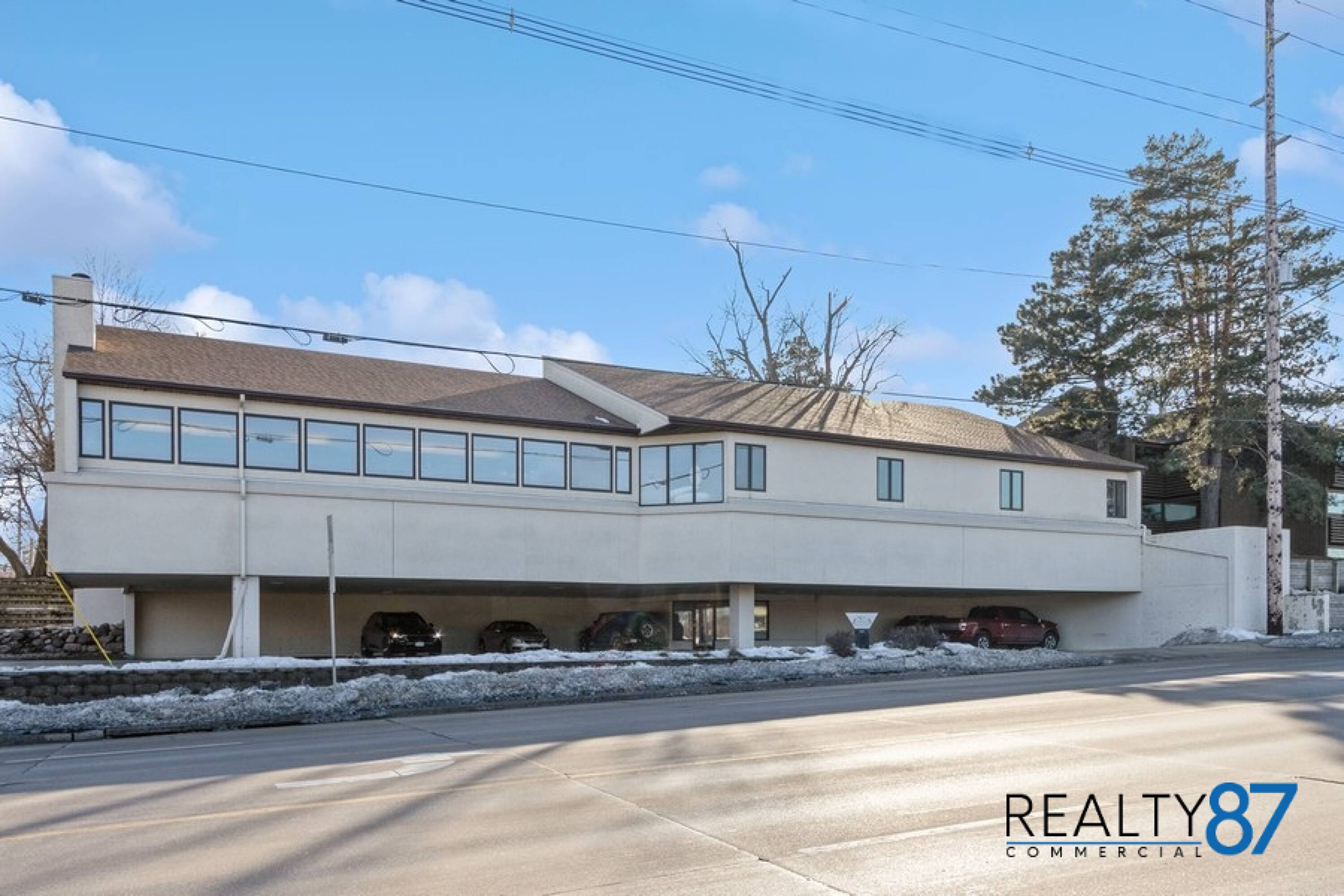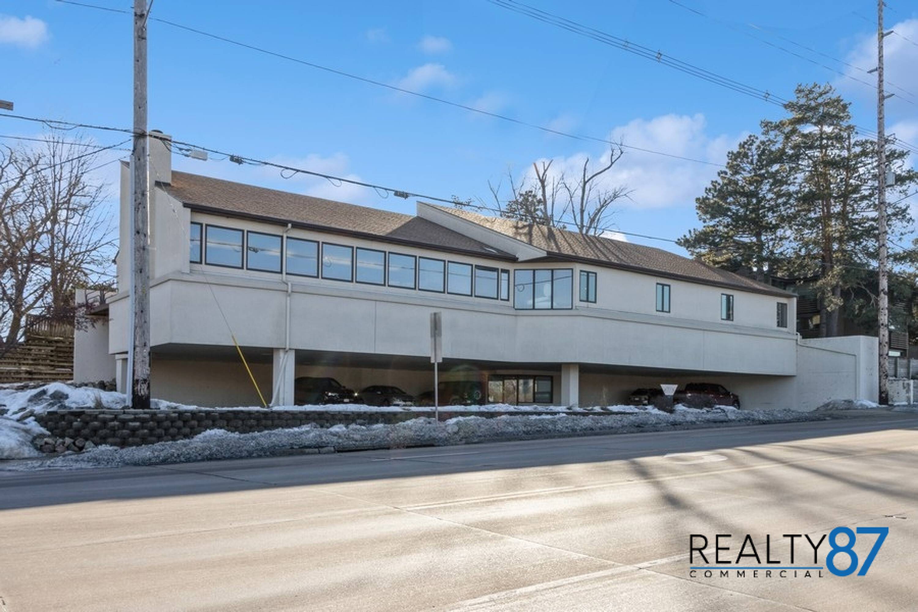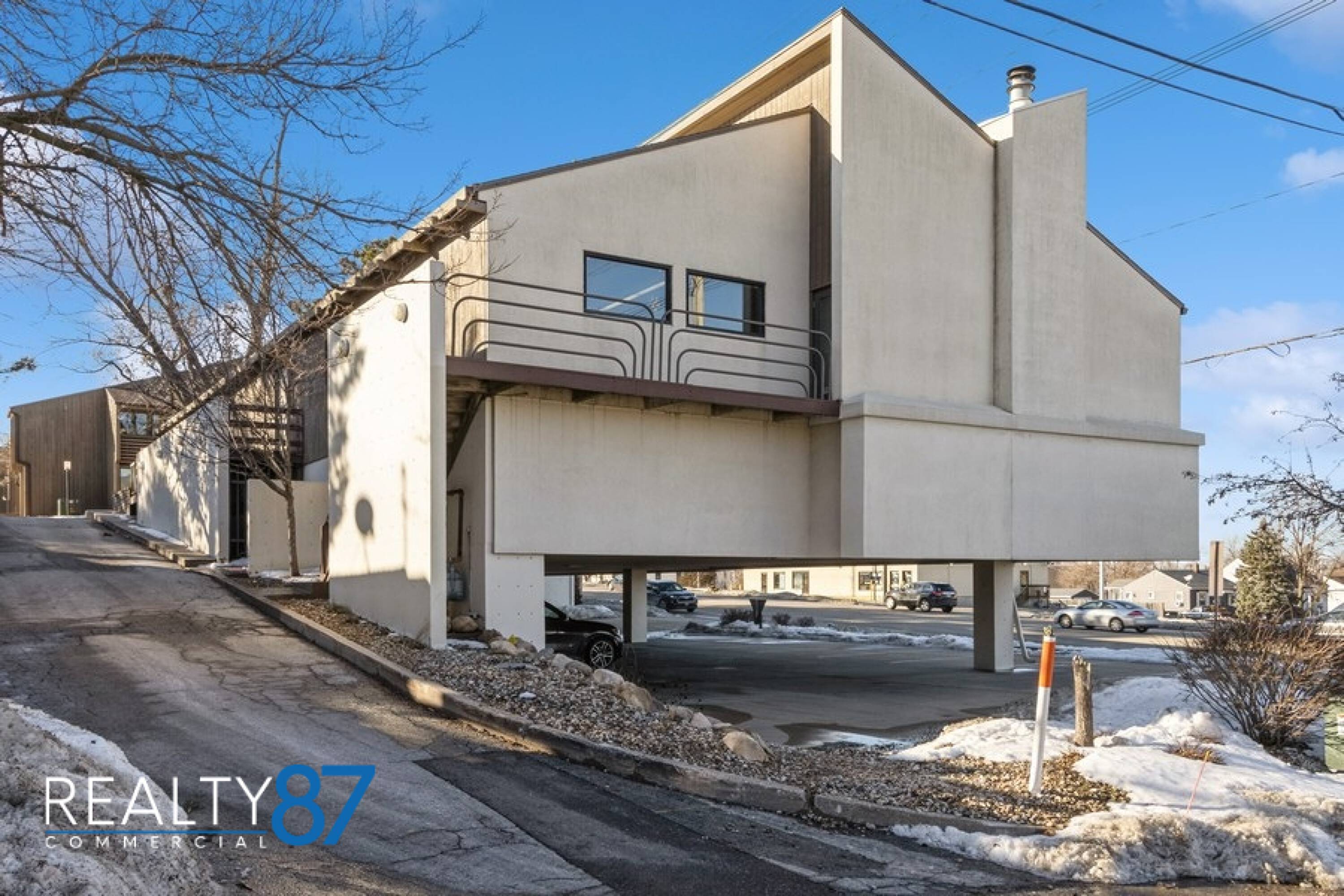 This architecturally unique office building, the visionary work of architect Leo Pieffer, is positioned on a prominent corner lot. The design merges contemporary aesthetics with smart functionality. The property features covered parking for 18 vehicles on the ground floor, a rare and valuable amenity. Multiple entry points include a covered lower-level entrance and a ground level entrance. Inside, a spacious, open plan area is centered around a gas fireplace, ideal for collaborative workspaces or a reception area. The layout includes 4 private offices, a large conference room, and a breakroom/kitchen, as well as 2 restrooms. The building offers 5061 square feet of space and has been thoughtfully maintained. It is being sold as is, with inspections for information only. This property offers a blend of style, space, and affordability, presenting an opportunity to create a custom office space.
