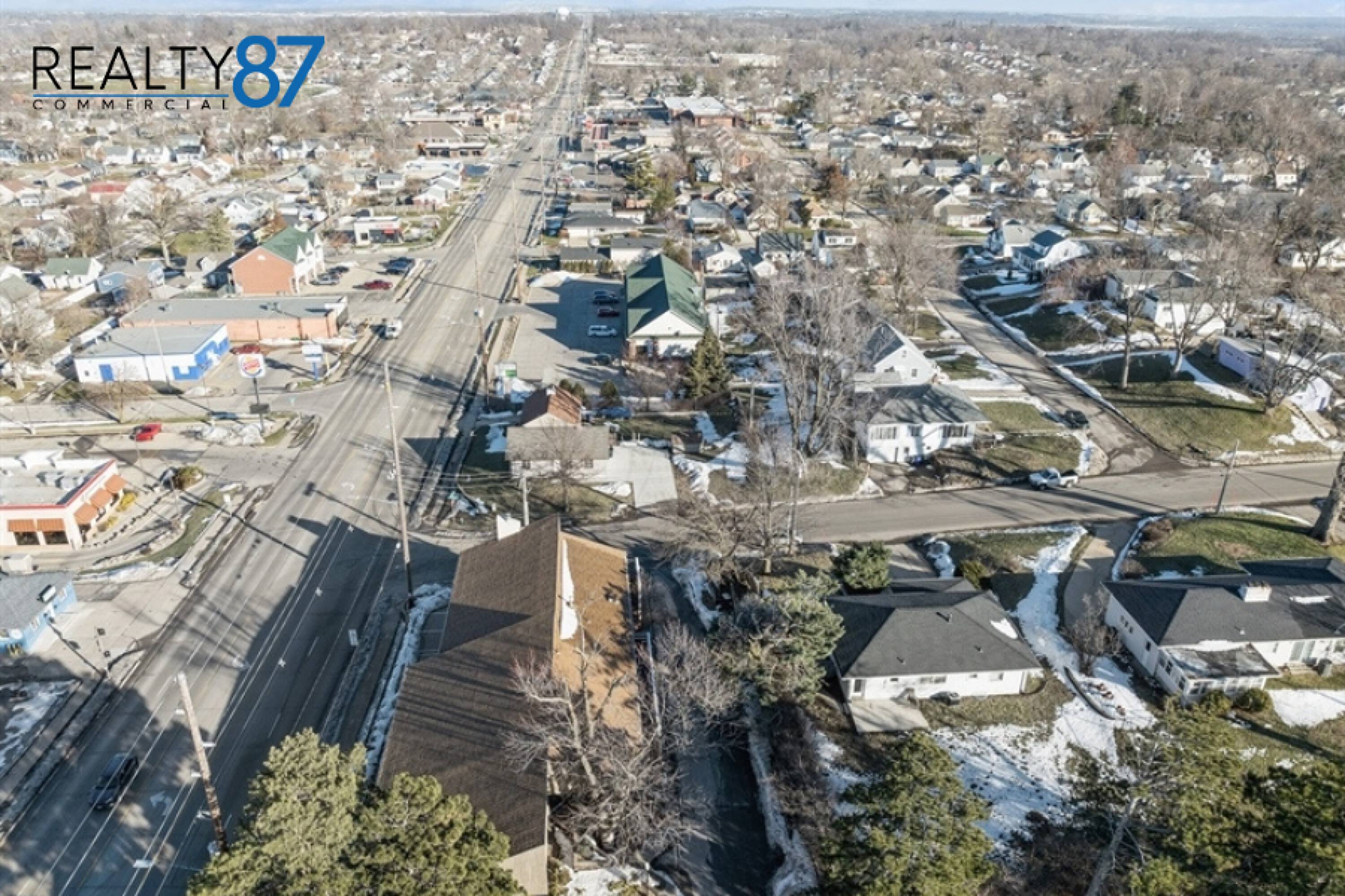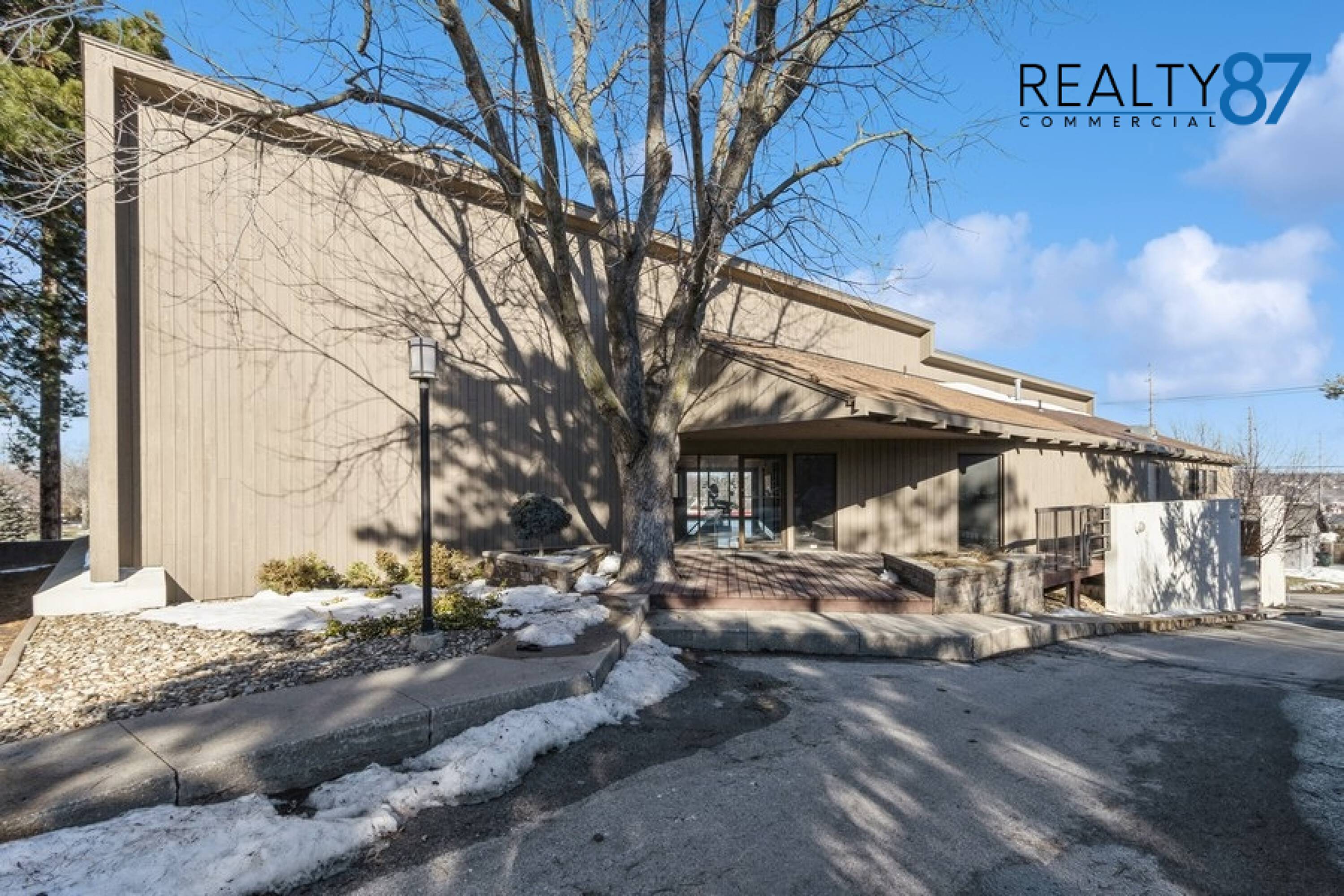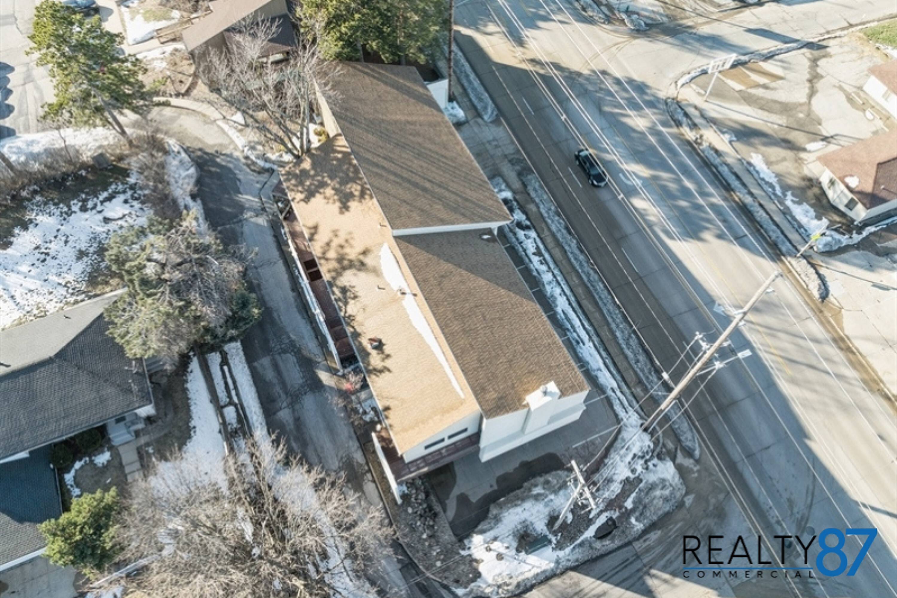 This architecturally unique office building, the visionary work of architect Leo Pieffer, is positioned on a prominent corner lot. The design merges contemporary aesthetics with smart functionality. The property features covered parking for 18 vehicles on the ground floor, a rare and valuable amenity. Multiple entry points include a covered lower-level entrance and a ground level entrance. Inside, a spacious, open plan area is centered around a gas fireplace, ideal for collaborative workspaces or a reception area. The layout includes 4 private offices, a large conference room, and a breakroom/kitchen, as well as 2 restrooms. The building offers 5061 square feet of space and has been thoughtfully maintained. It is being sold as is, with inspections for information only. This property offers a blend of style, space, and affordability, presenting an opportunity to create a custom office space.