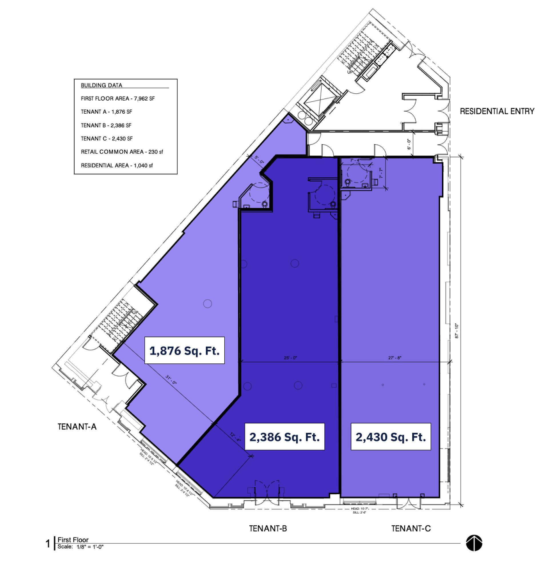 Retail space in redeveloped mixed-use building near public transportation.