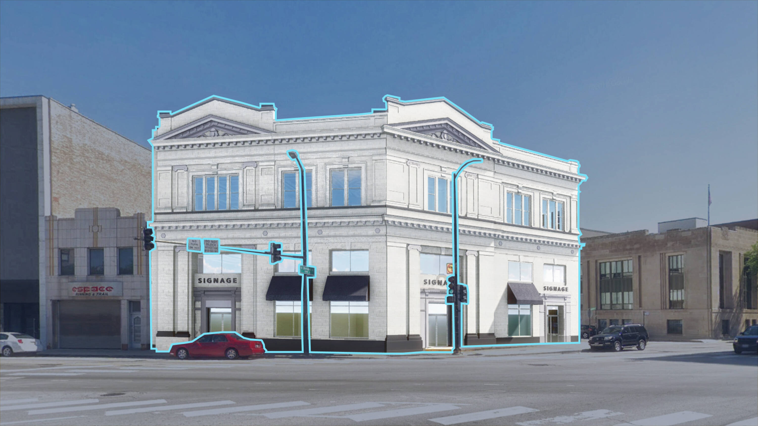 This property offers substantial retail frontage at the intersection of Milwaukee, Ashland, and Division. The historic building is undergoing redevelopment into a mixed-use complex, featuring both retail space and over 20 high-end apartment units. The location provides significant visibility, situated near the Polish Triangle Park and the Division Street Blue Line, which sees an annual ridership of 600,000. The property is positioned at a key Wicker Park intersection, benefiting from high pedestrian traffic, subway ridership, and multiple bus lines. The redeveloped building will feature over 30 high-end apartment units.